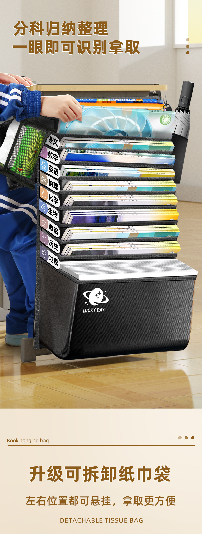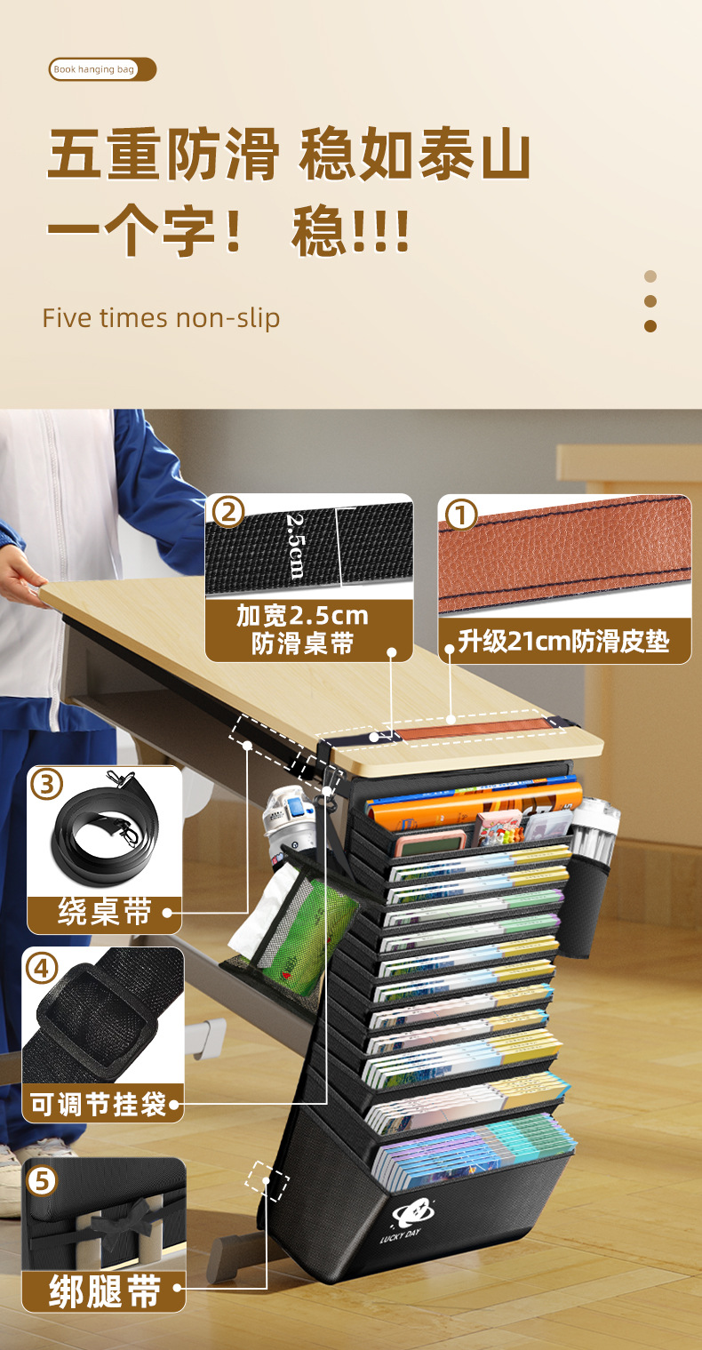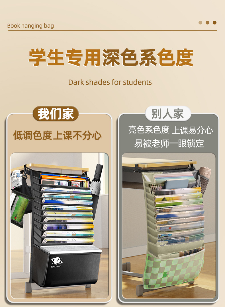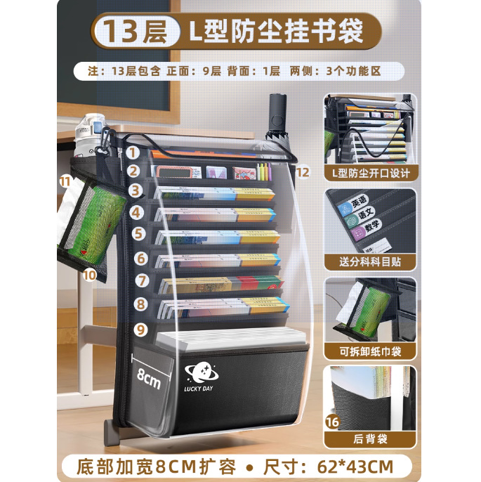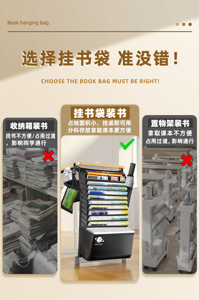 加厚大容量书袋课桌挂书袋初中高中生学生用课桌侧边收纳袋桌边袋
