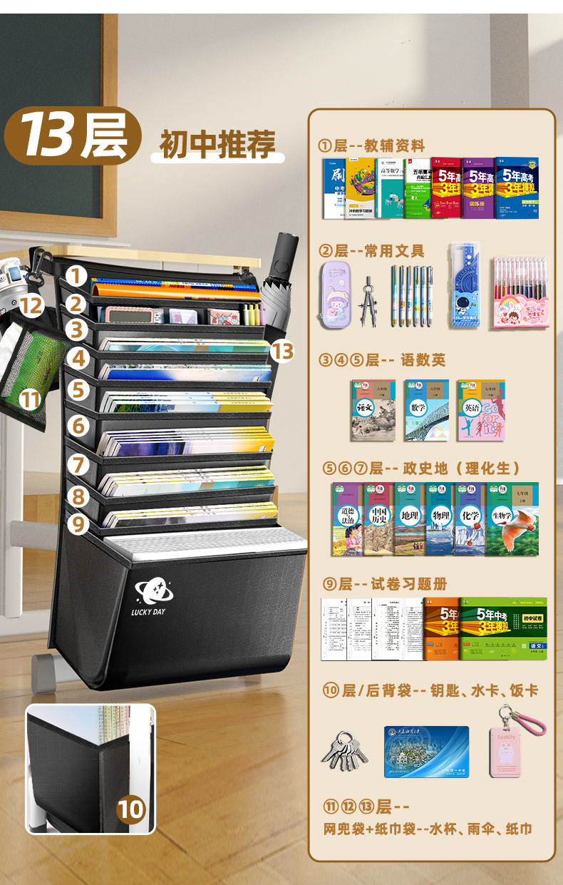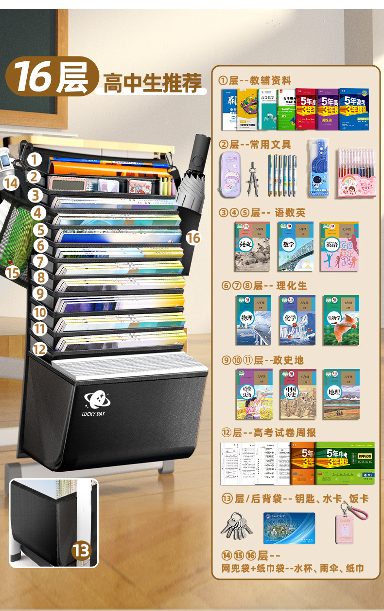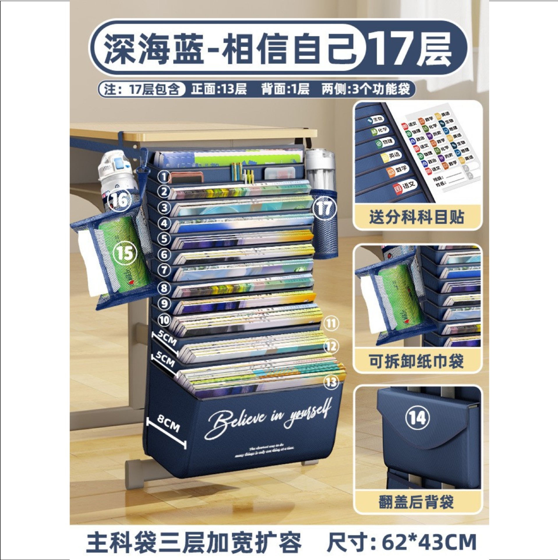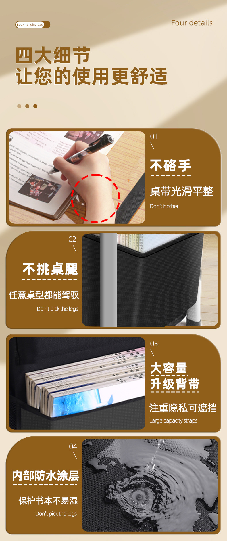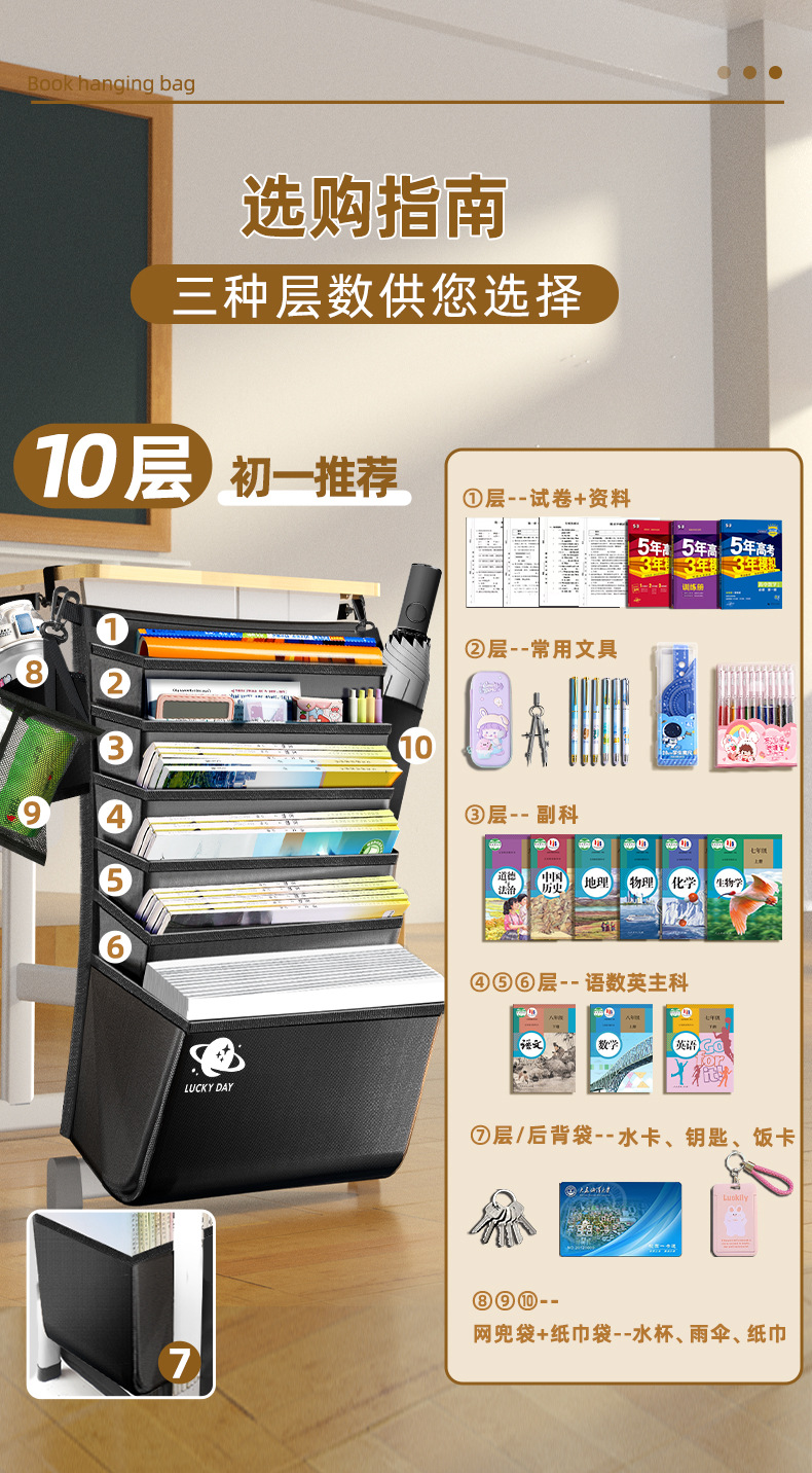 加厚大容量书袋课桌挂书袋初中高中生学生用课桌侧边收纳袋桌边袋