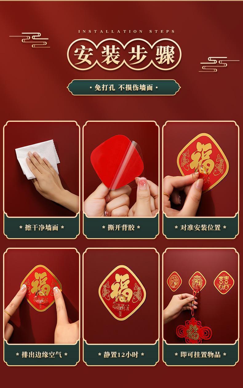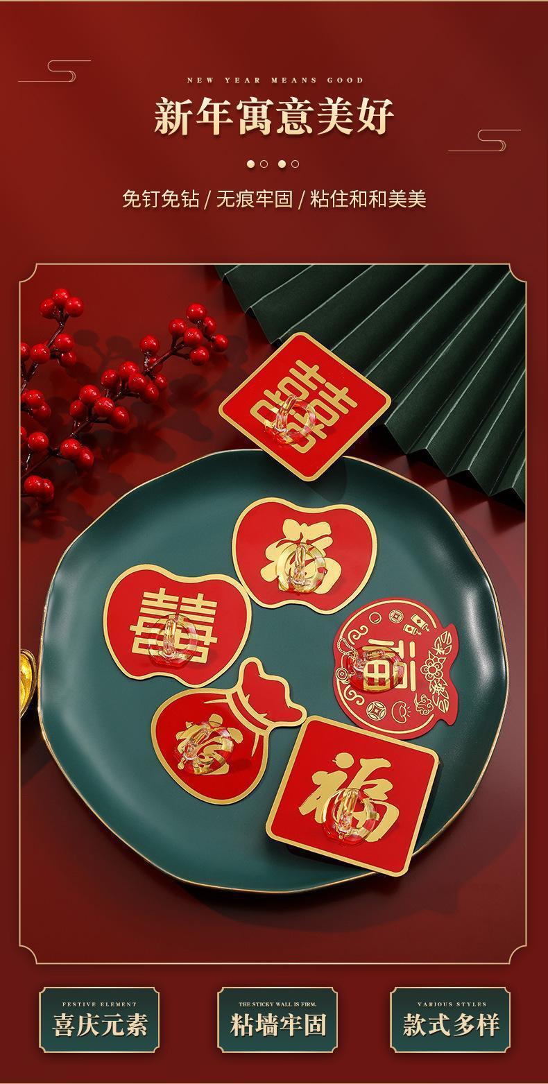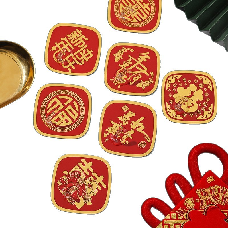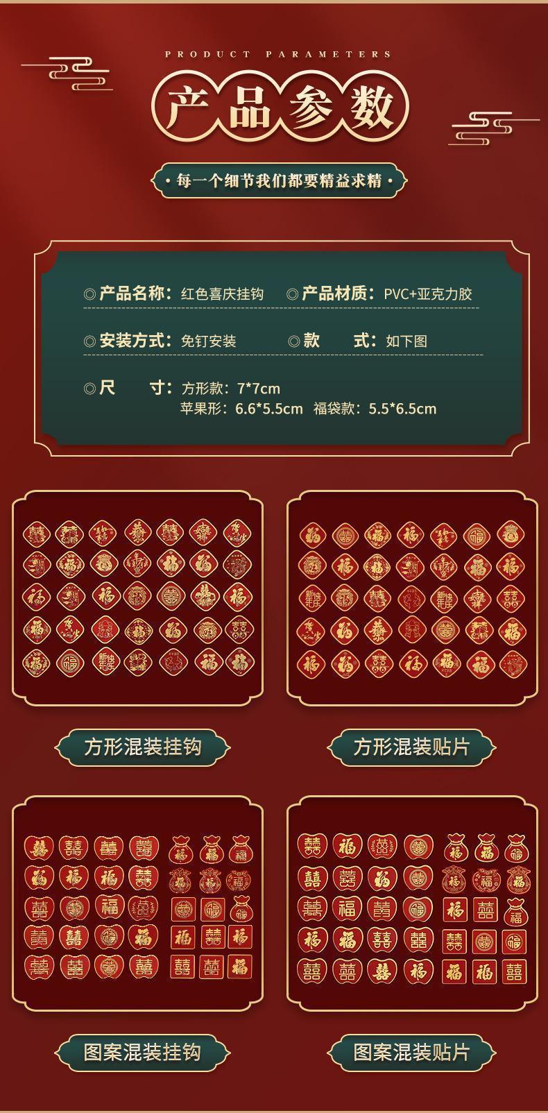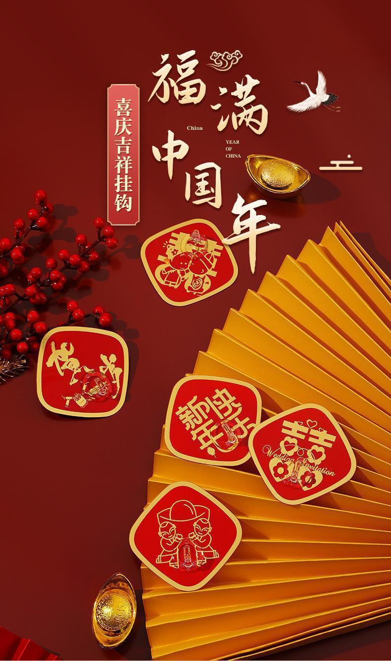 蛇年红色福字挂钩亚克力胶免打孔强力粘挂钩喜字婚庆无痕福字挂钩
