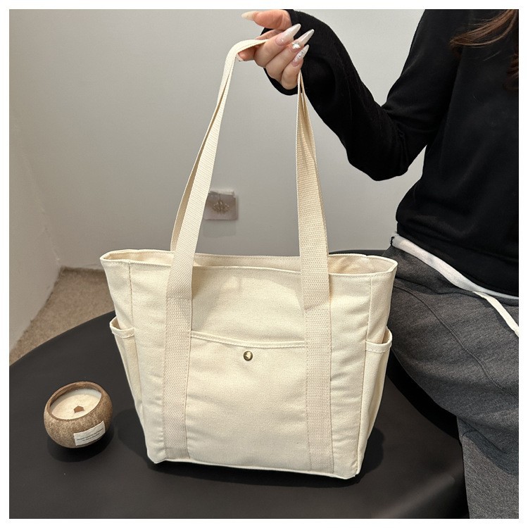 帆布包包女手提袋单肩包大学生百搭手提包通勤大容量补课袋多口袋