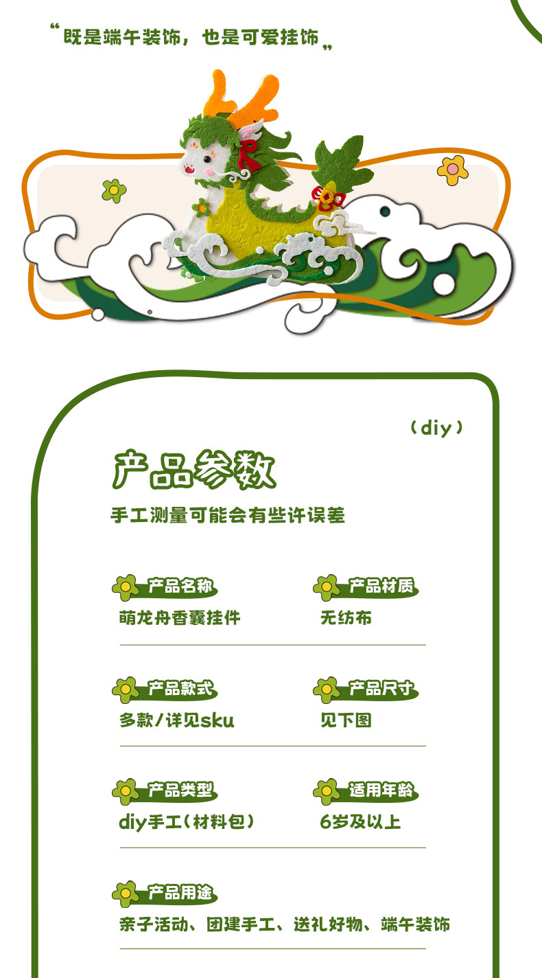 端午节龙舟香囊挂件儿童手工diy不织布材料包艾草香包礼品