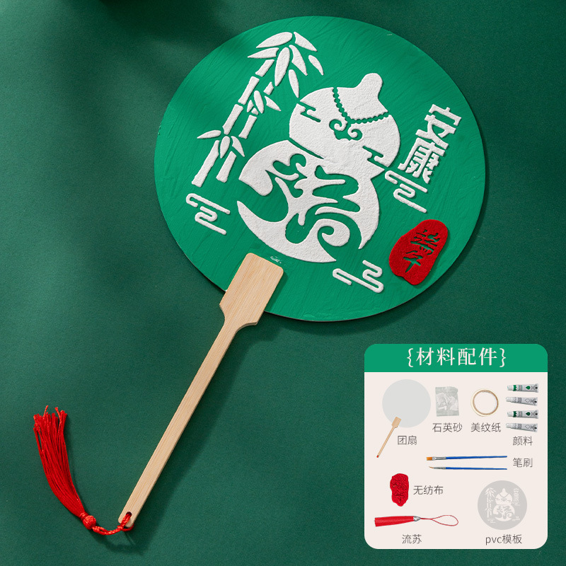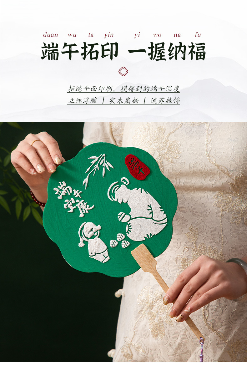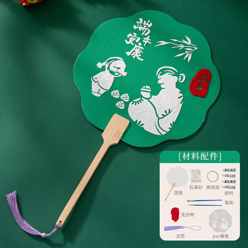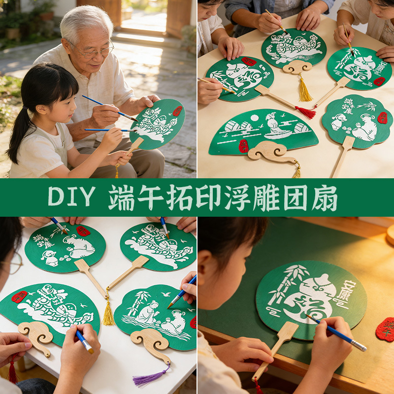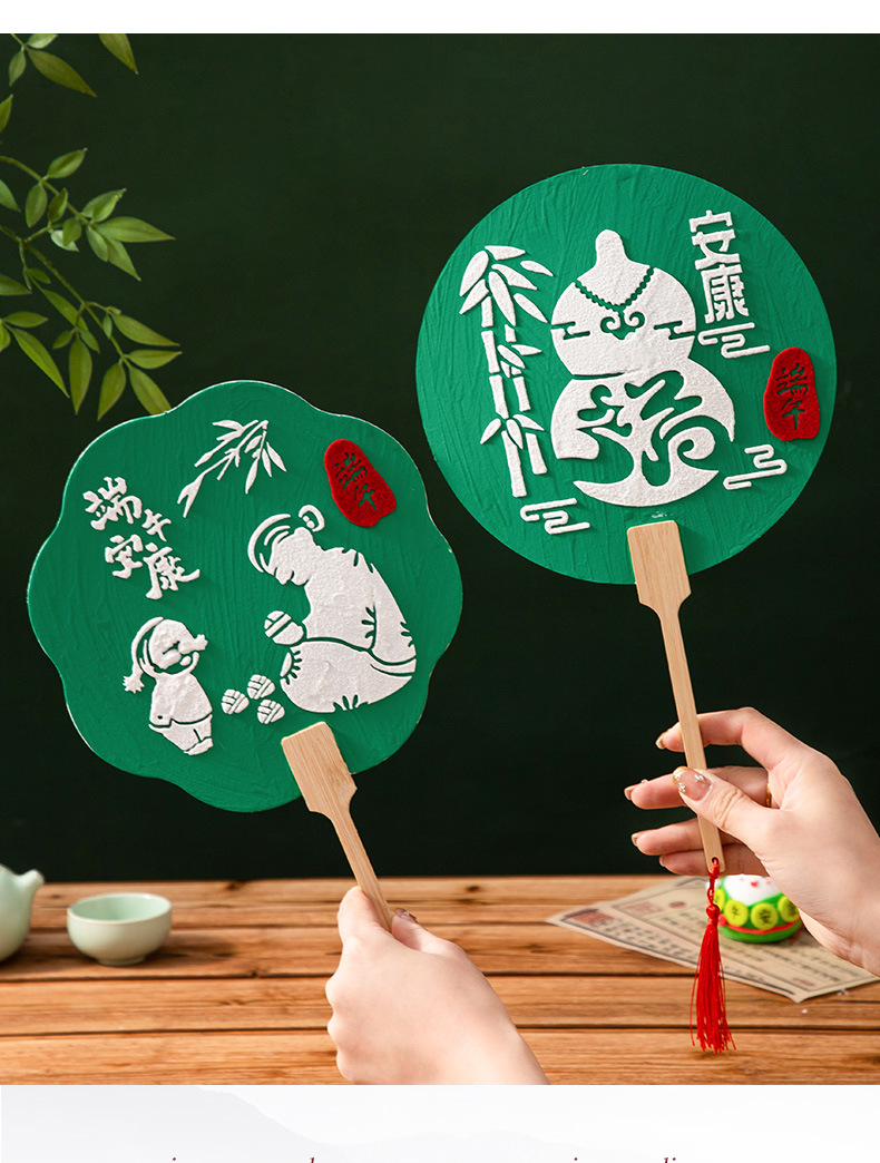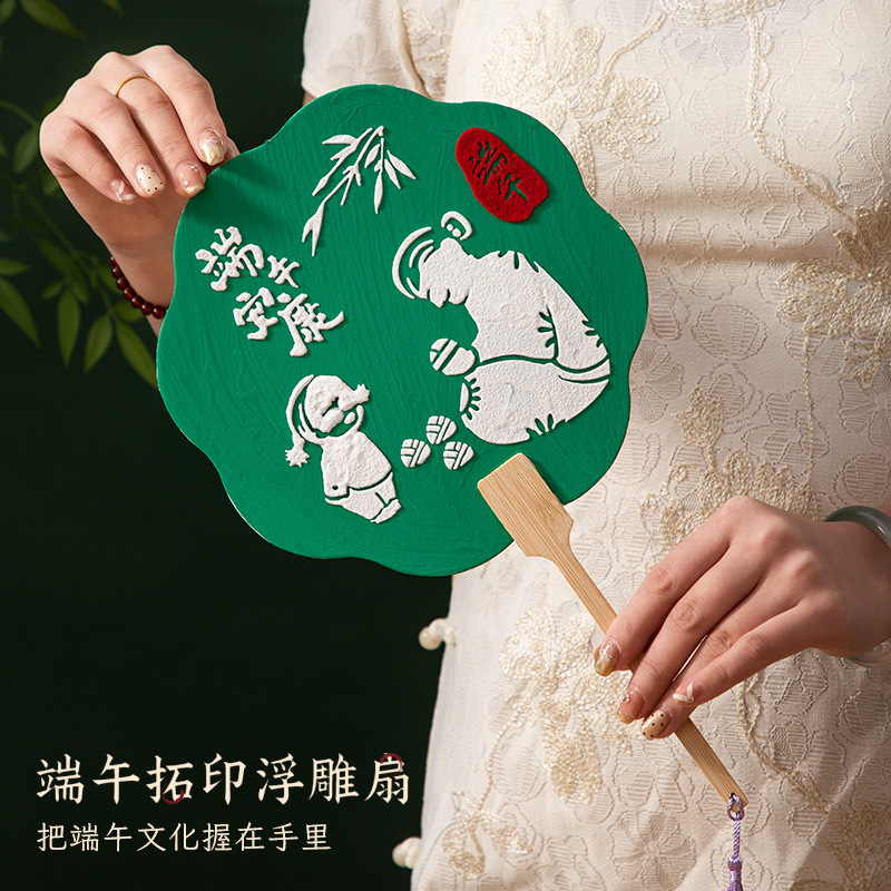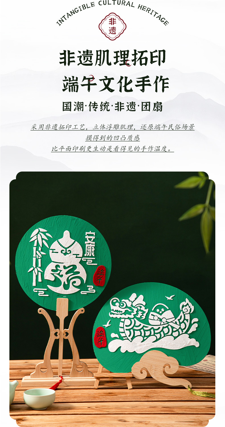 定制端午节礼品国风拓印团扇非遗扇子儿童手工diy材料幼儿园礼物
