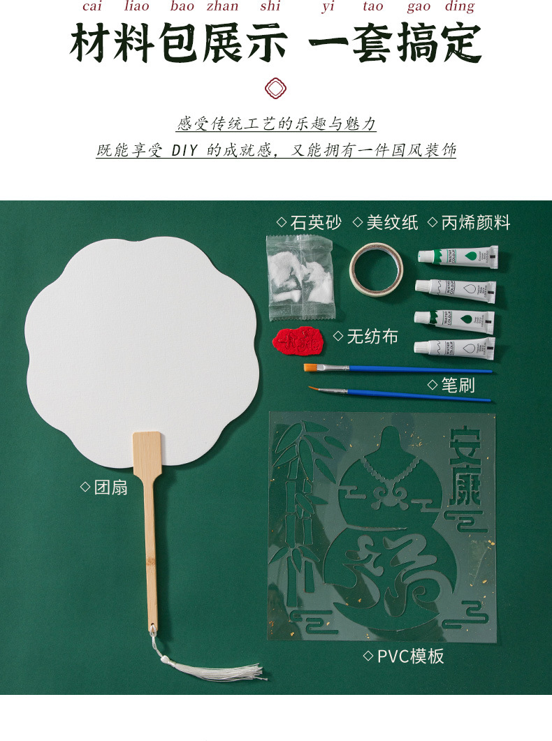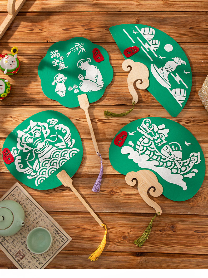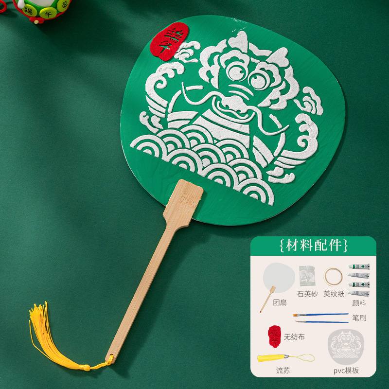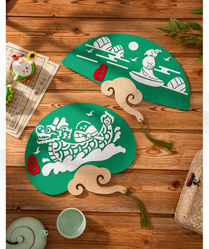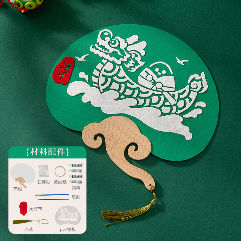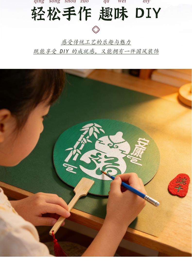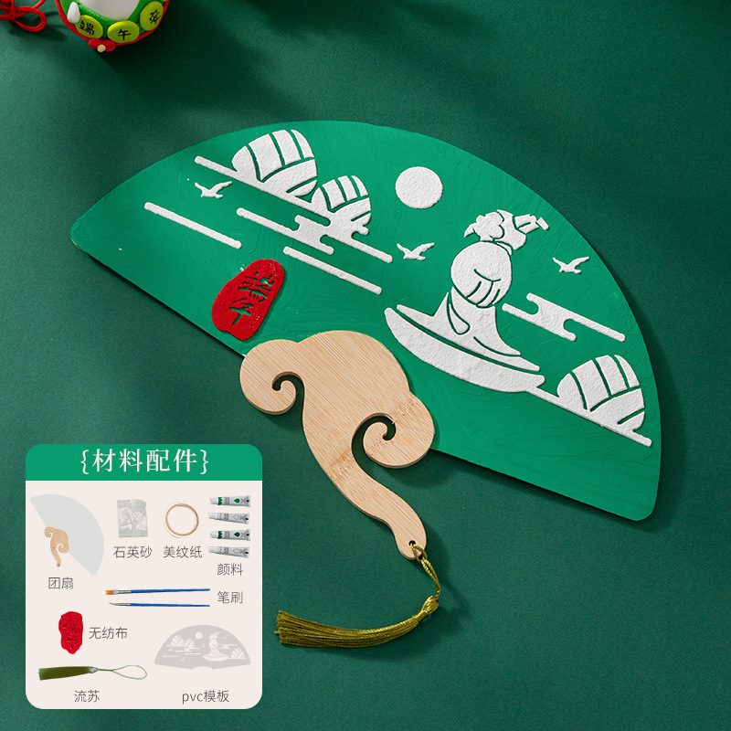 定制端午节礼品国风拓印团扇非遗扇子儿童手工diy材料幼儿园礼物