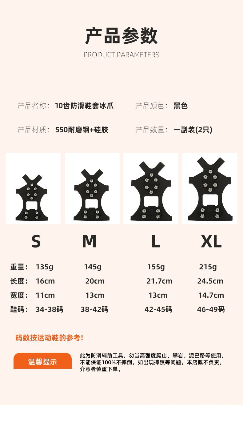 户外防滑8齿10齿硅胶冰爪雪地鞋套冰面攀岩鞋钉登山老人通用伦才