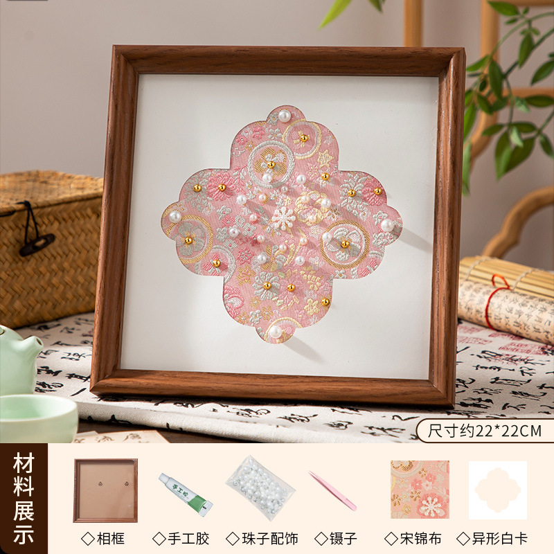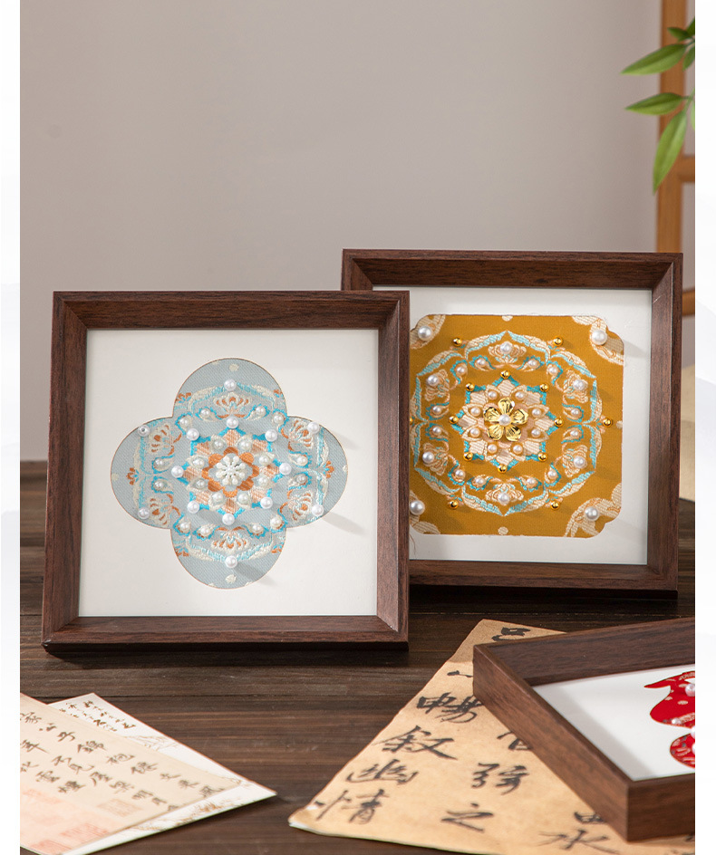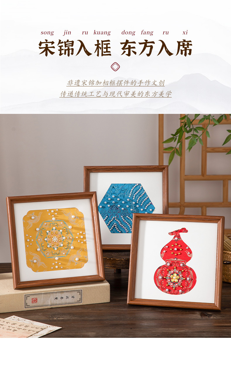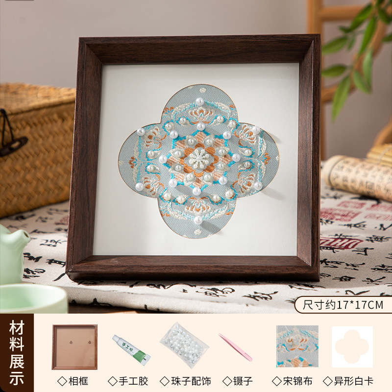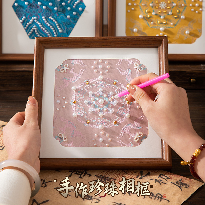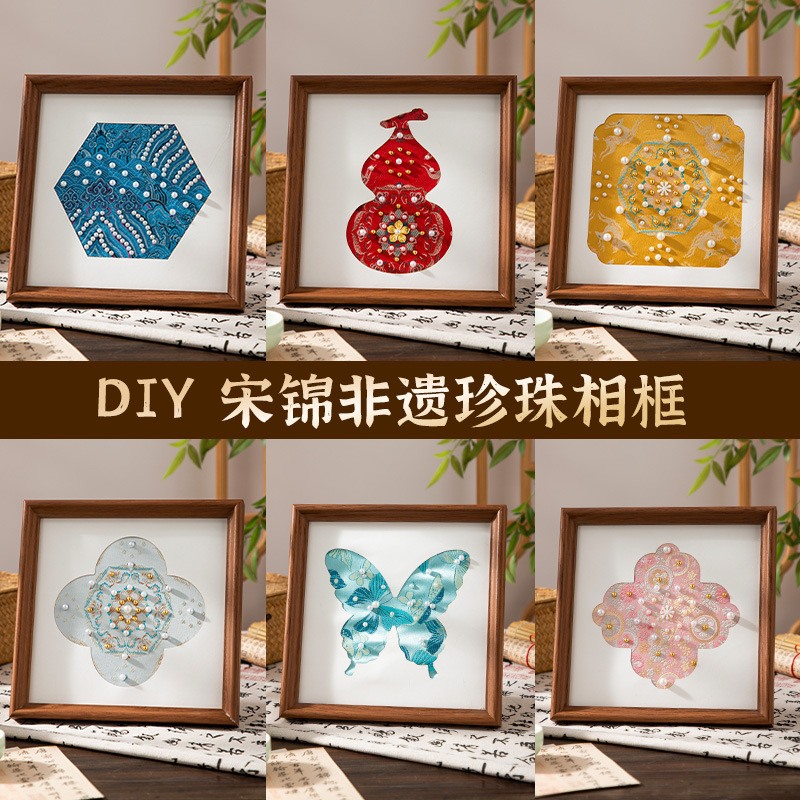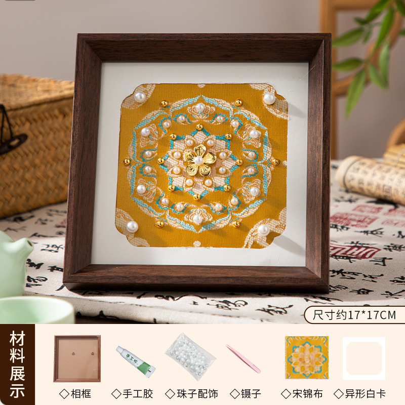母亲节礼物仿宋锦珍珠画diy手工材料织锦国风装饰相框画团建活动