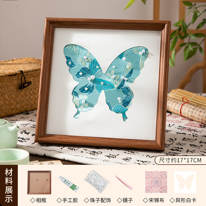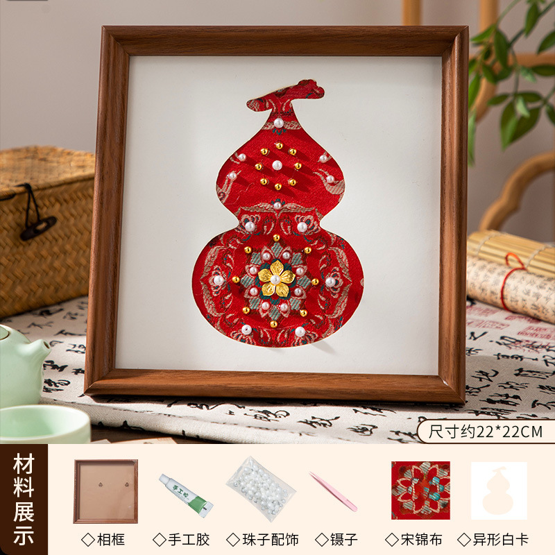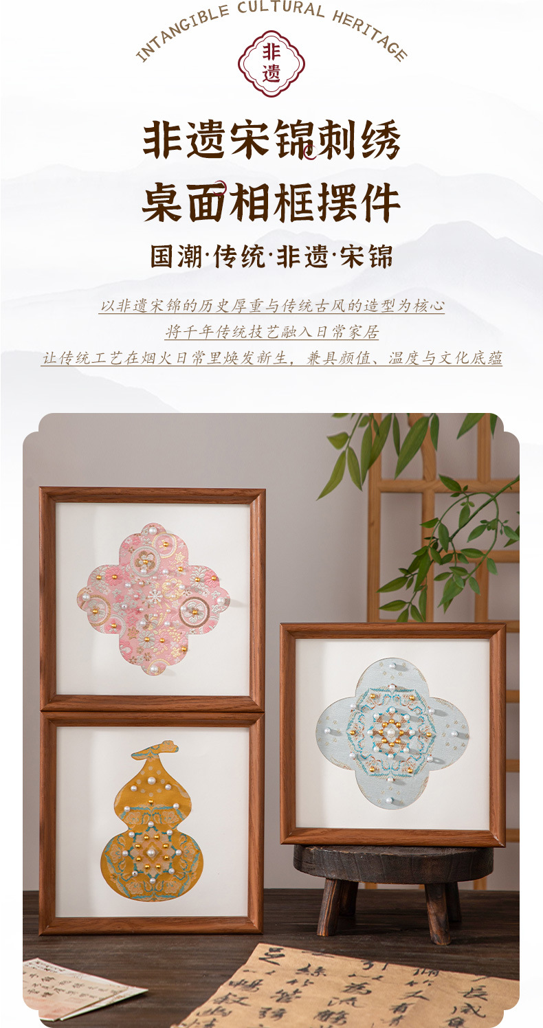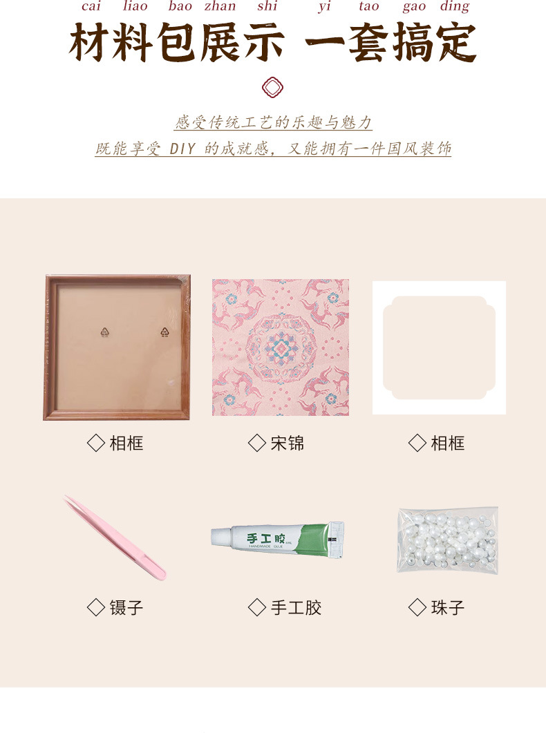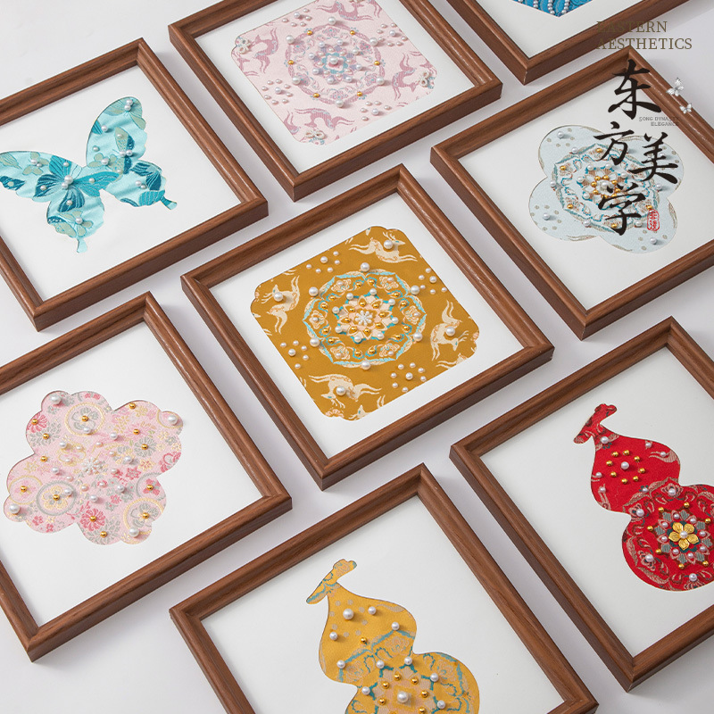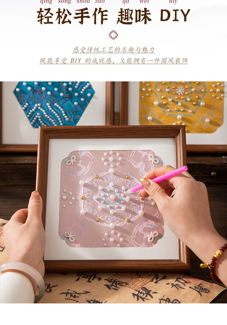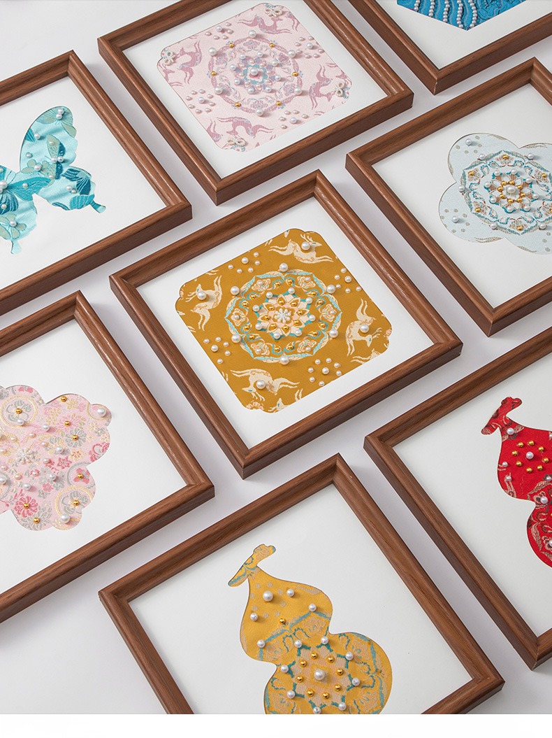 母亲节礼物仿宋锦珍珠画diy手工材料织锦国风装饰相框画团建活动