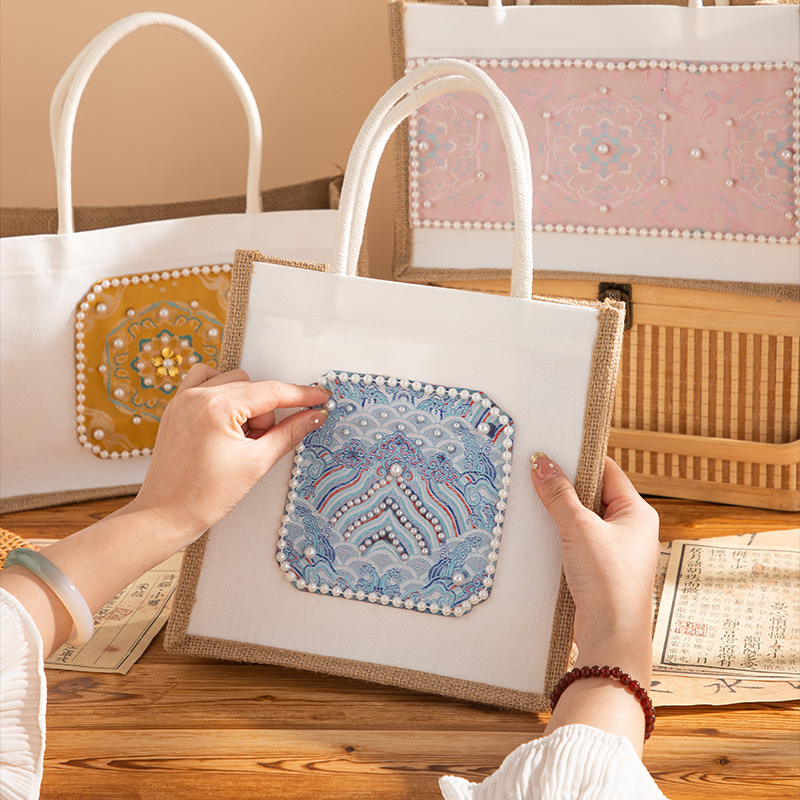 定制非遗手工diy材料宋锦包包珍珠布艺手提包中国古风母亲节礼物