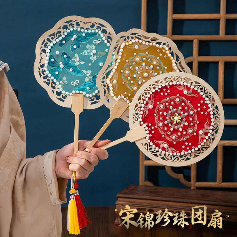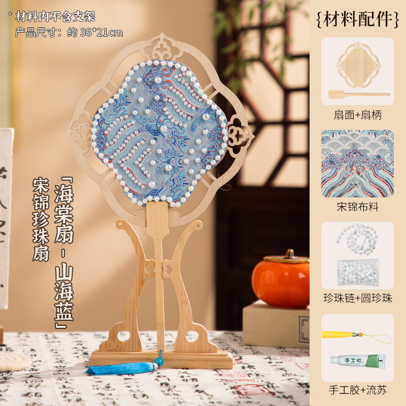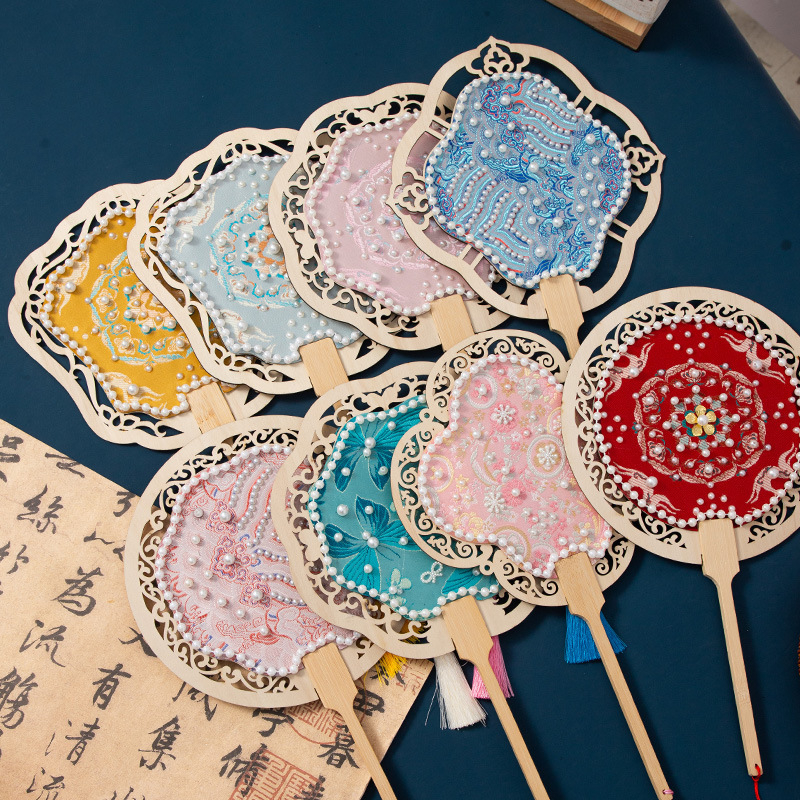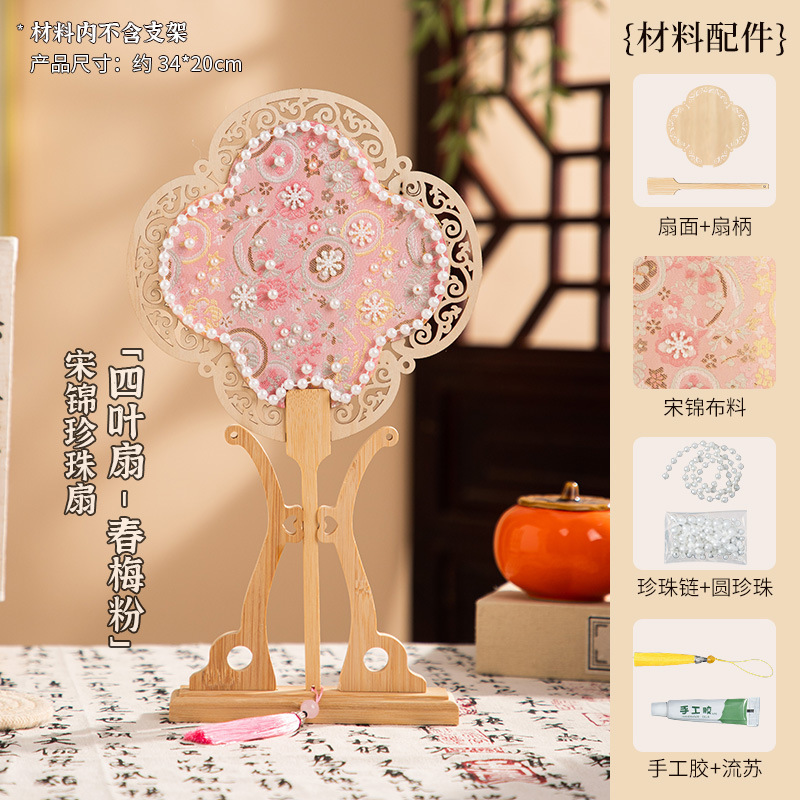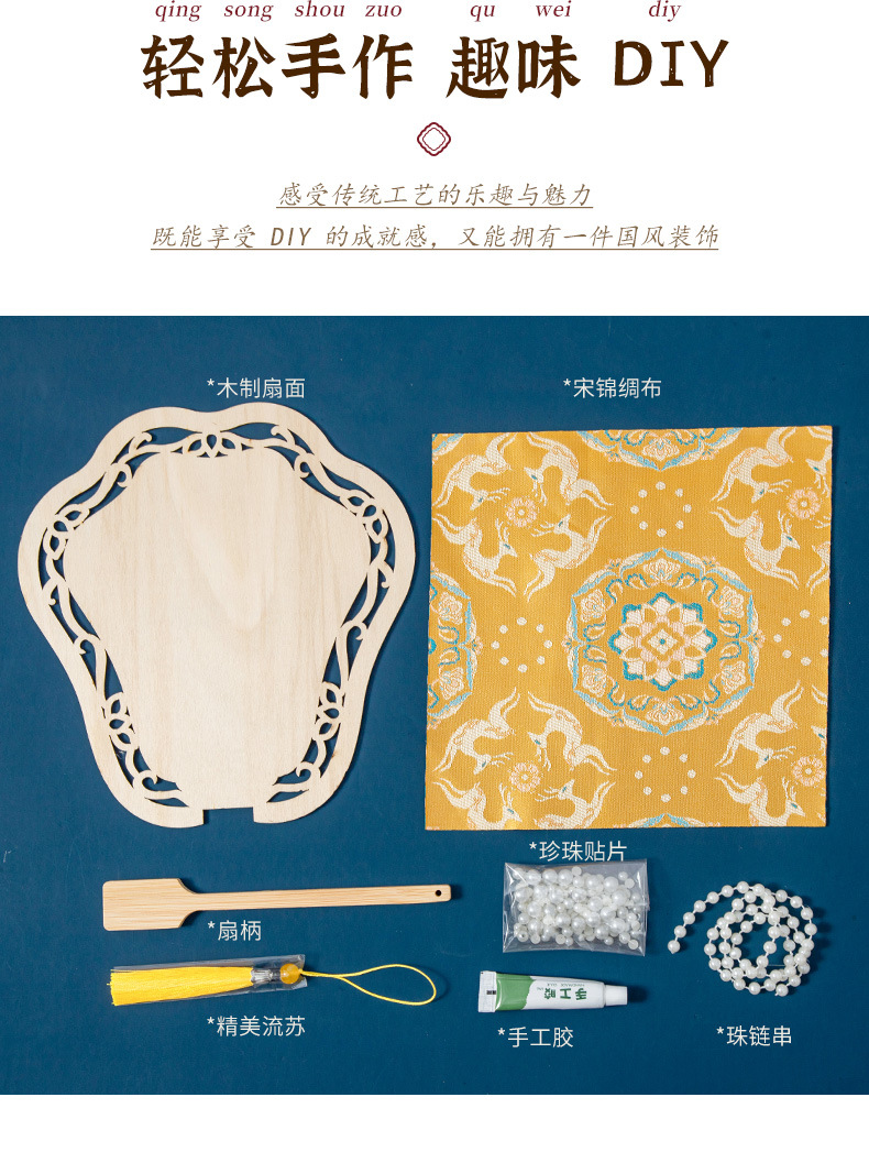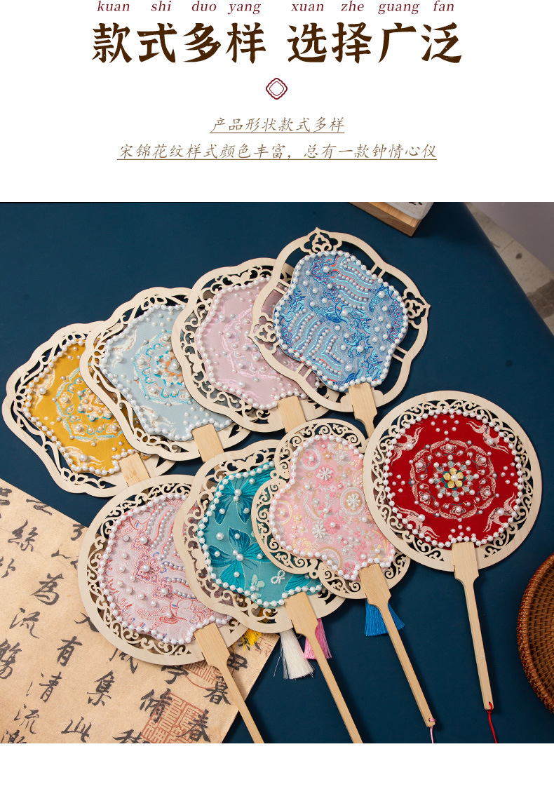 定制母亲节礼物diy手工非遗宋锦珍珠扇古风织锦团扇材料沙龙活动