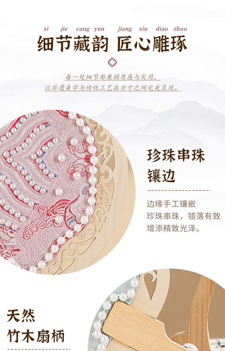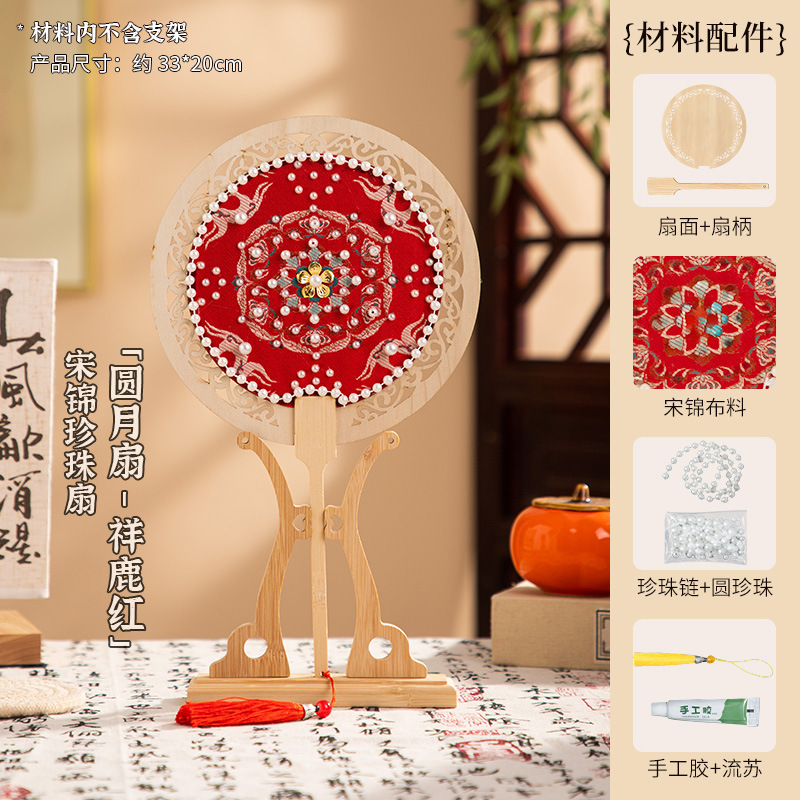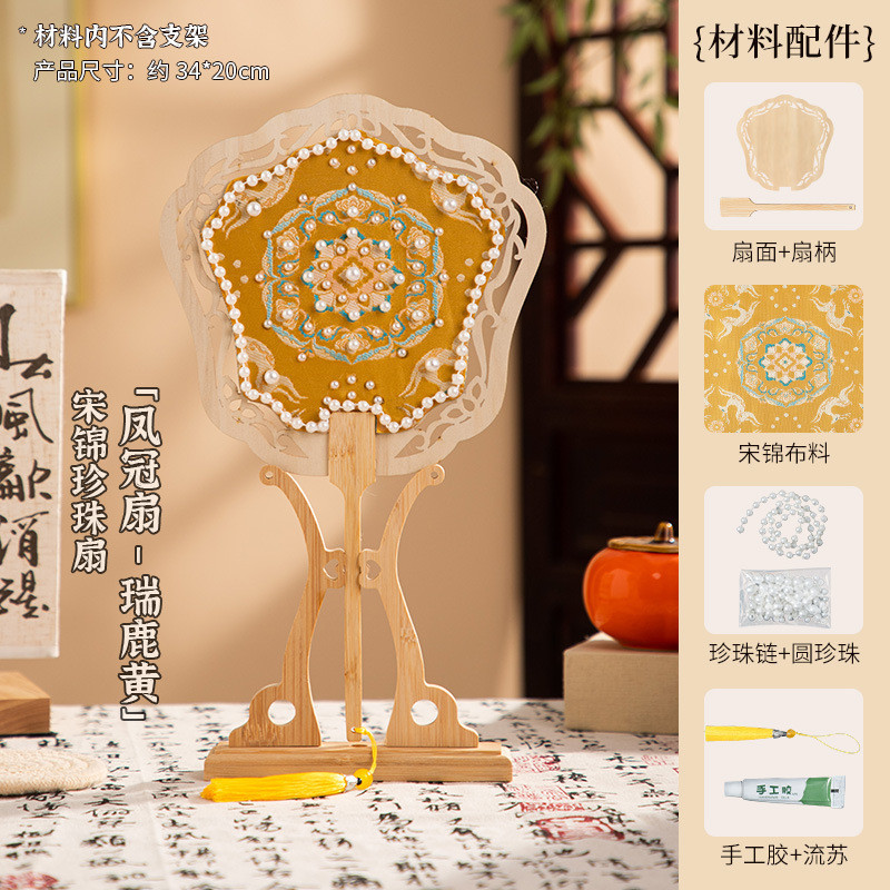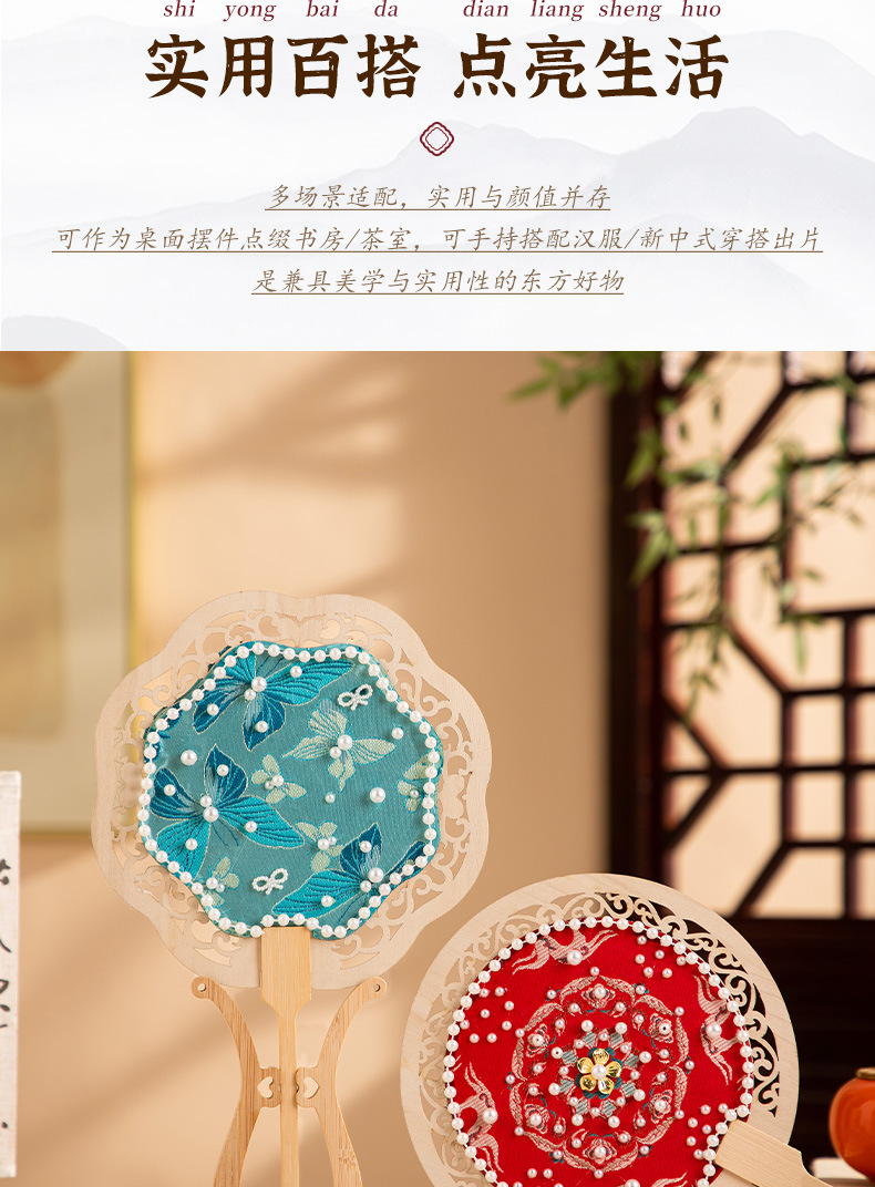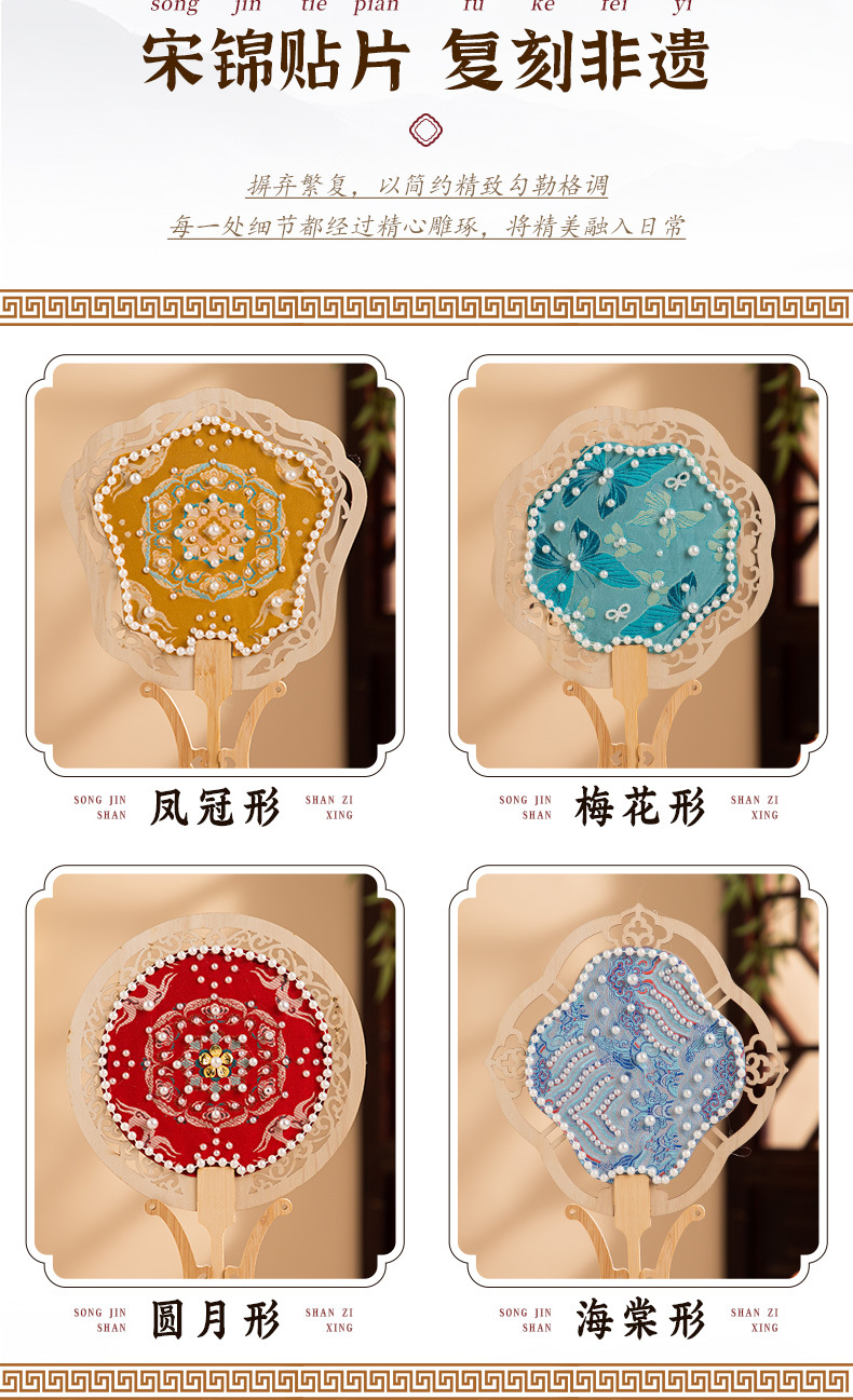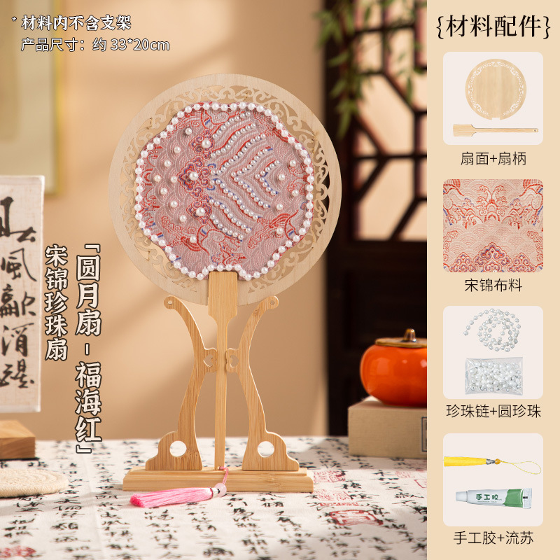 定制母亲节礼物diy手工非遗宋锦珍珠扇古风织锦团扇材料沙龙活动