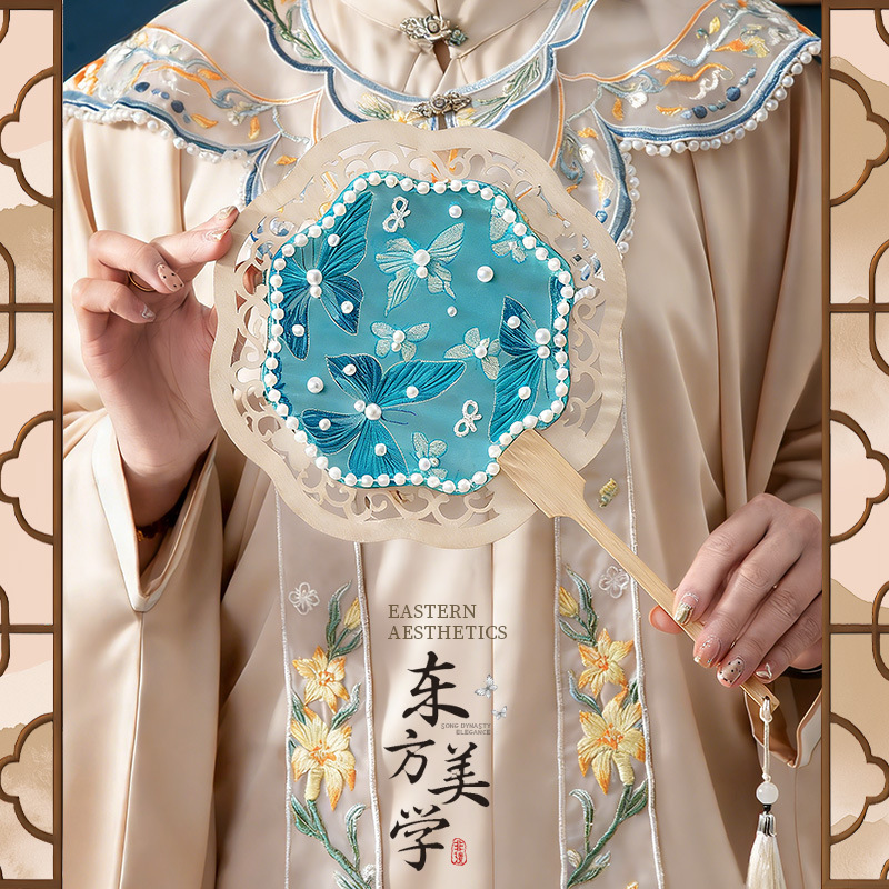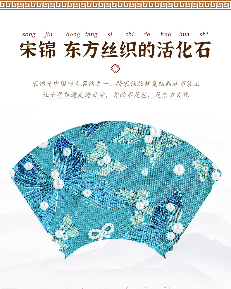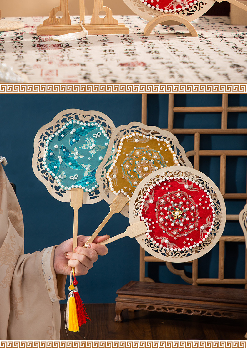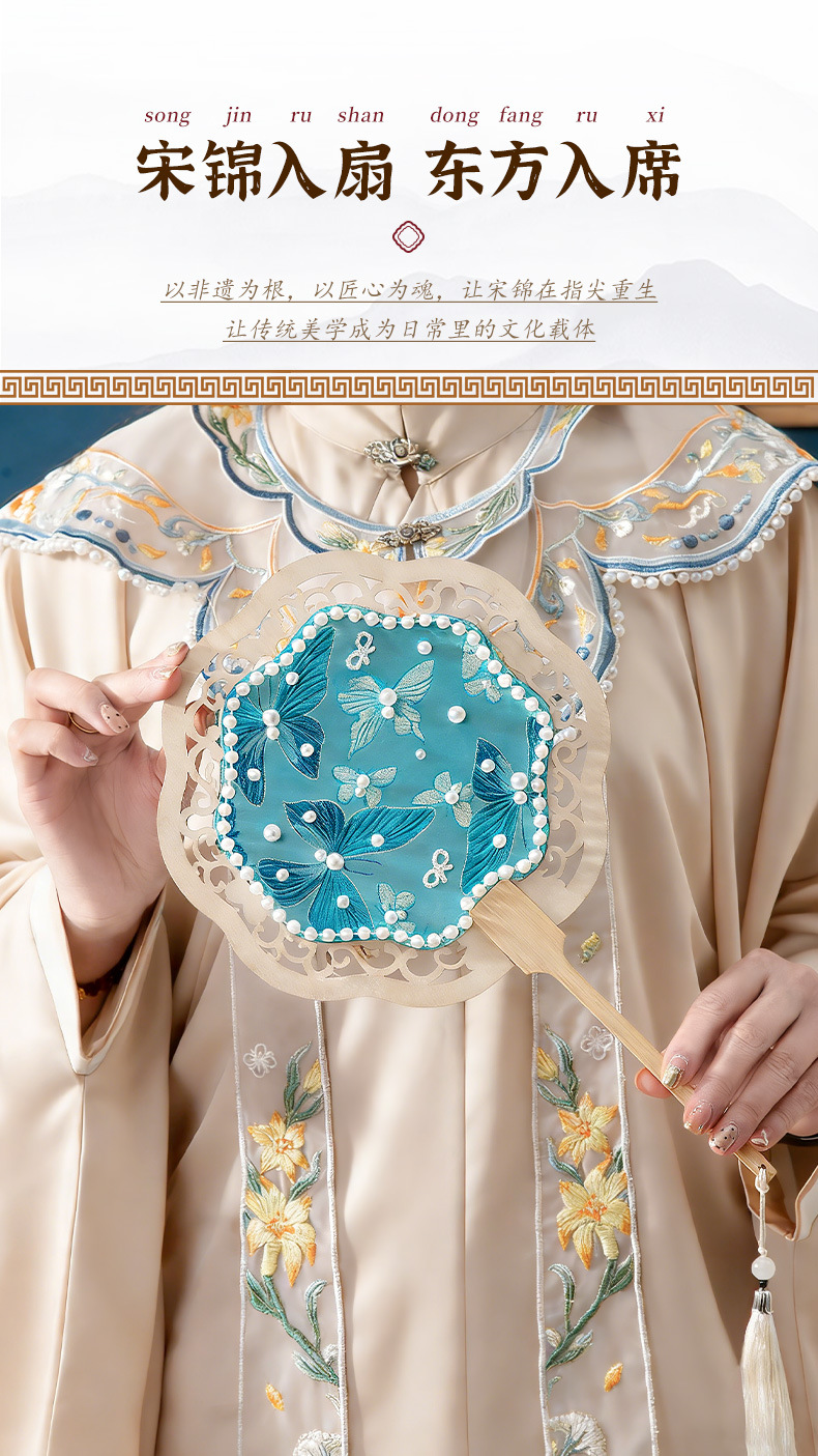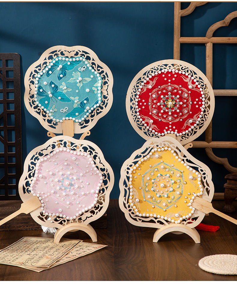 定制母亲节礼物diy手工非遗宋锦珍珠扇古风织锦团扇材料沙龙活动