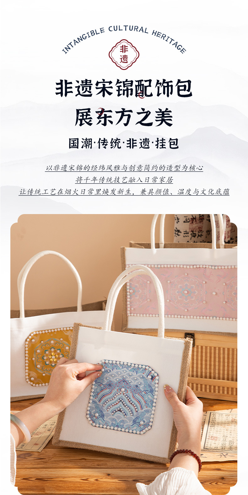 严选非遗宋锦手提包包手工diy材料包亲子团建国风沙龙活动母亲节