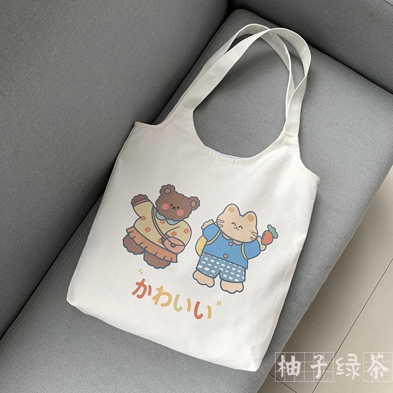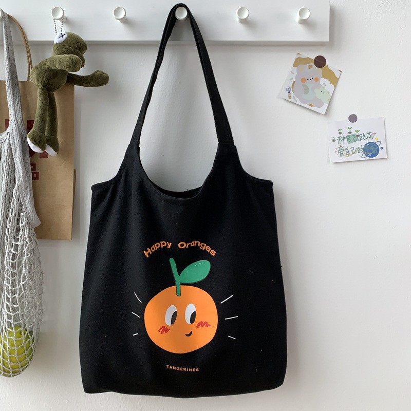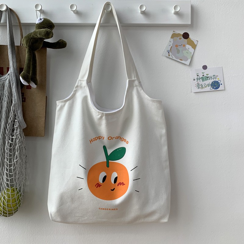 包包韩国小众帆布包女单肩橘子日系大学生ins简约手提印花帆布袋