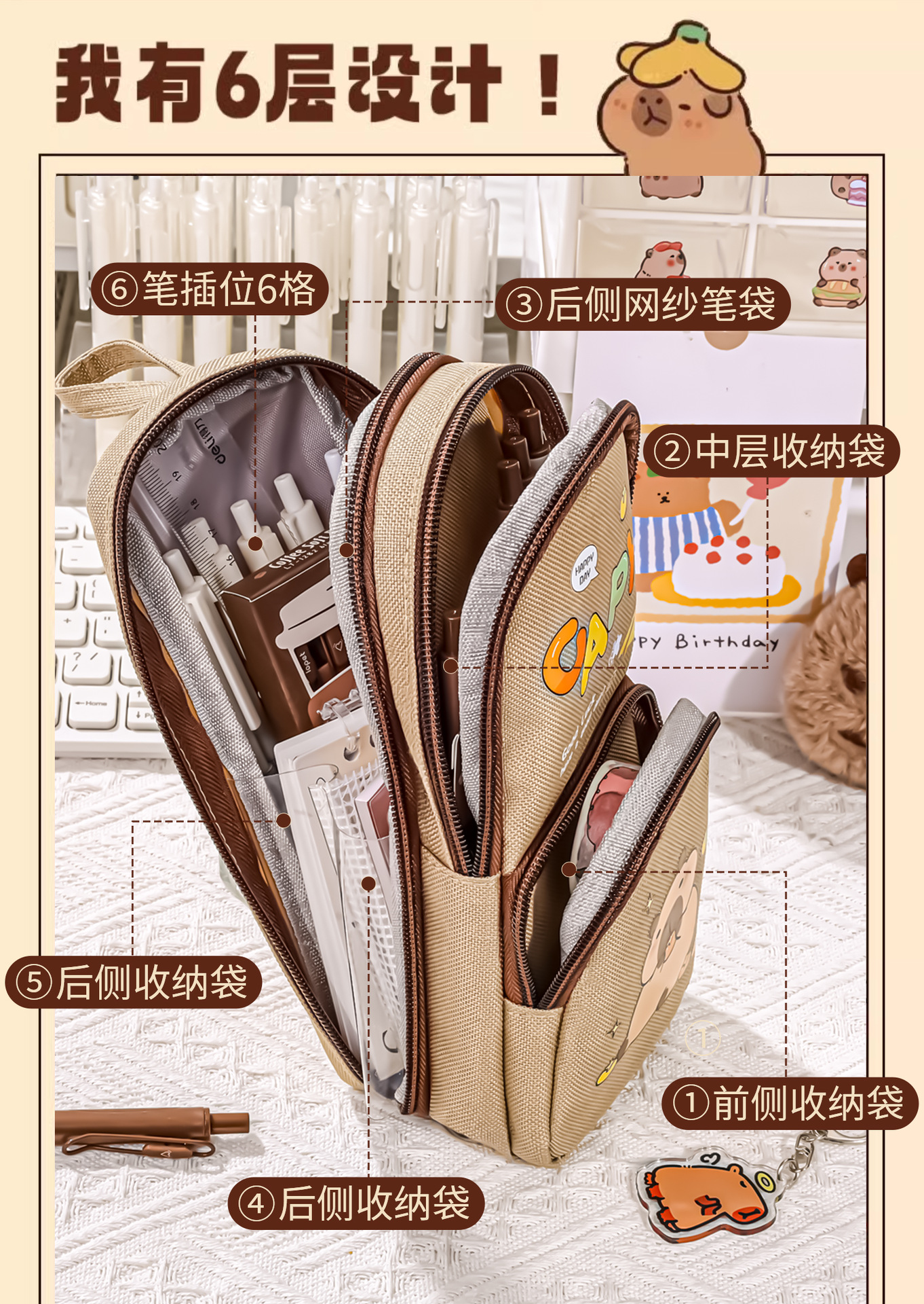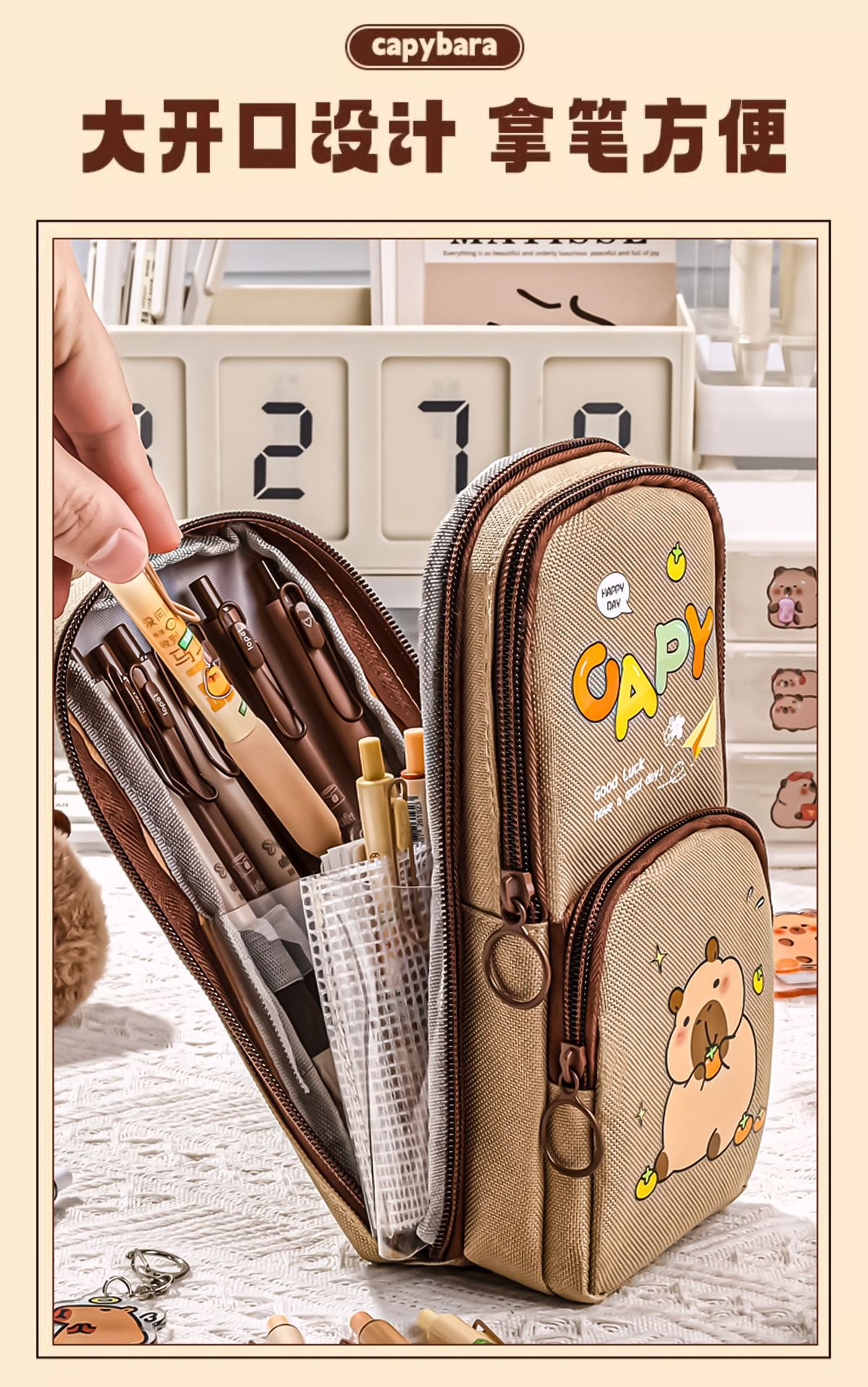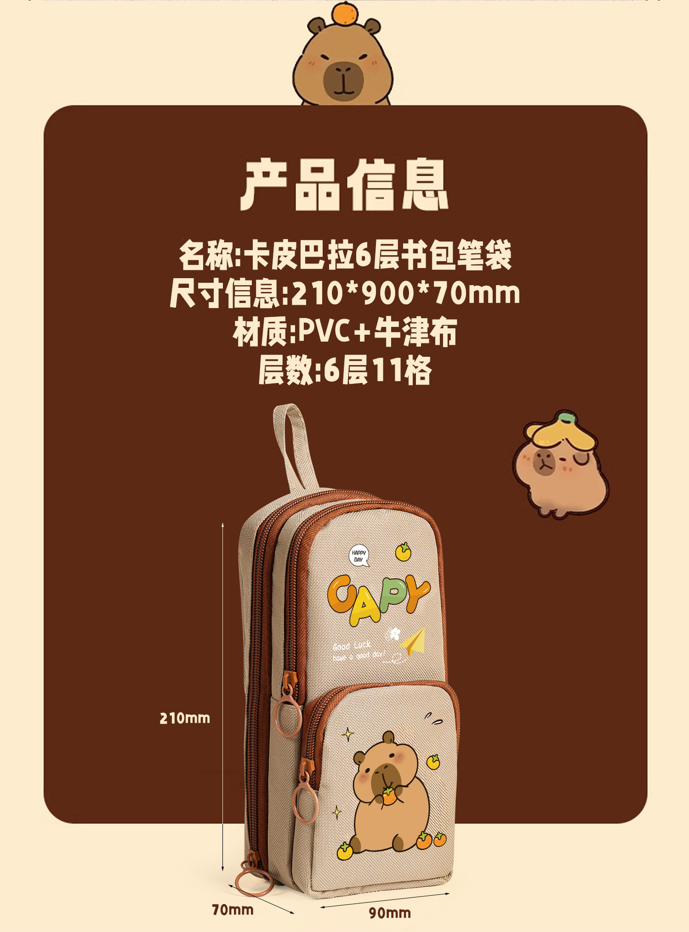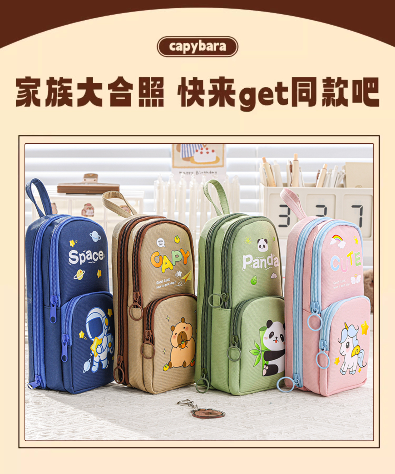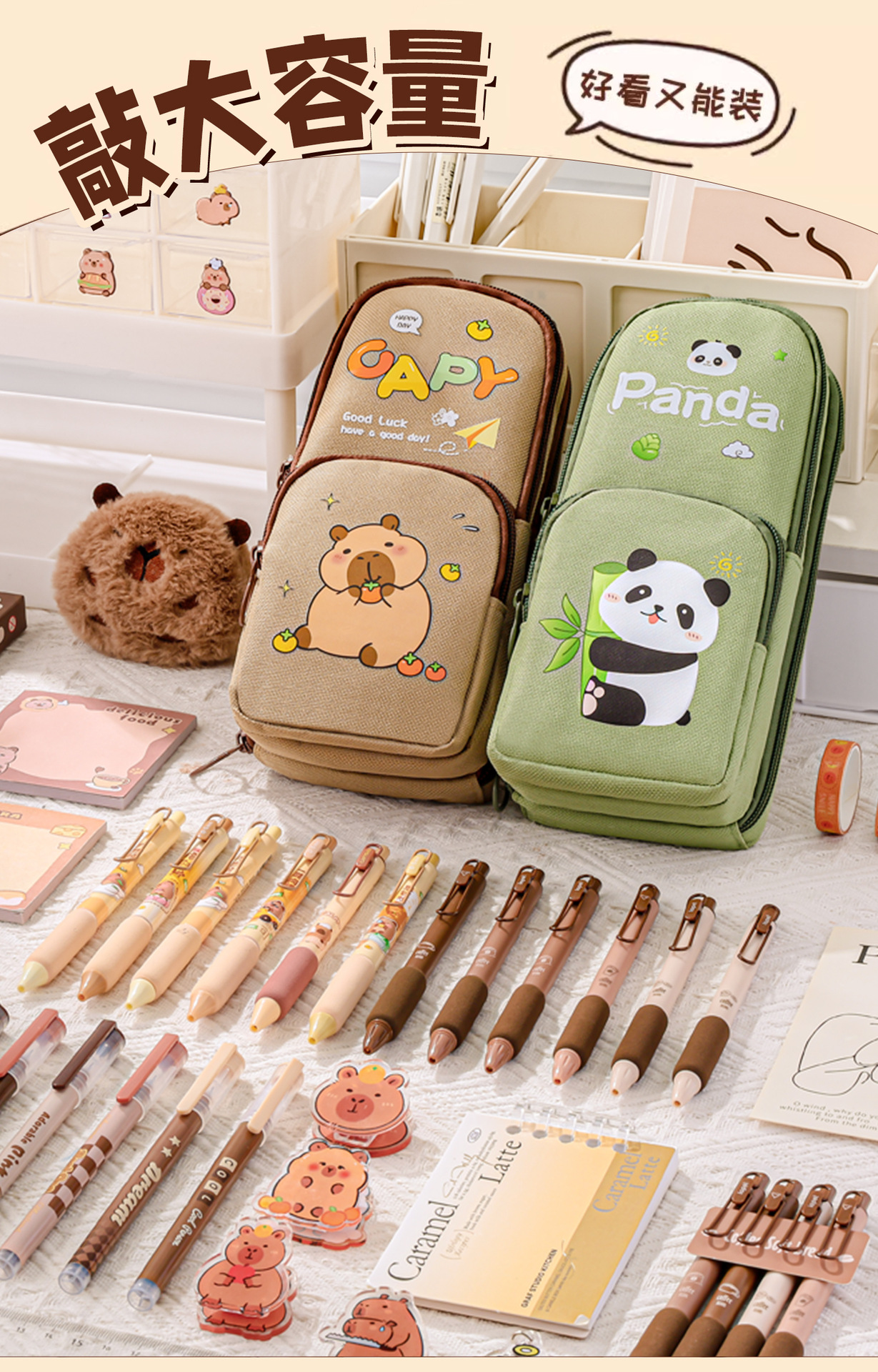 新款卡皮巴拉仿真笔袋定制学生可爱高颜值文具盒开学大容量铅笔盒