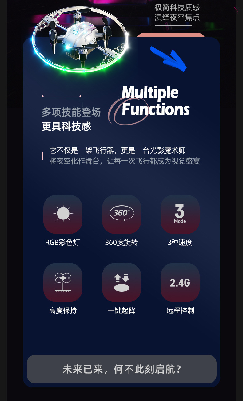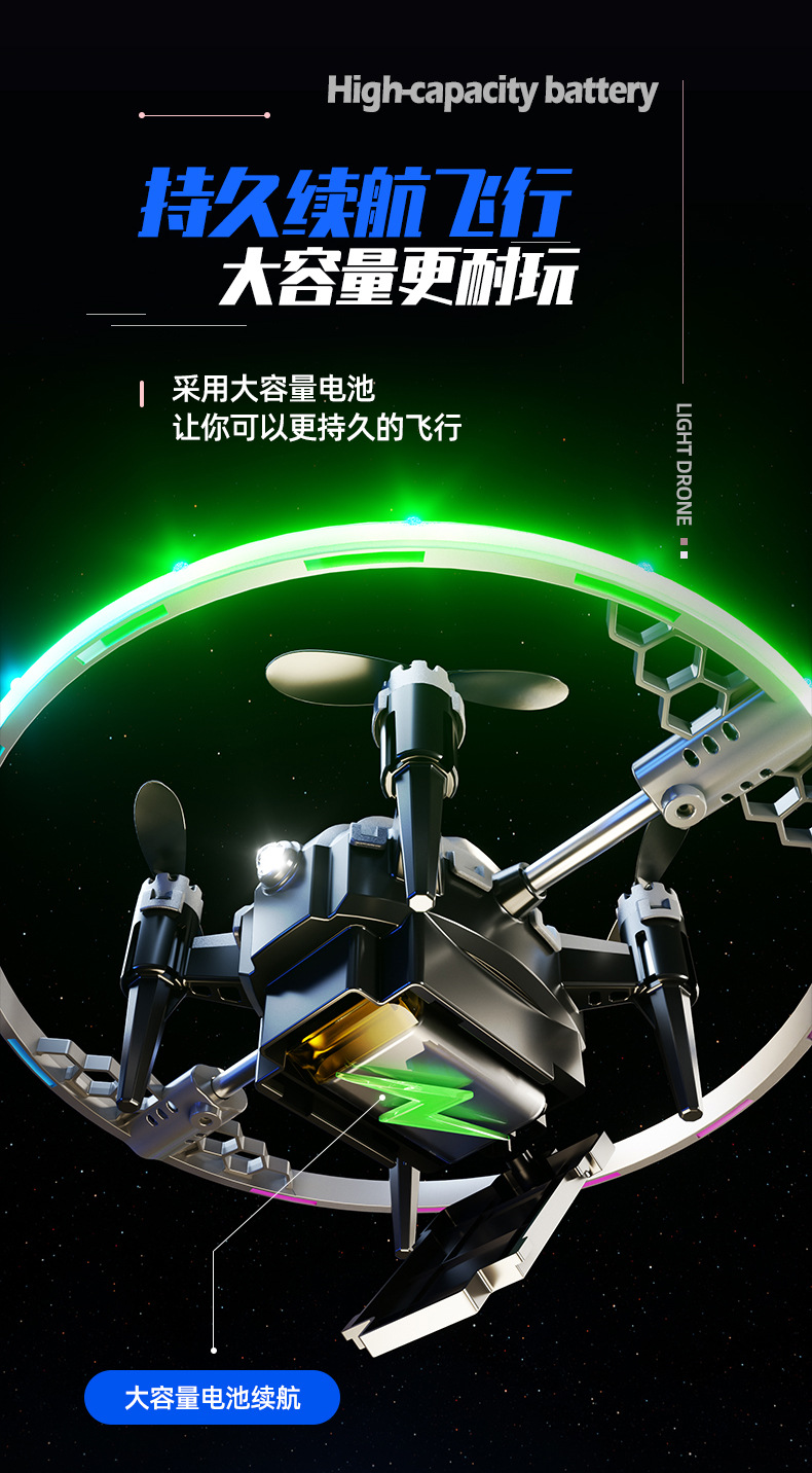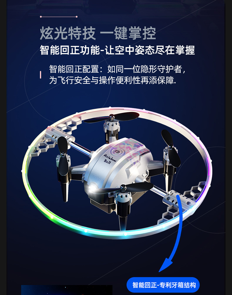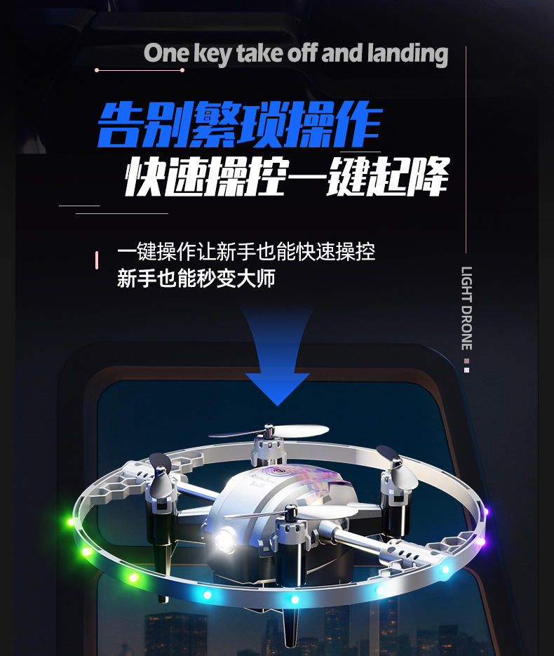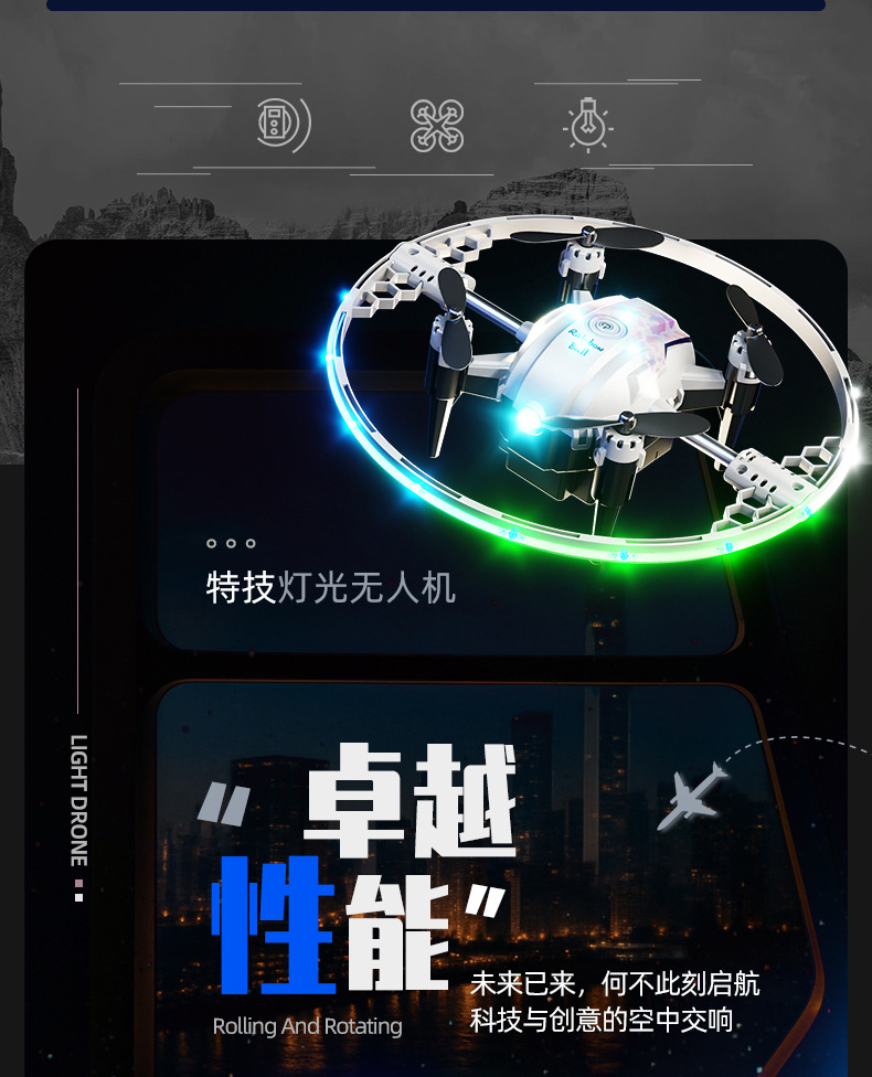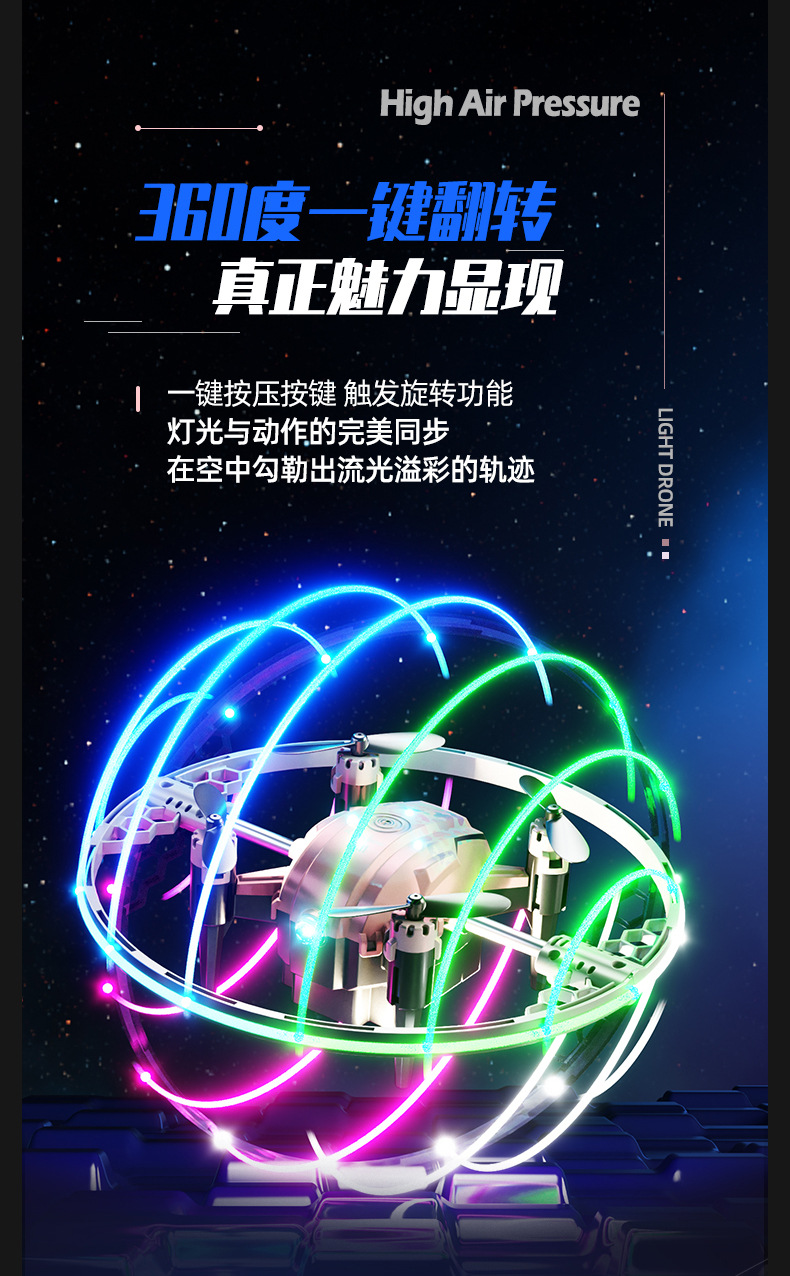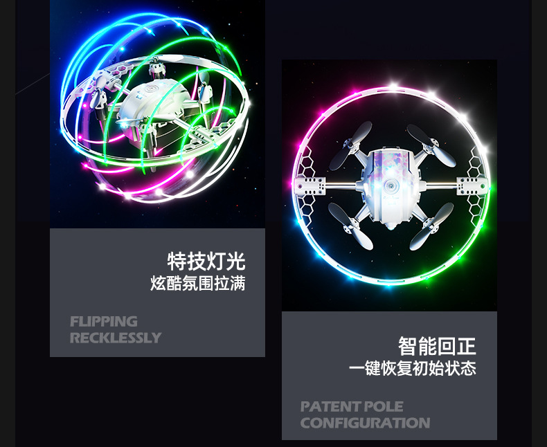 JJRC新品酷炫灯光无人机特技翻滚旋转智能定高迷你四轴飞行器玩具