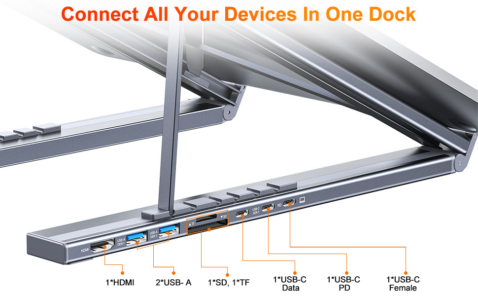 typec桌面扩展坞转hdmi4k笔记本支架拓展坞8合1铝合金可折叠便携