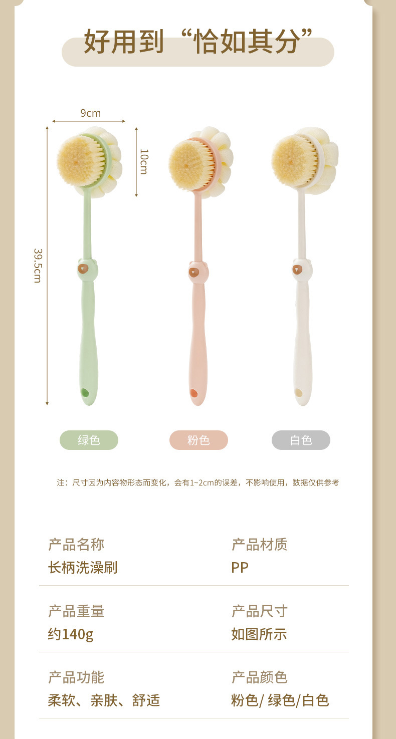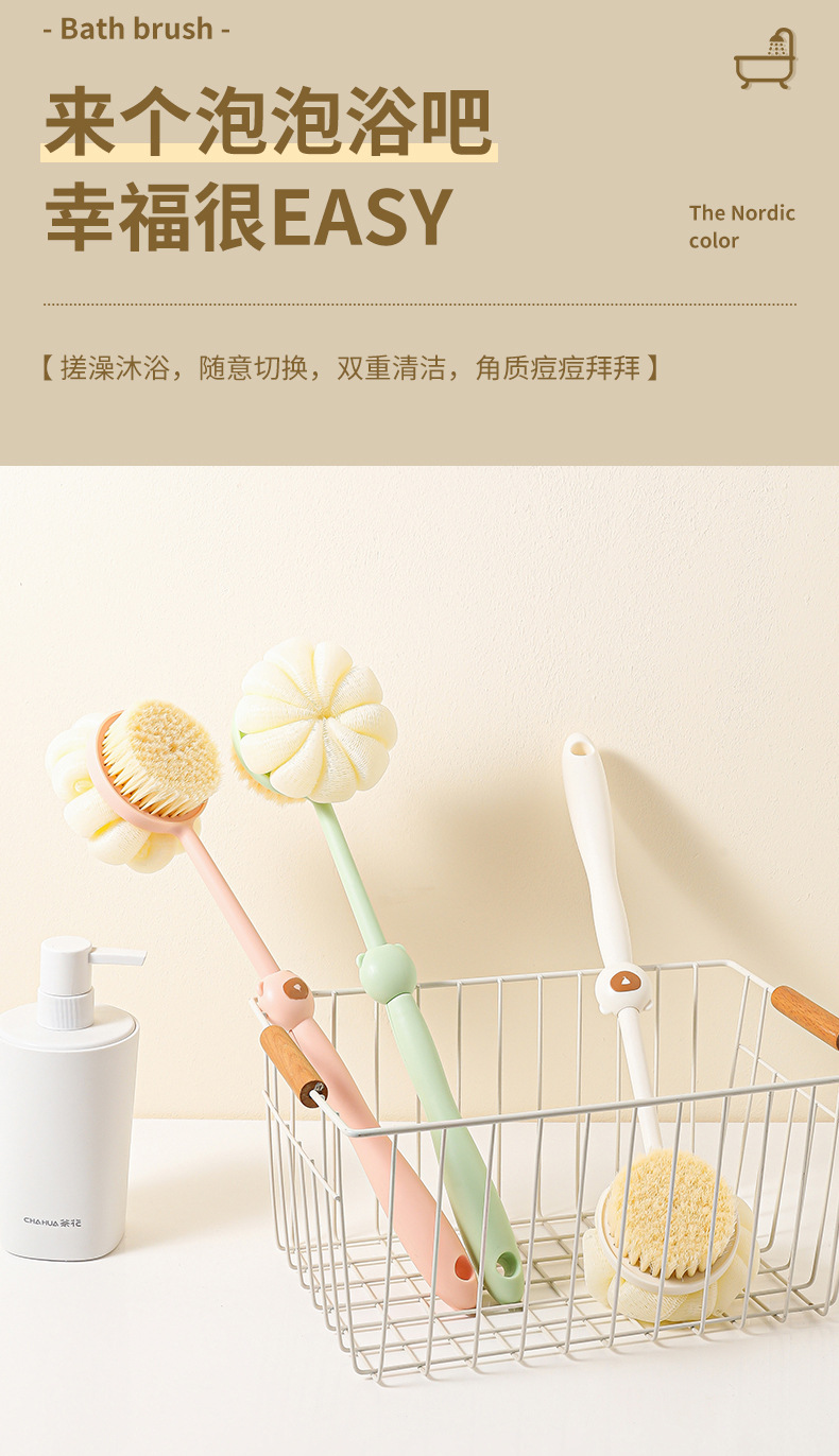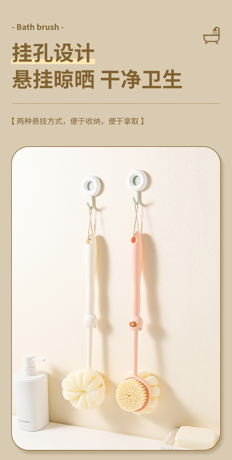 洗澡刷搓背不求人长柄刷软毛刷子双面沐浴刷搓泥去灰搓澡刷背