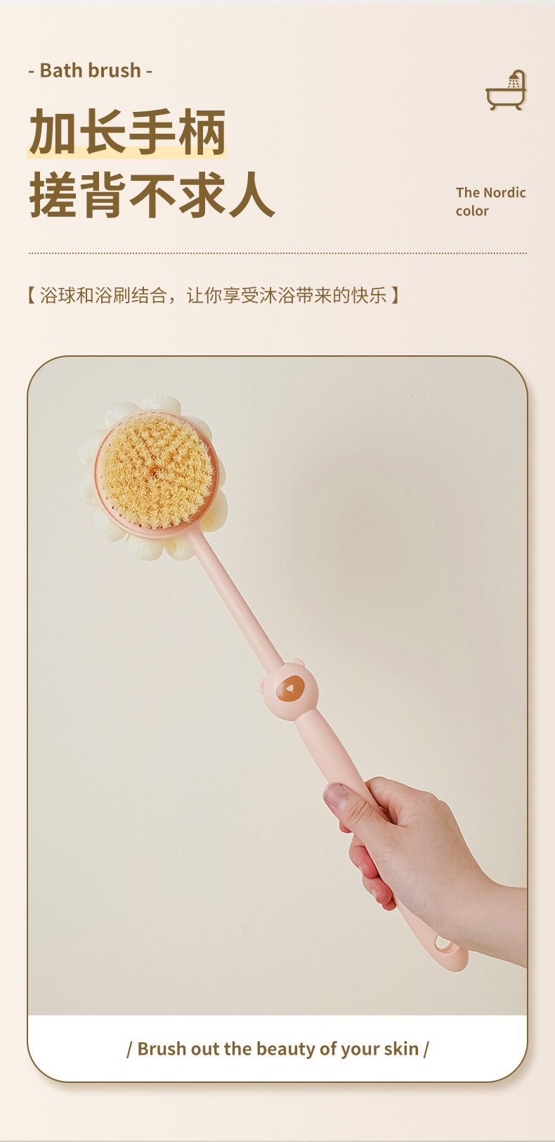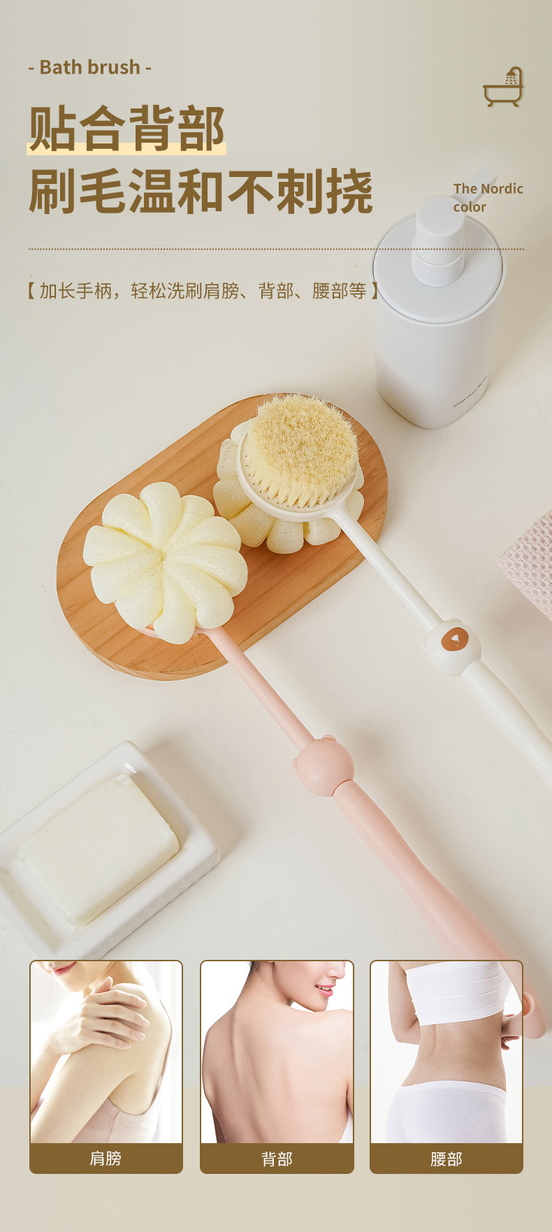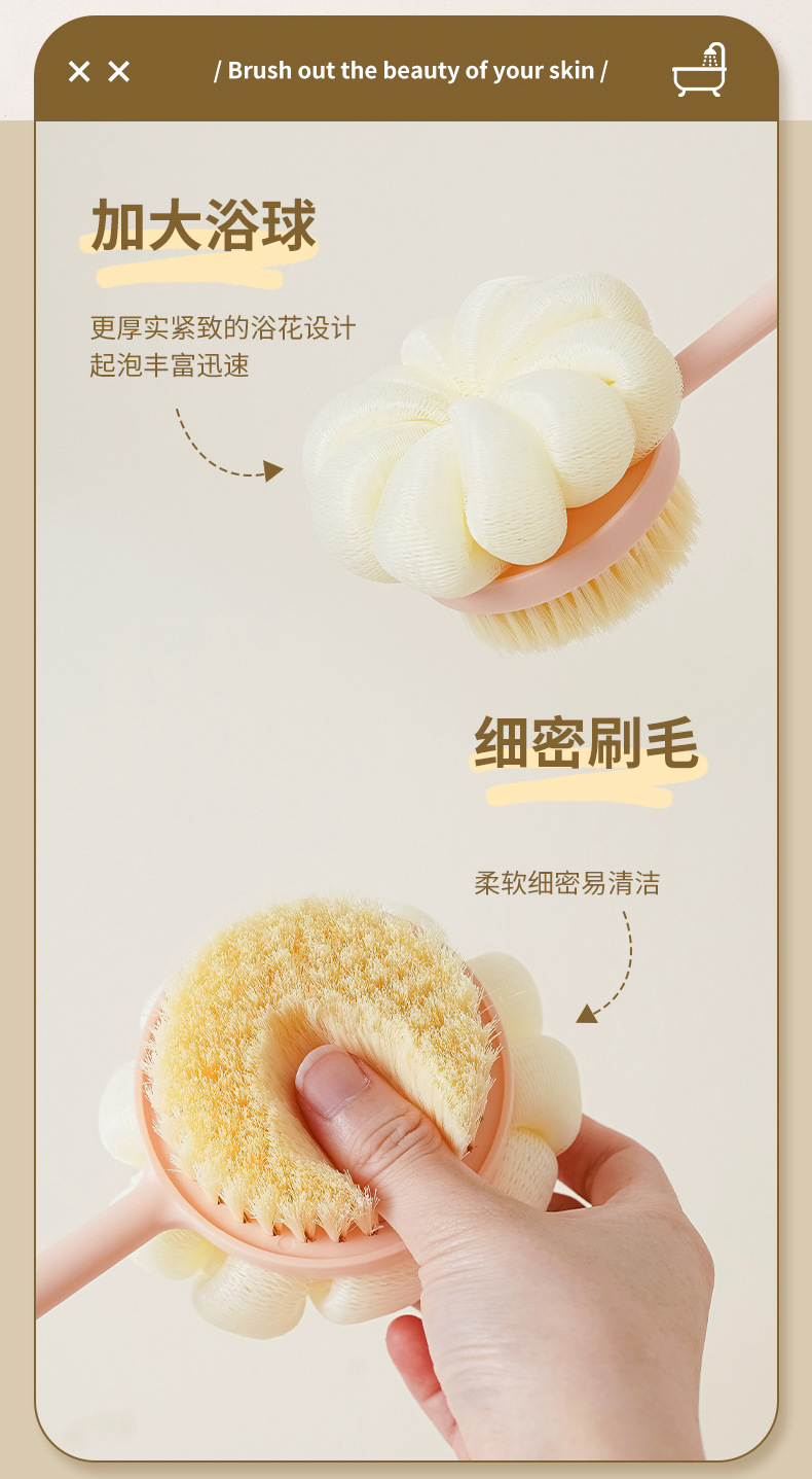 洗澡刷搓背不求人长柄刷软毛刷子双面沐浴刷搓泥去灰搓澡刷背