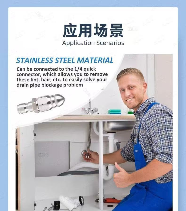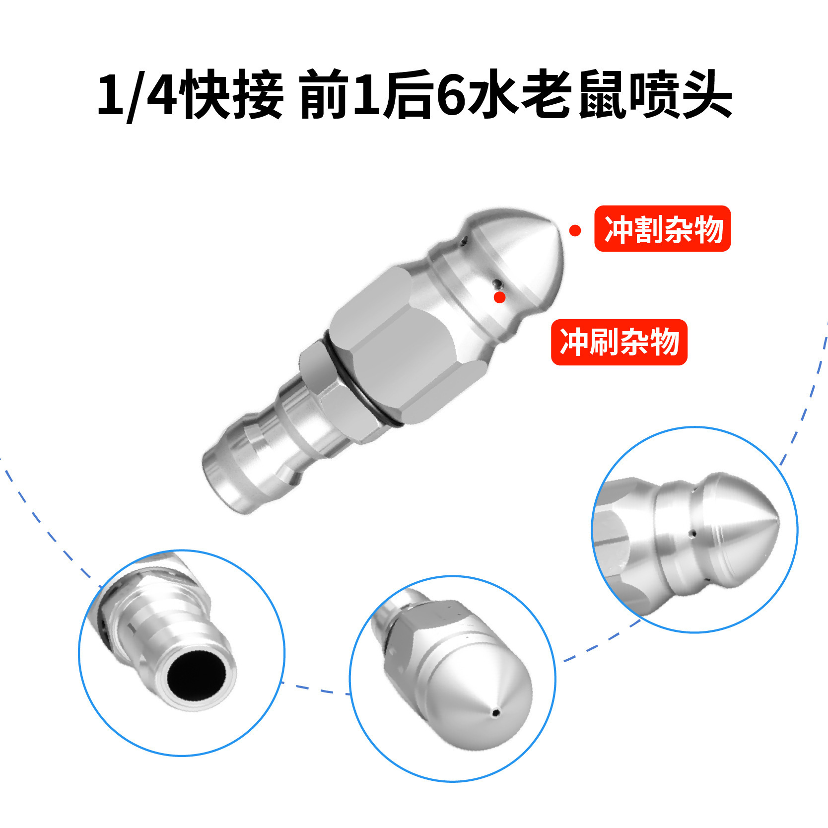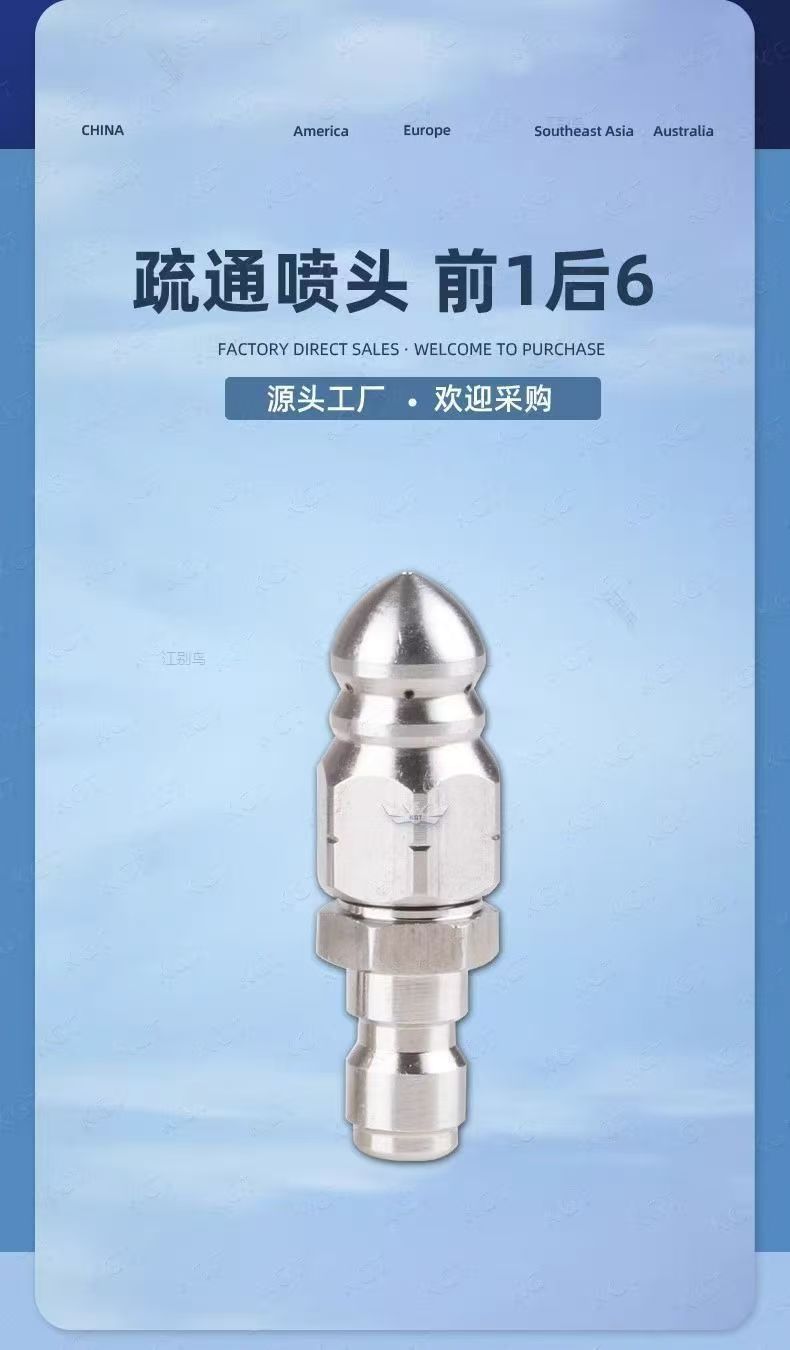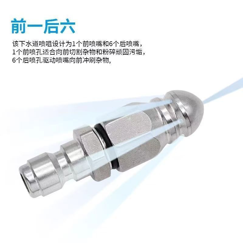 老鼠头高压喷嘴 水老鼠喷头七孔1/4前一后六喷嘴 高压下水道疏通