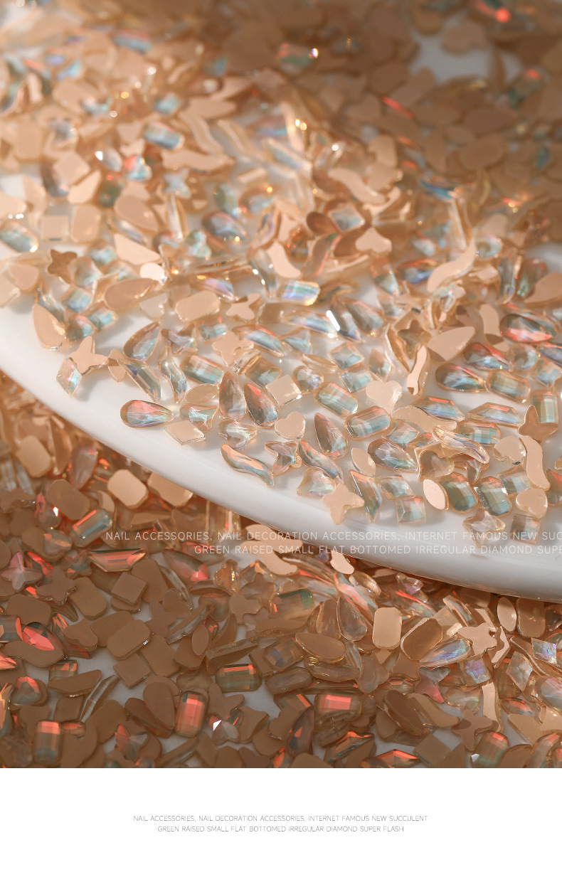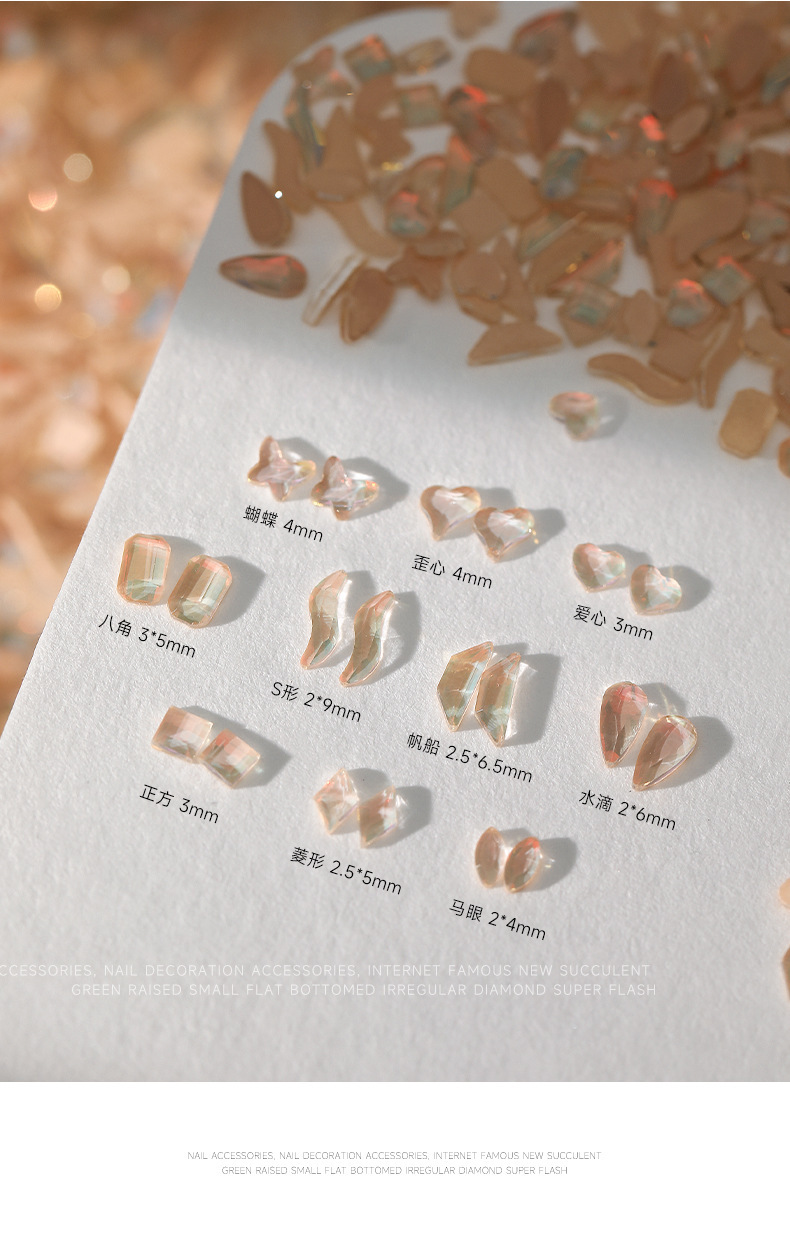 美拉德美甲平底钻异形钻摩卡多肉青提极光迷你小号指甲钻饰品配件