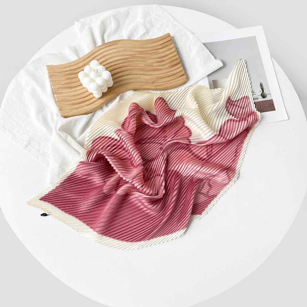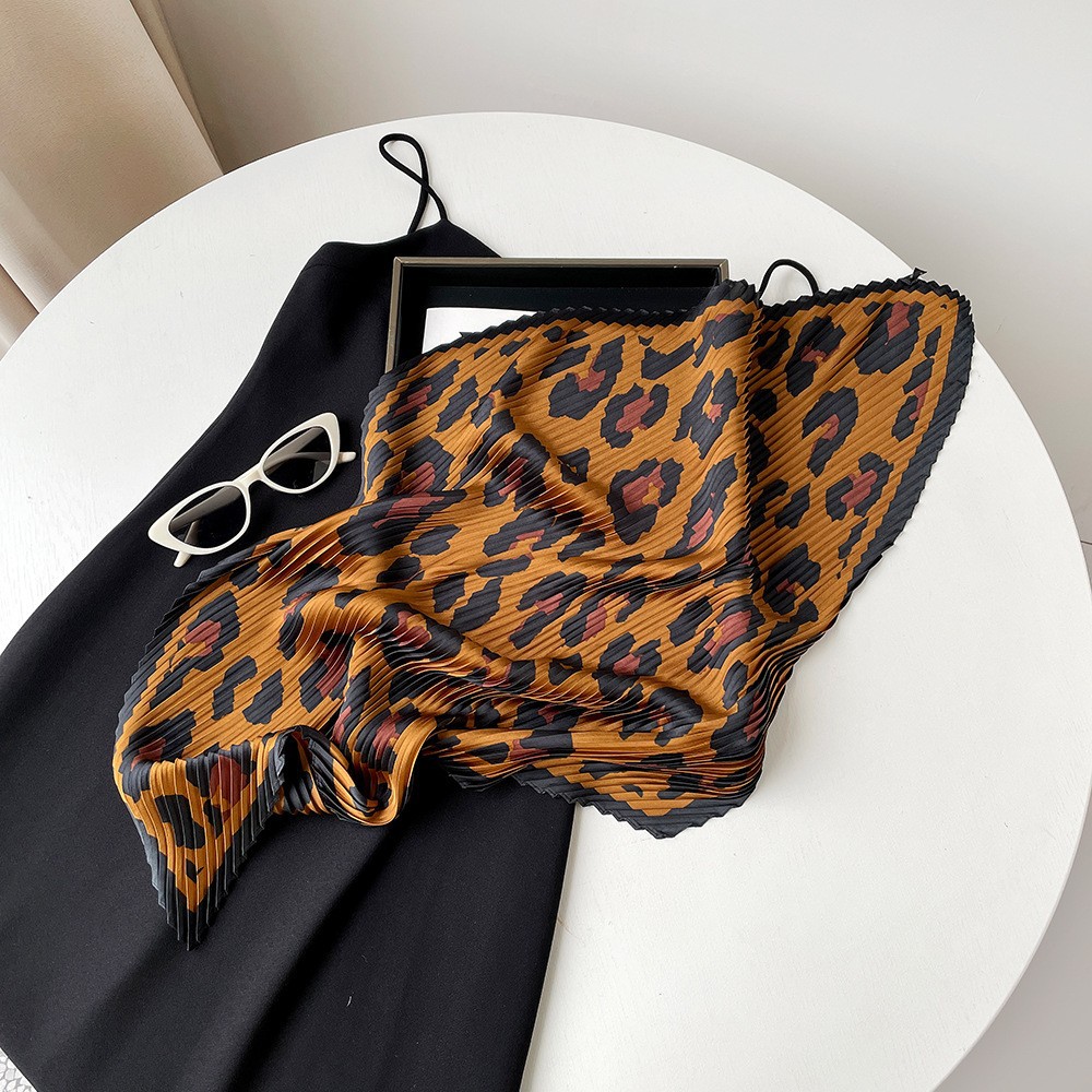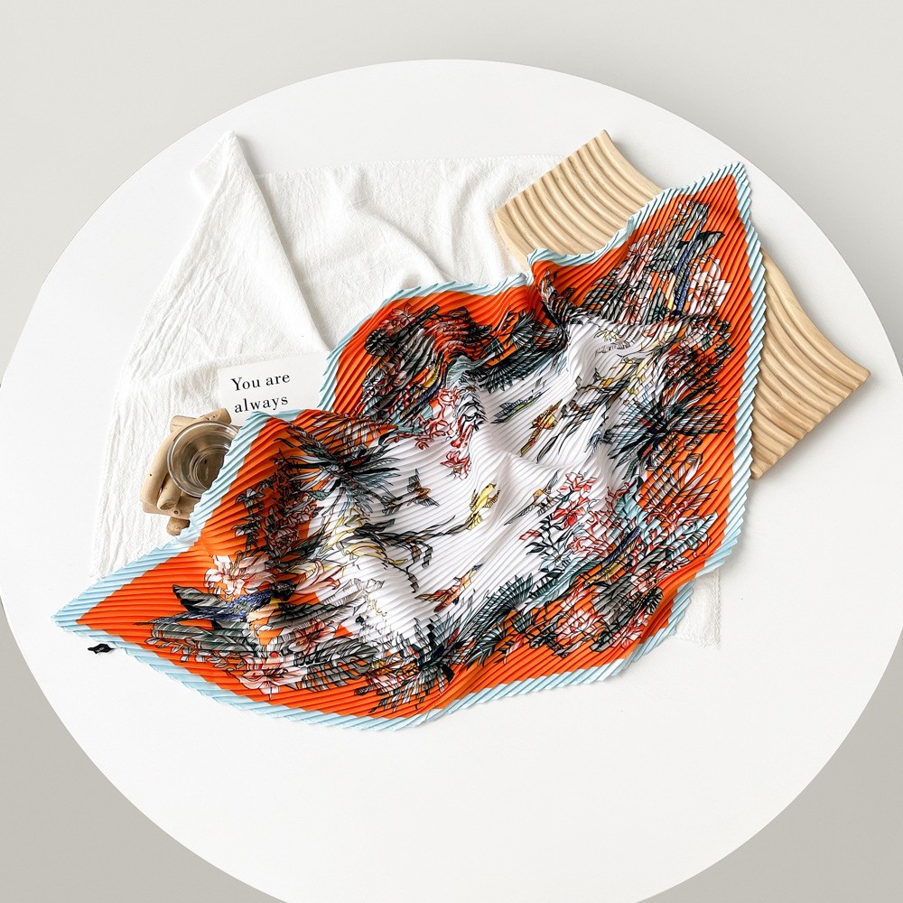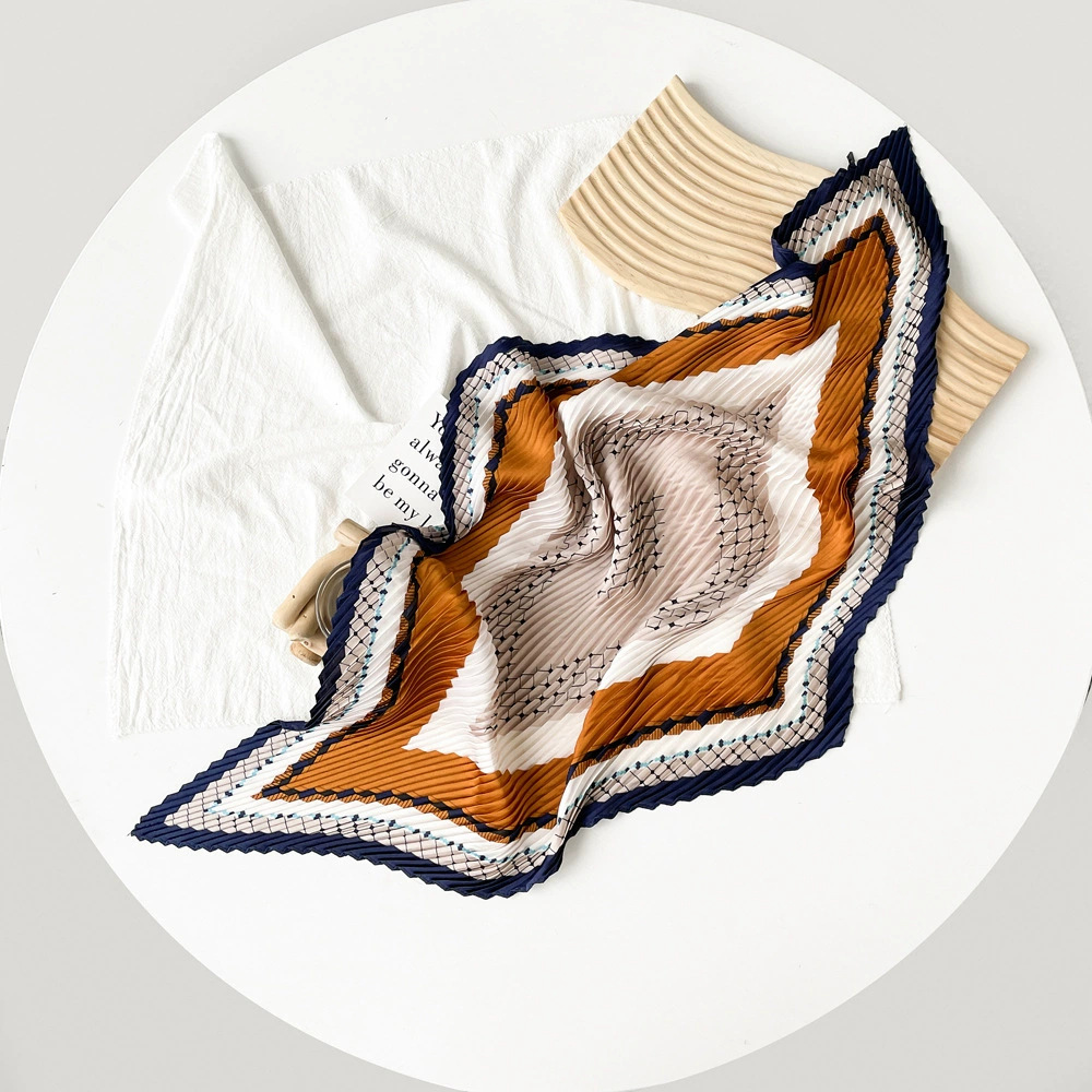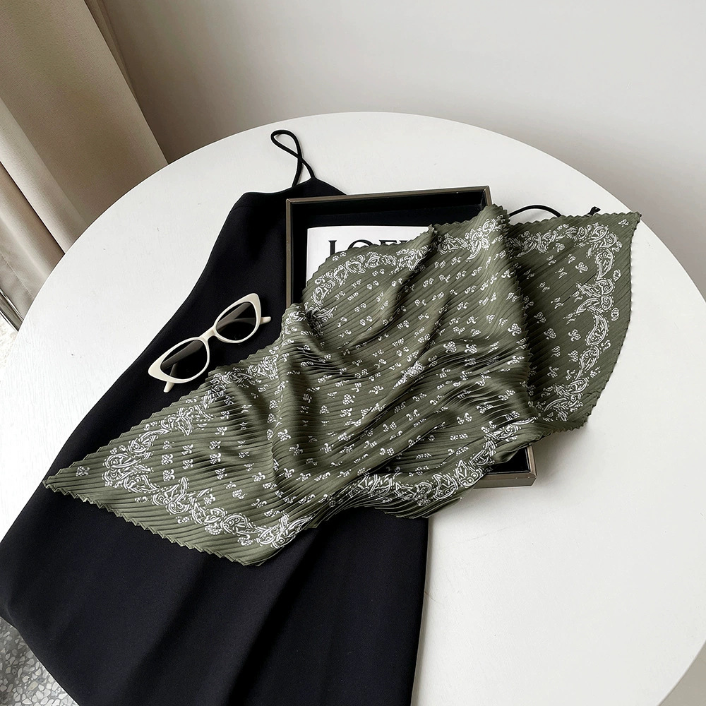 新款褶皱丝巾小方巾70cm印花小丝巾女士新款领巾缎面压褶围巾批发