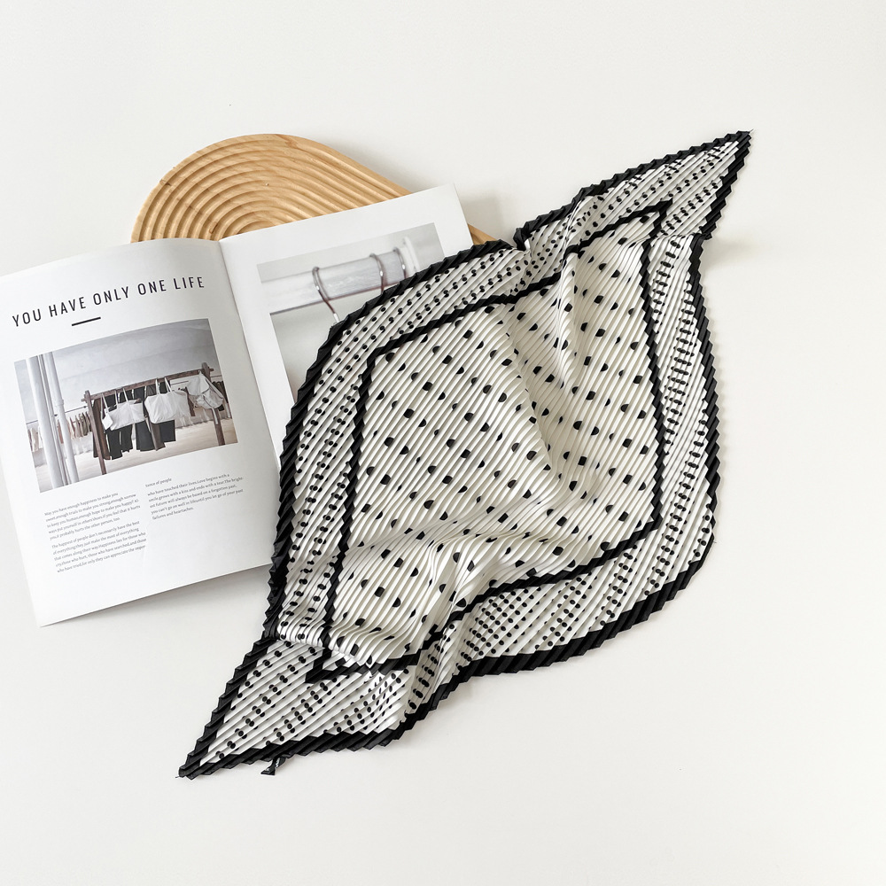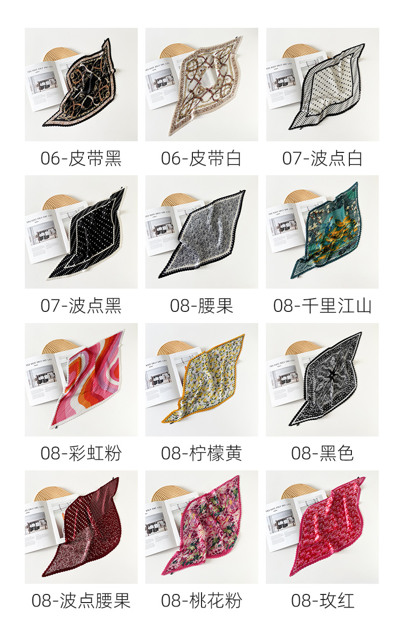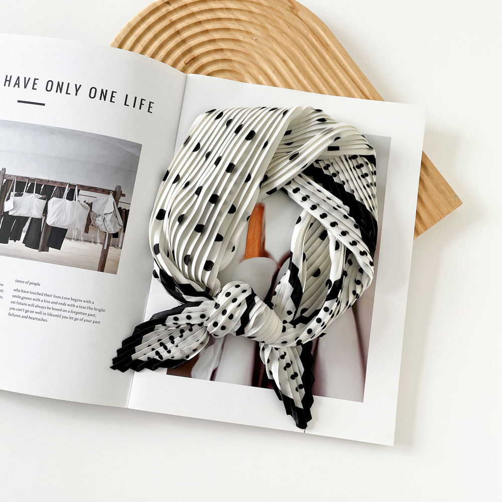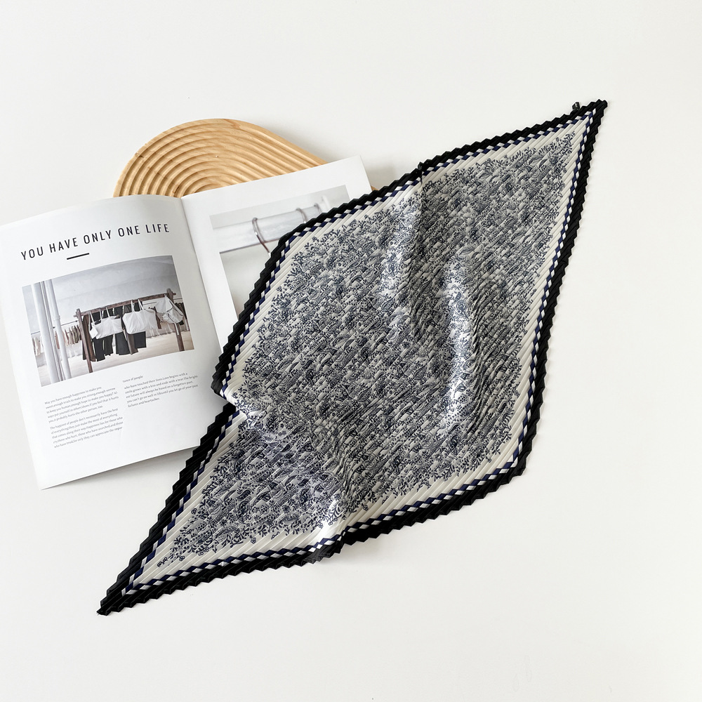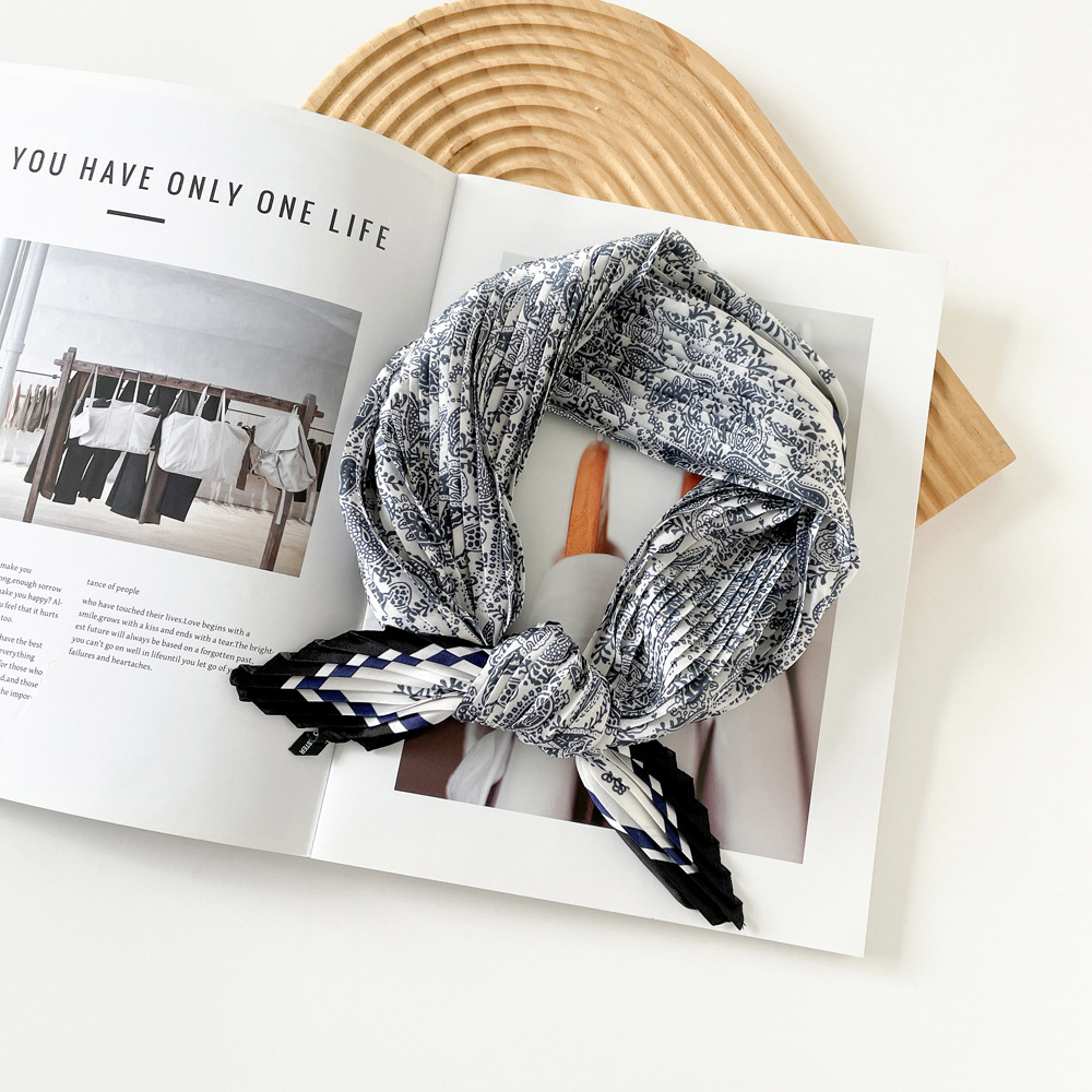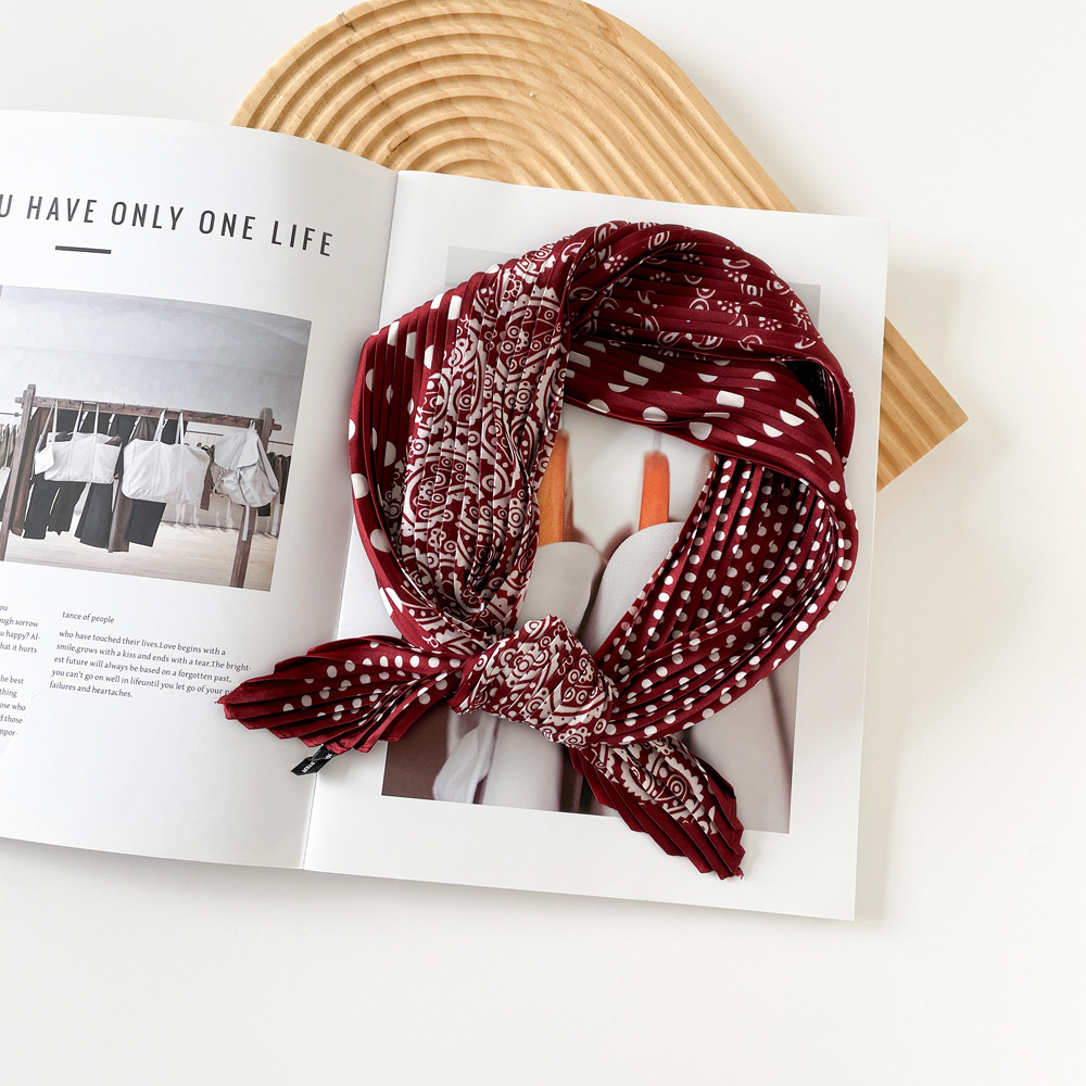 新款褶皱丝巾小方巾70cm印花小丝巾女士新款领巾缎面压褶围巾批发