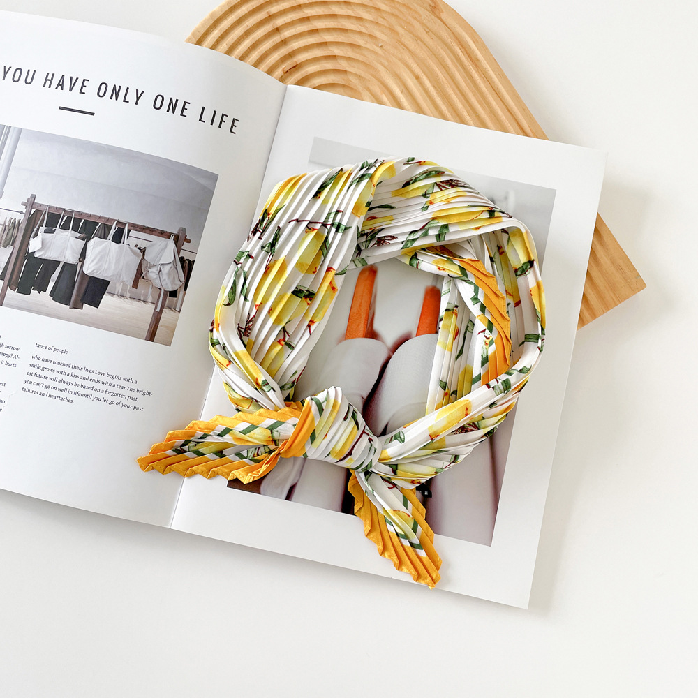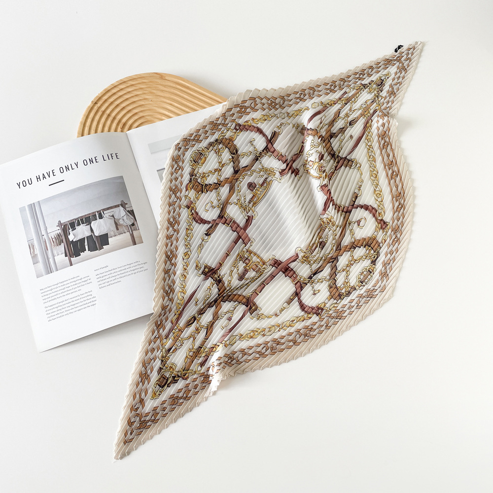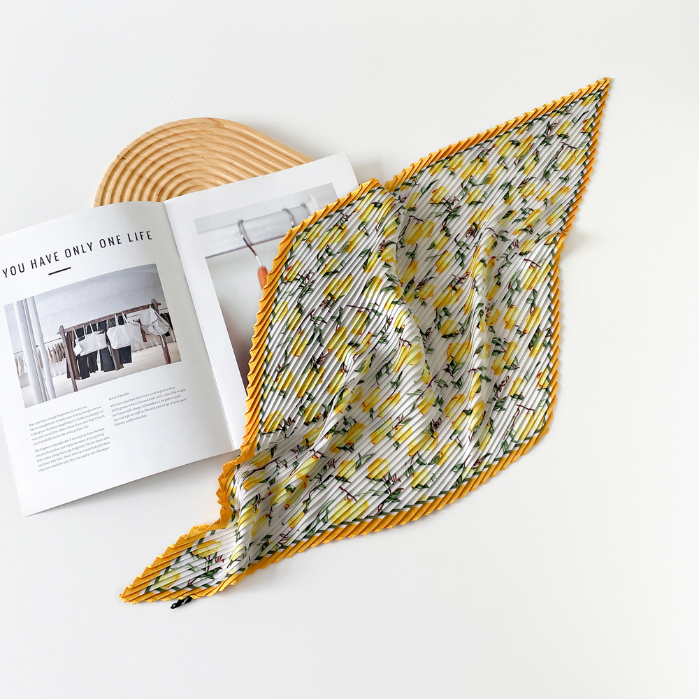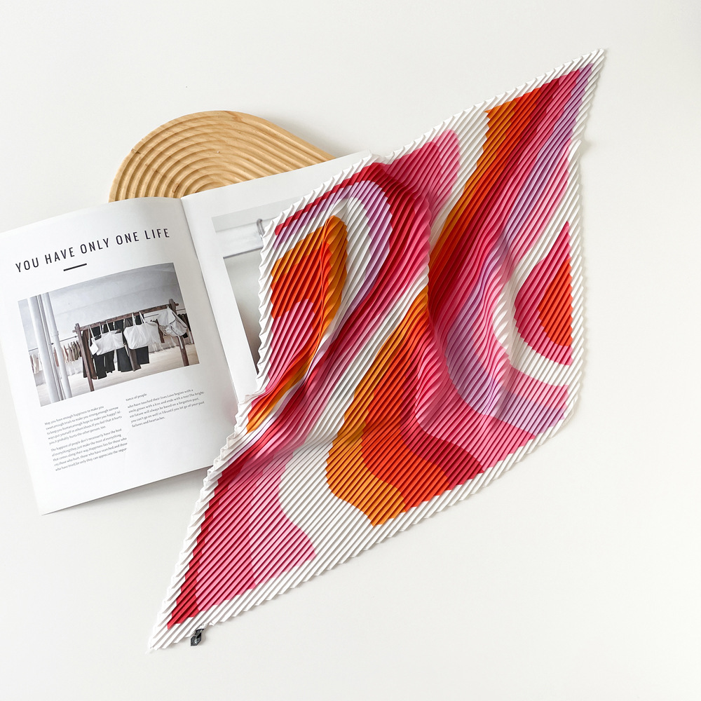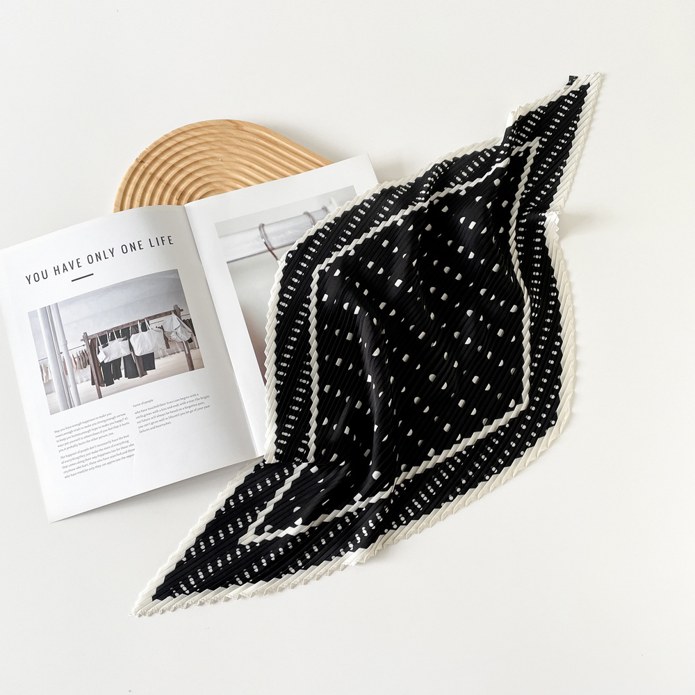 新款褶皱丝巾小方巾70cm印花小丝巾女士新款领巾缎面压褶围巾批发
