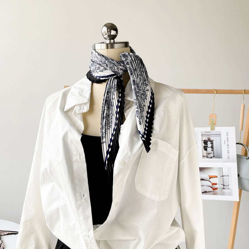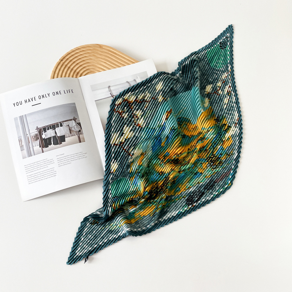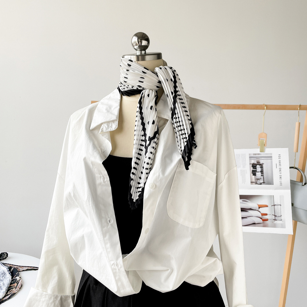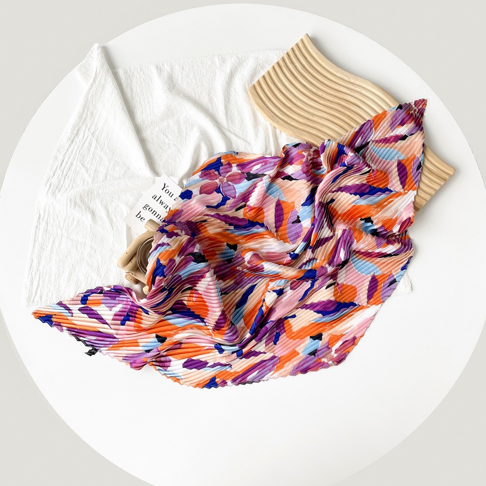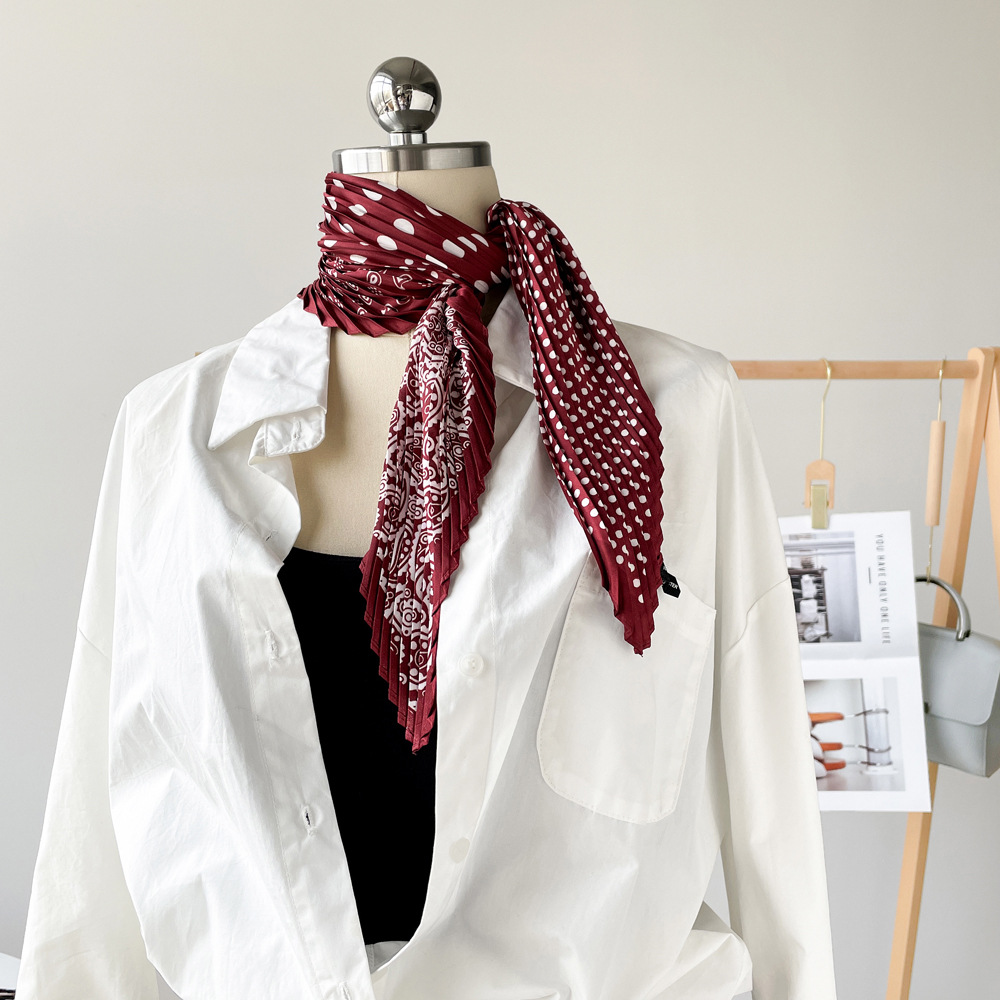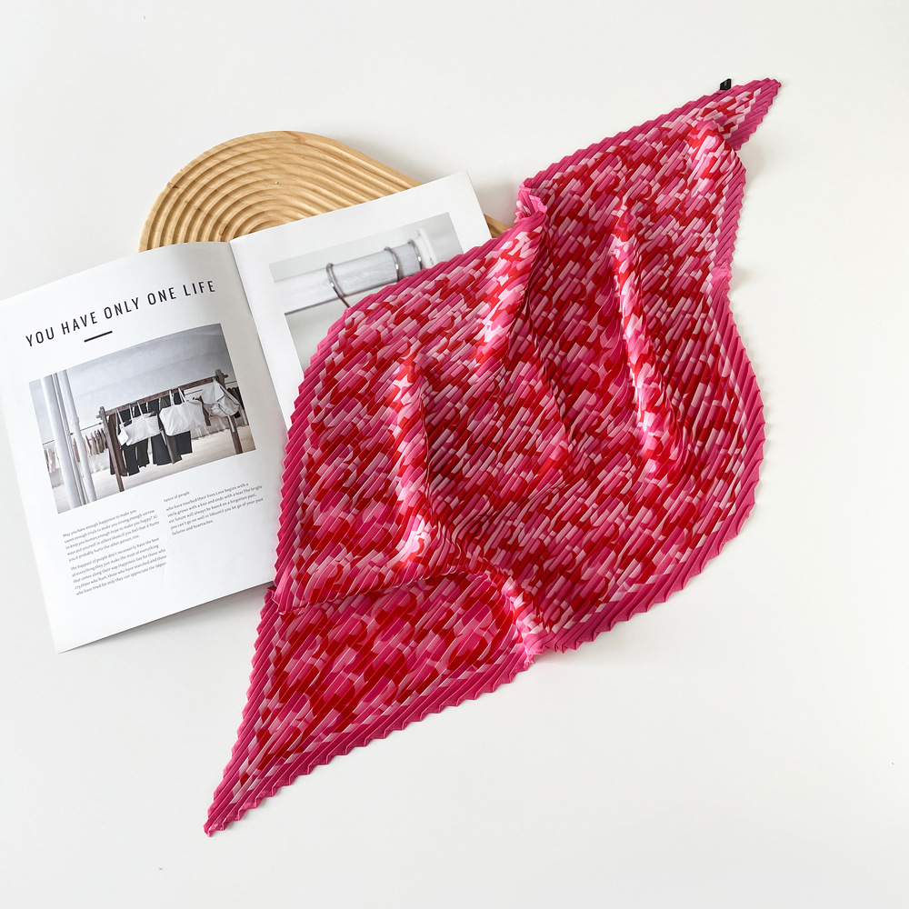 新款褶皱丝巾小方巾70cm印花小丝巾女士新款领巾缎面压褶围巾批发