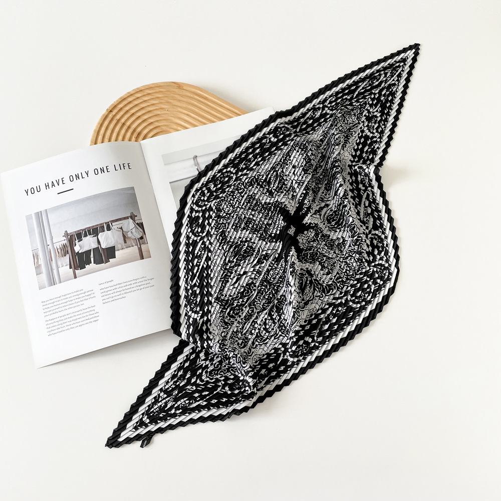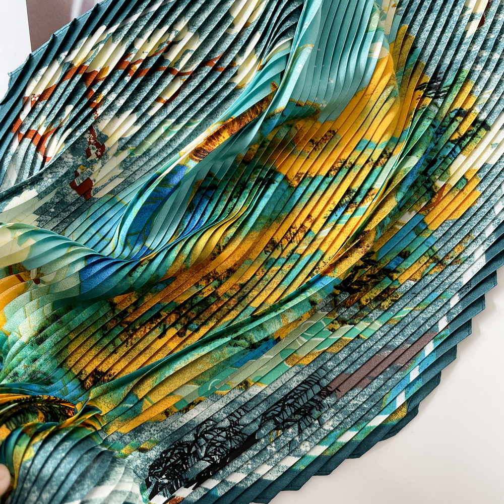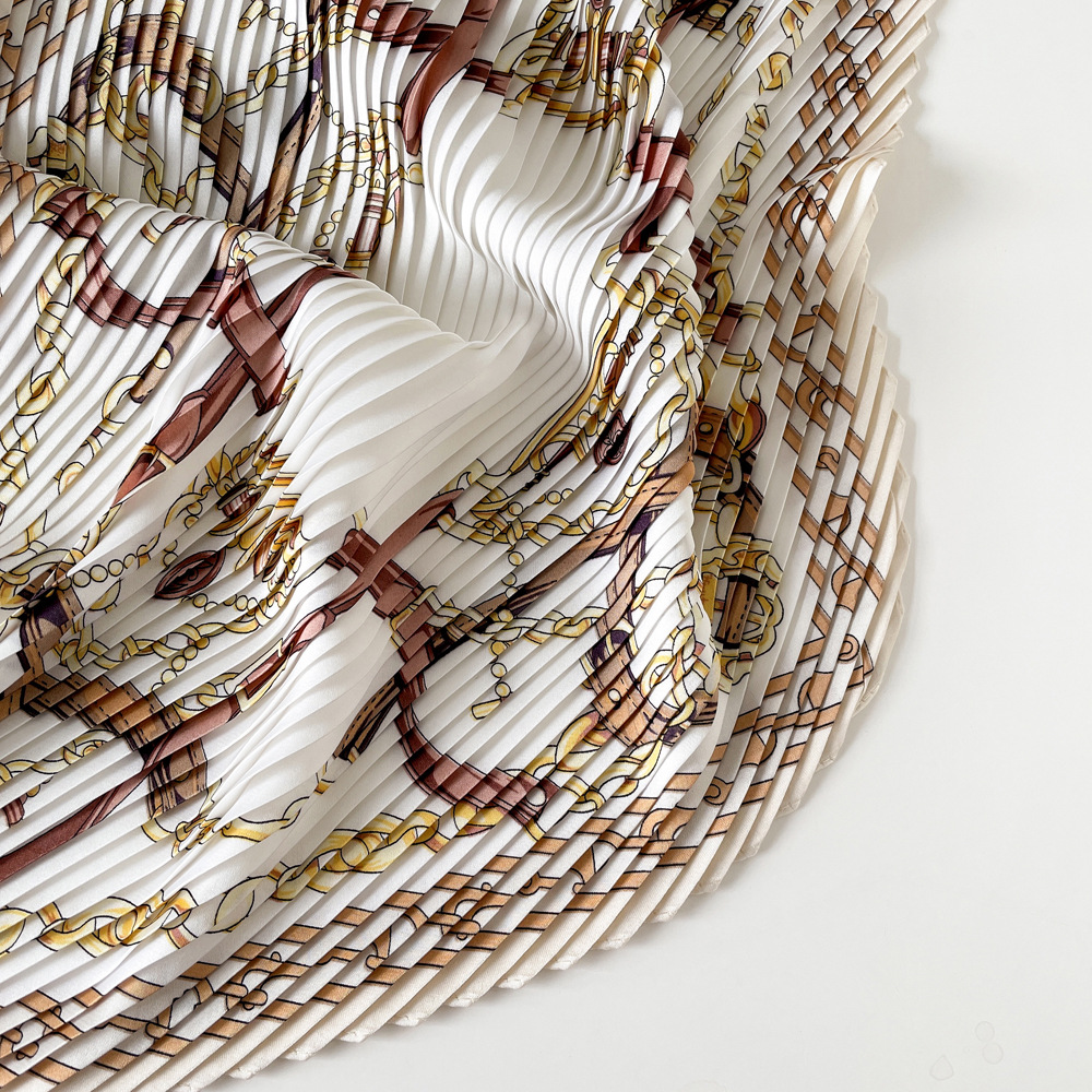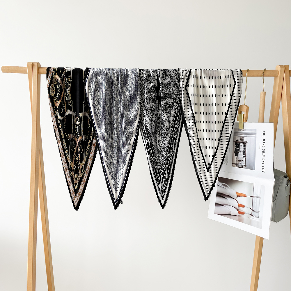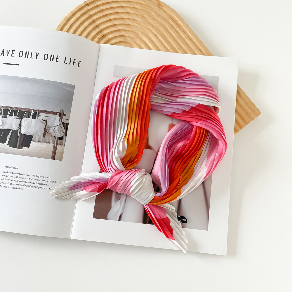 新款褶皱丝巾小方巾70cm印花小丝巾女士新款领巾缎面压褶围巾批发