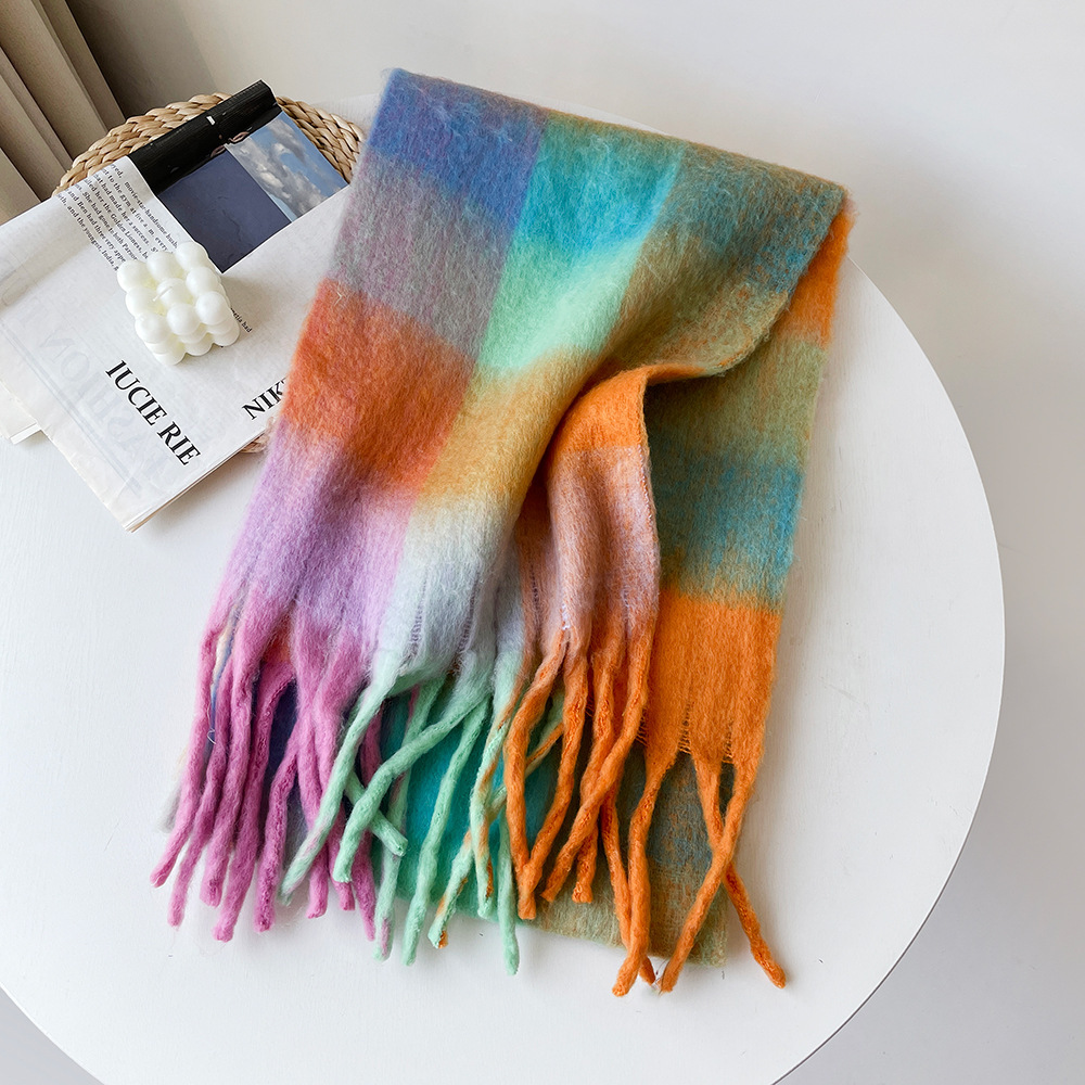 克拉因蓝围巾女冬季韩版百搭加厚纯色披肩马海毛高级感保暖围脖