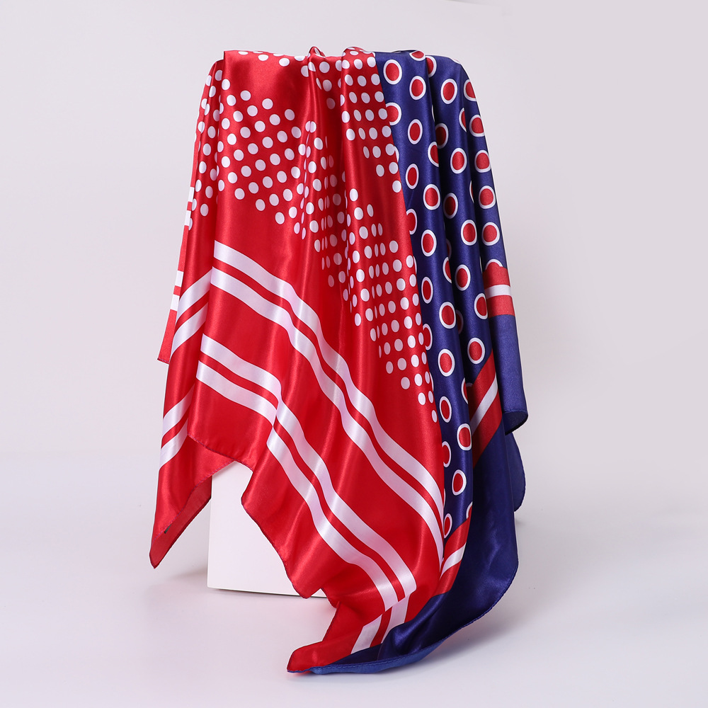 跨境咖色豹纹波点印花丝巾女围巾仿丝色丁90cm大方巾欧美头巾批发