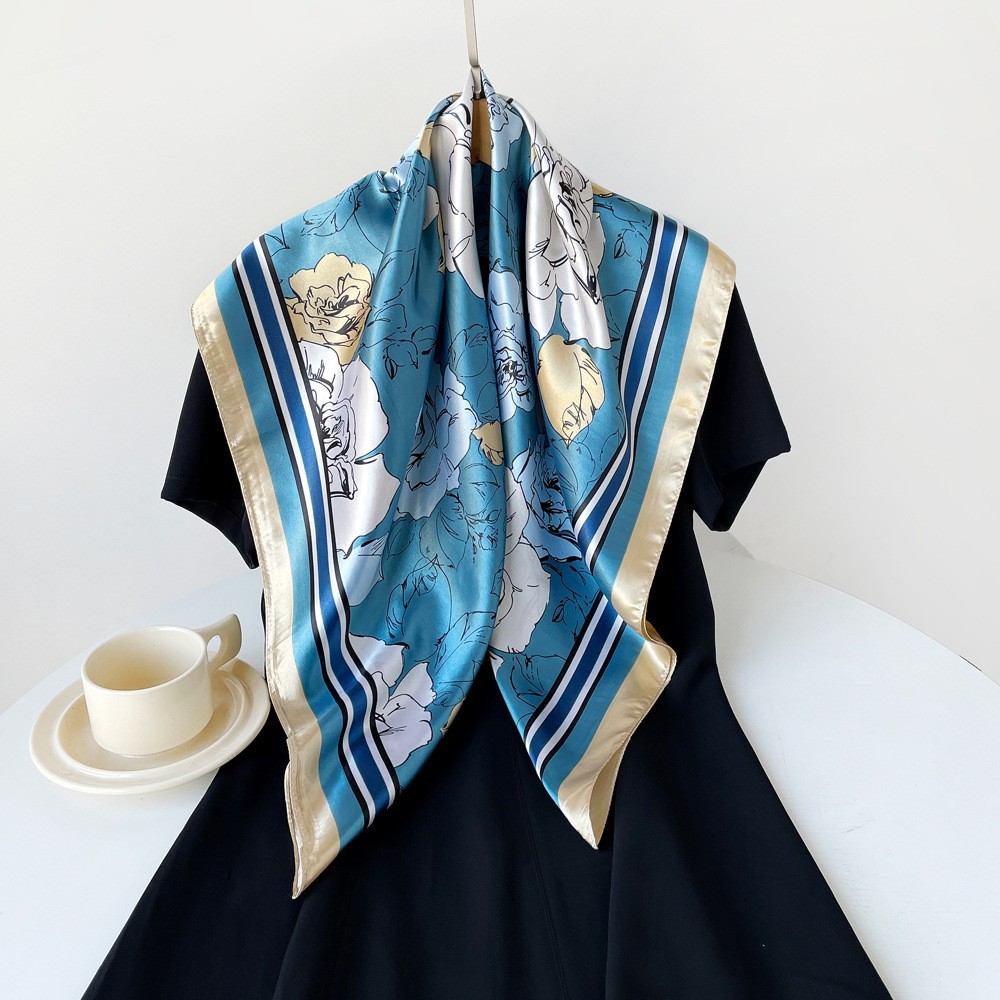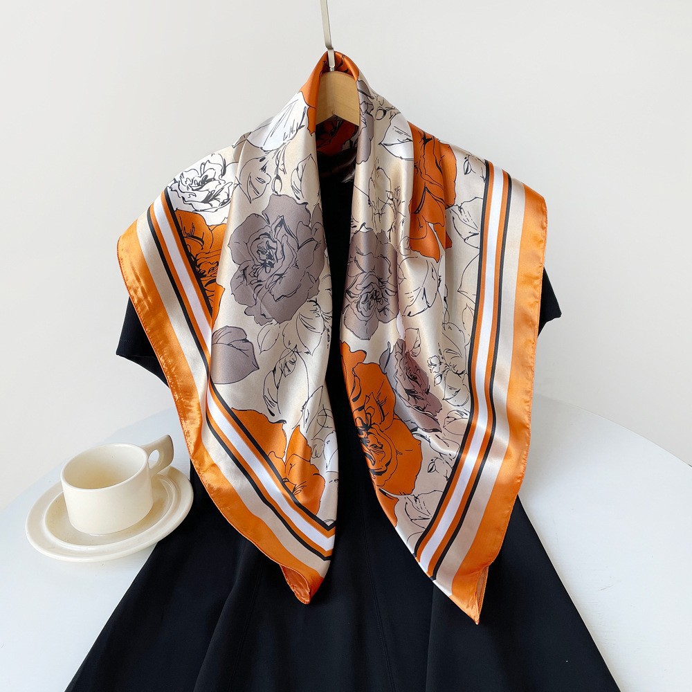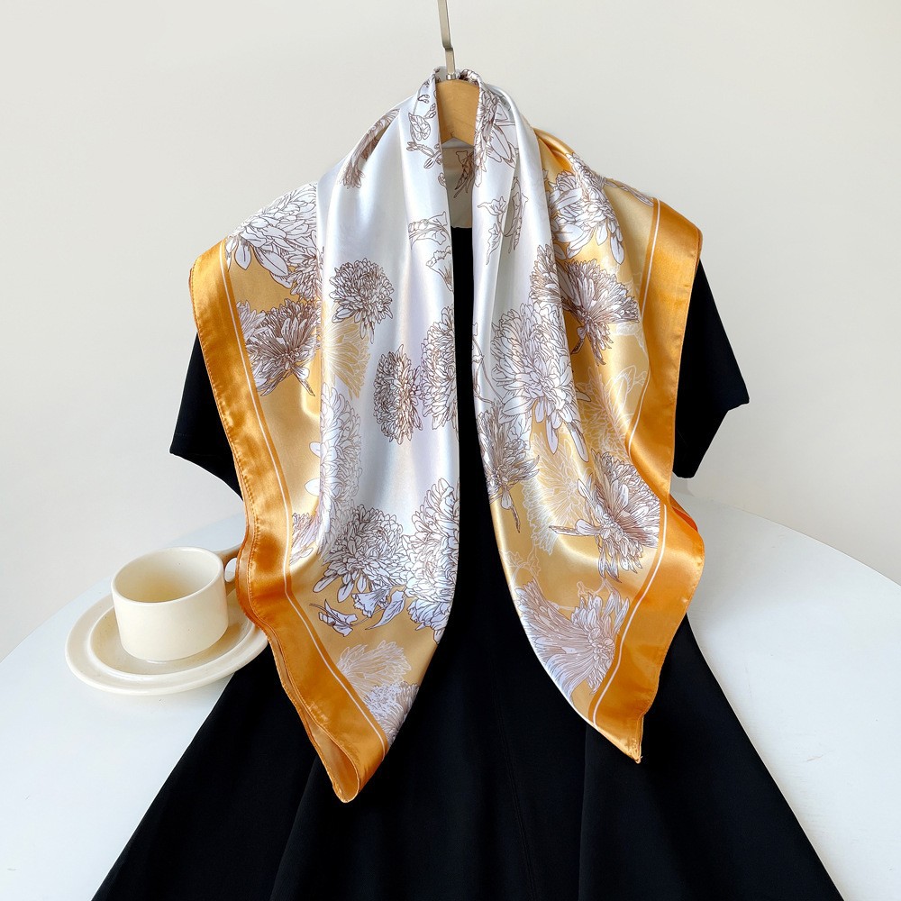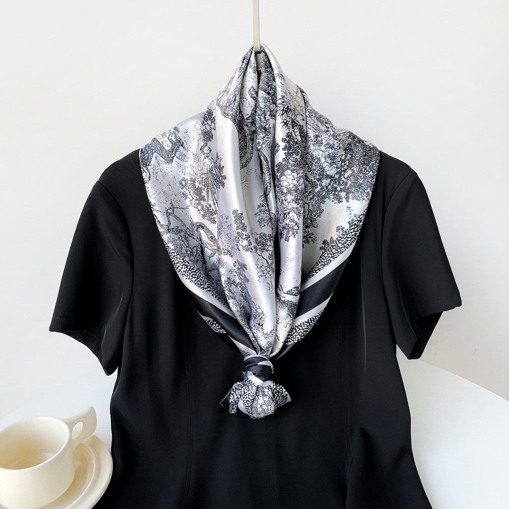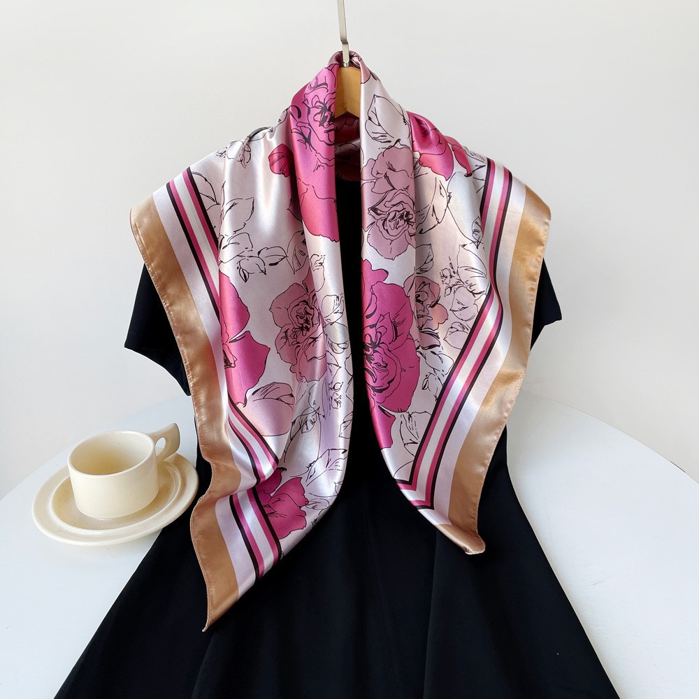 春季新品高级感女丝巾仿真丝大方巾90cm礼品围巾批发印花色丁领巾