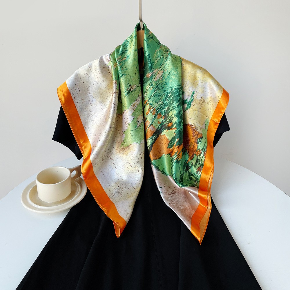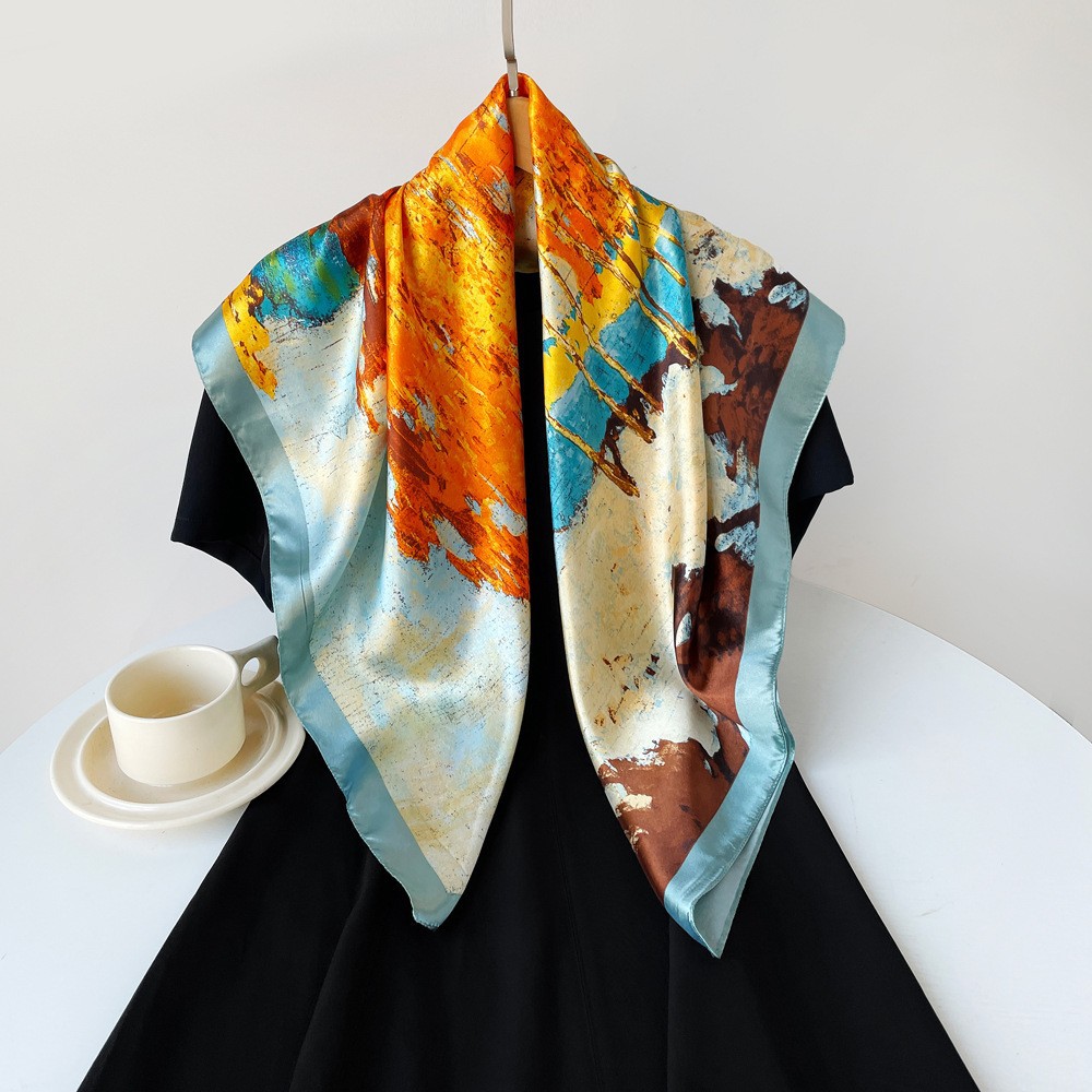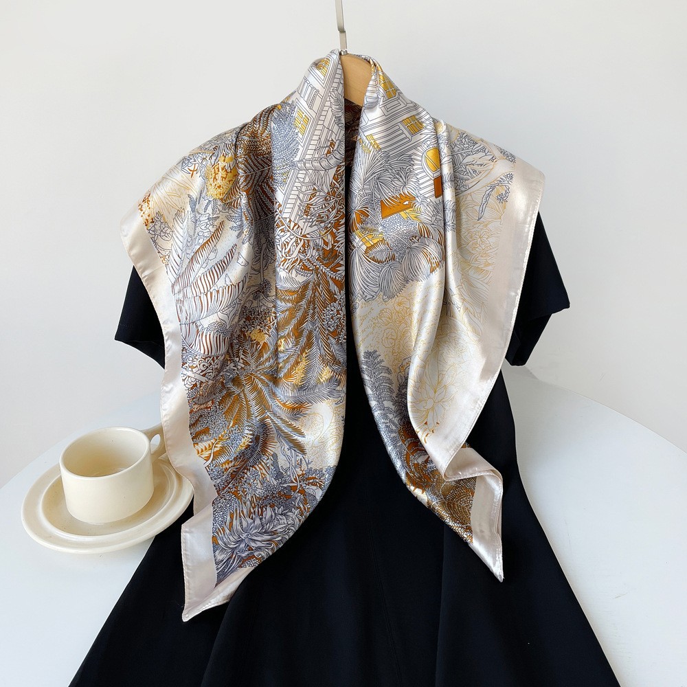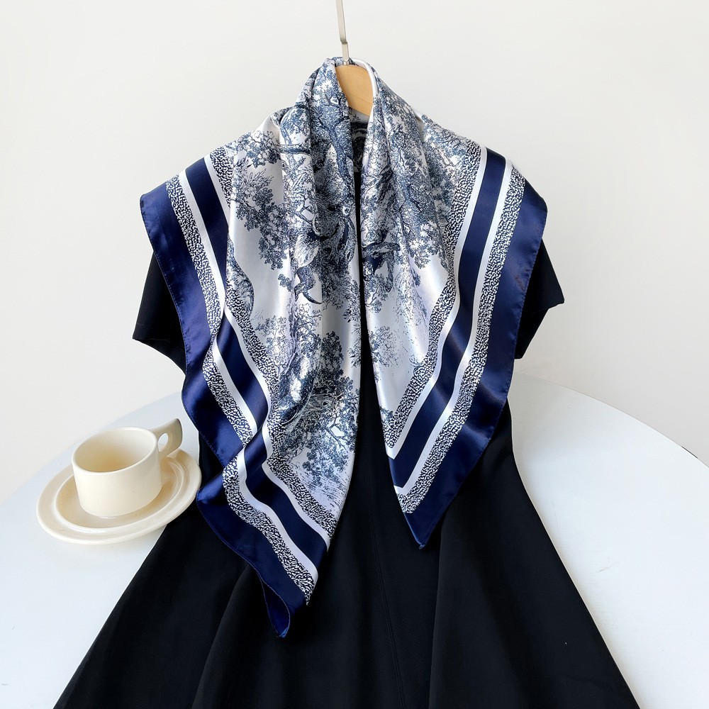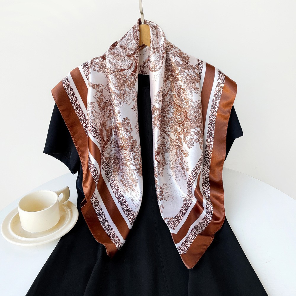 春季新品高级感女丝巾仿真丝大方巾90cm礼品围巾批发印花色丁领巾