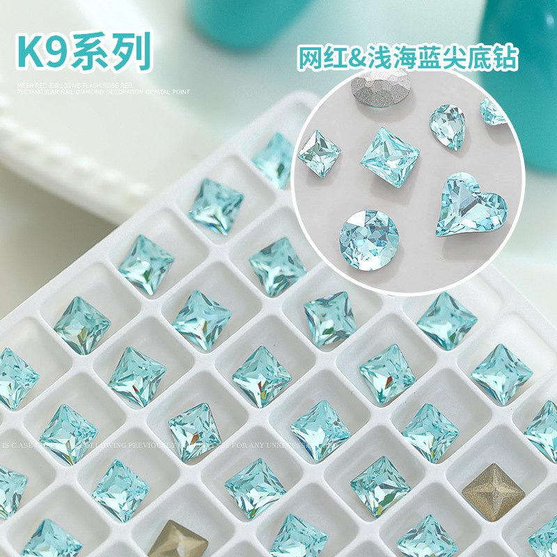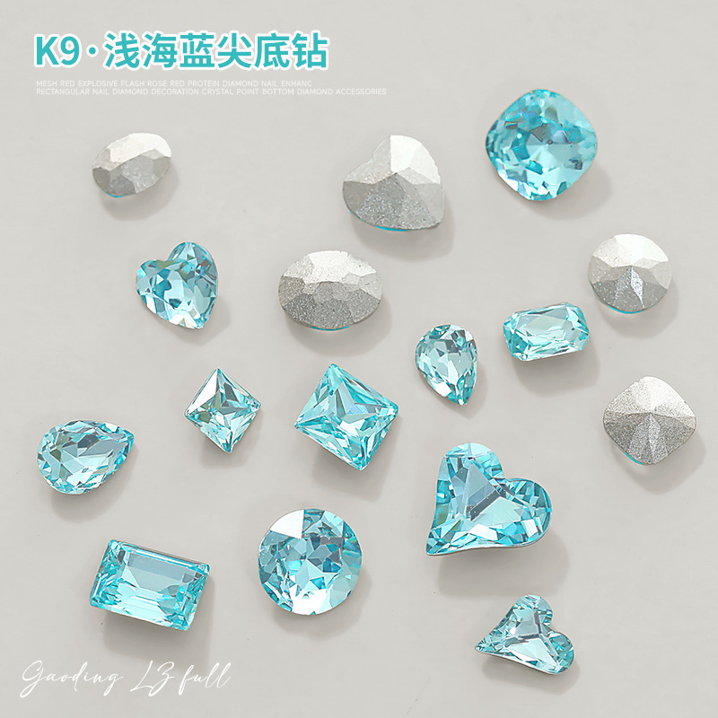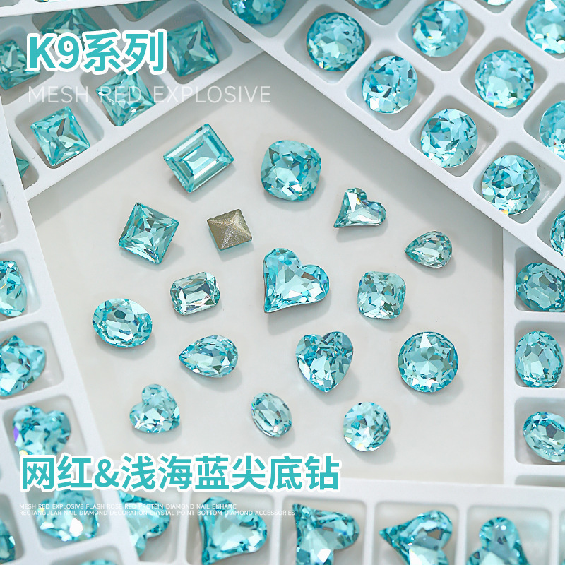 网红美甲饰品湖蓝色水晶尖底异形钻超闪斧头钻肥方歪心指甲配饰钻