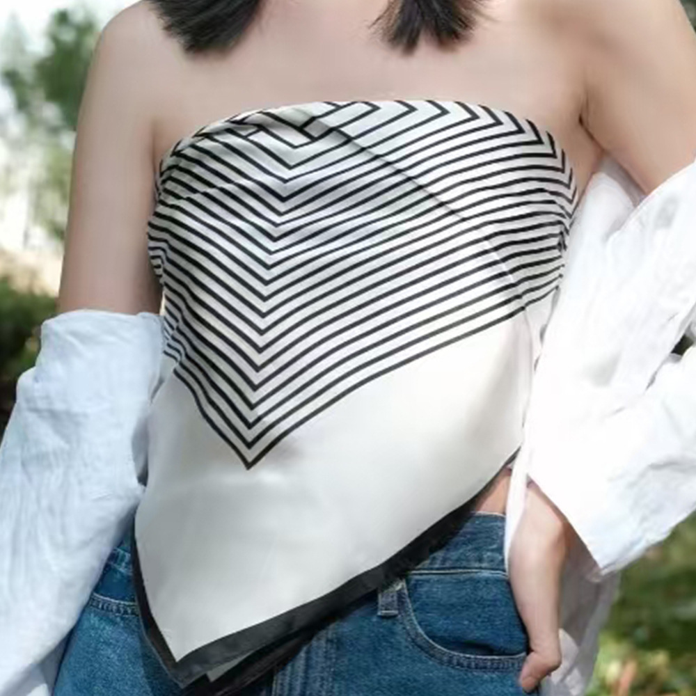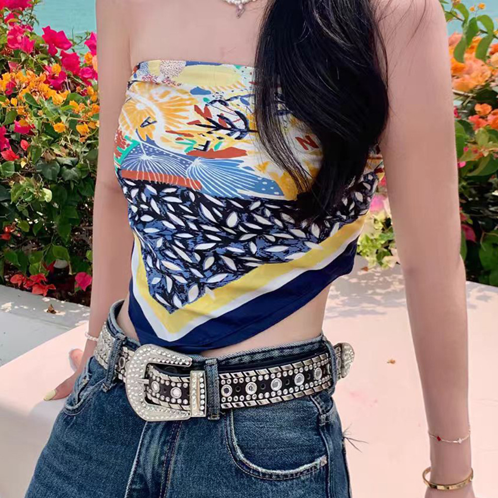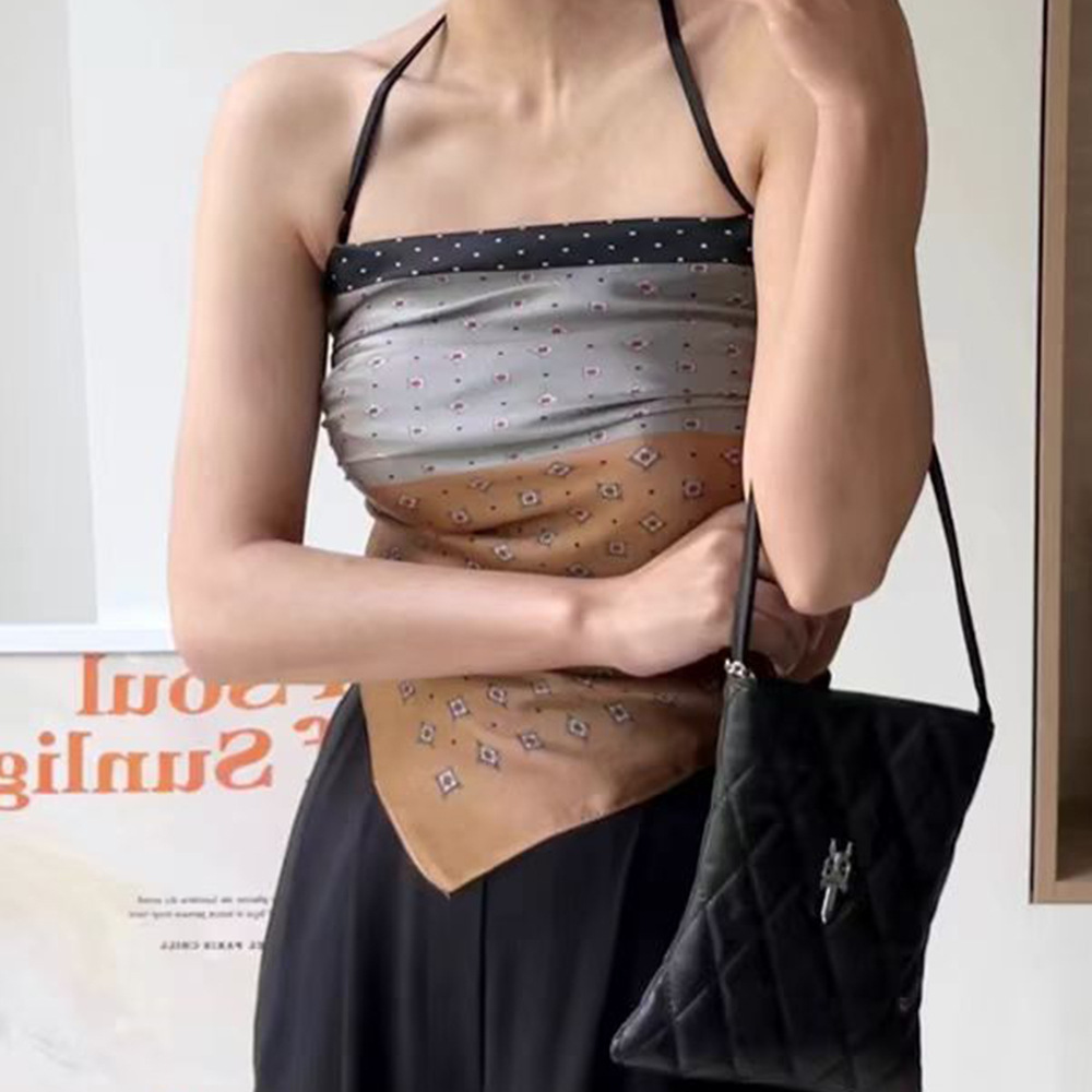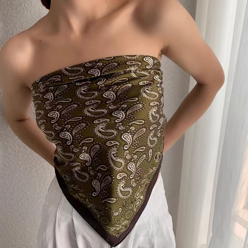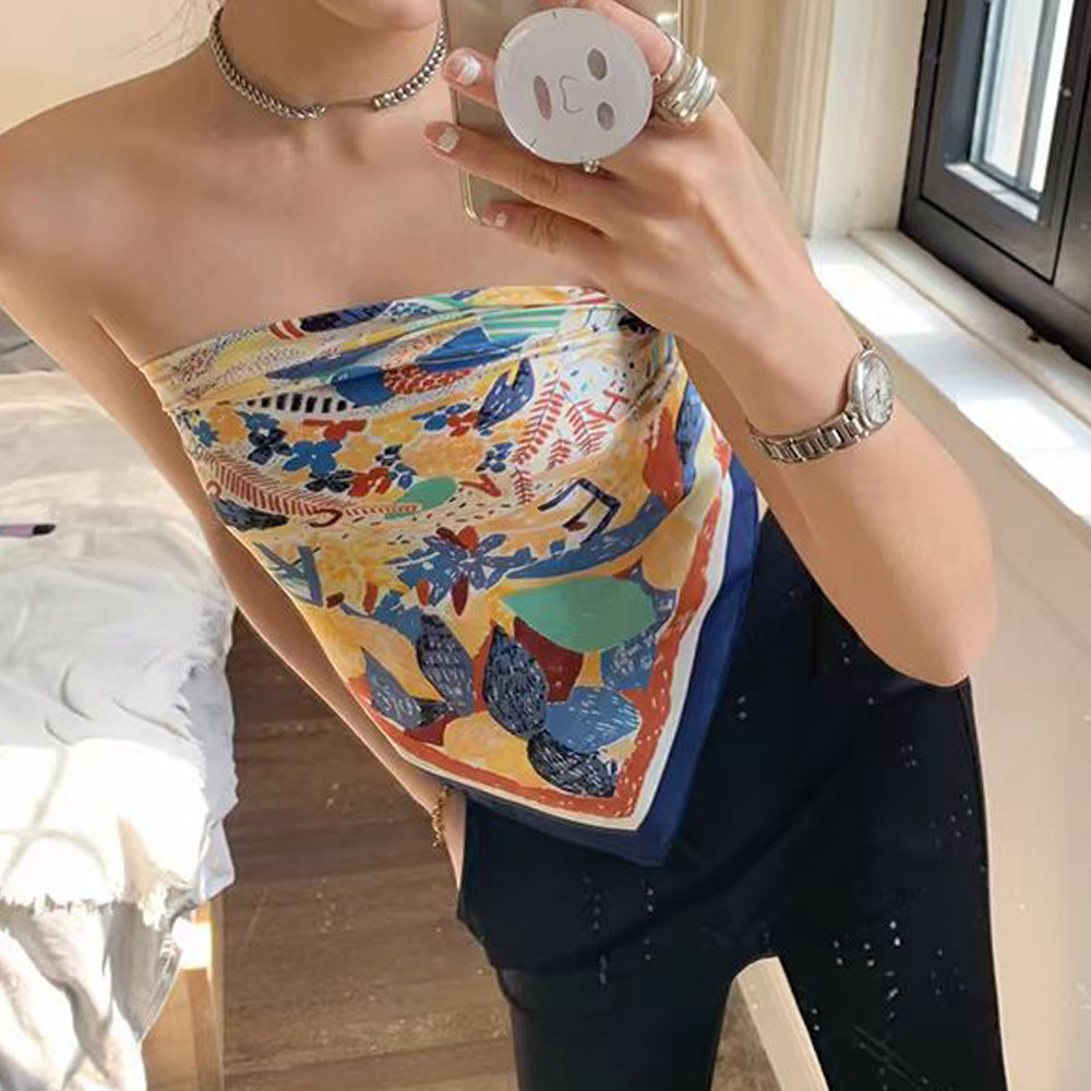 70cm新款抹胸丝巾女高级感复古夏季印花度假风海边辣妹小方巾批发