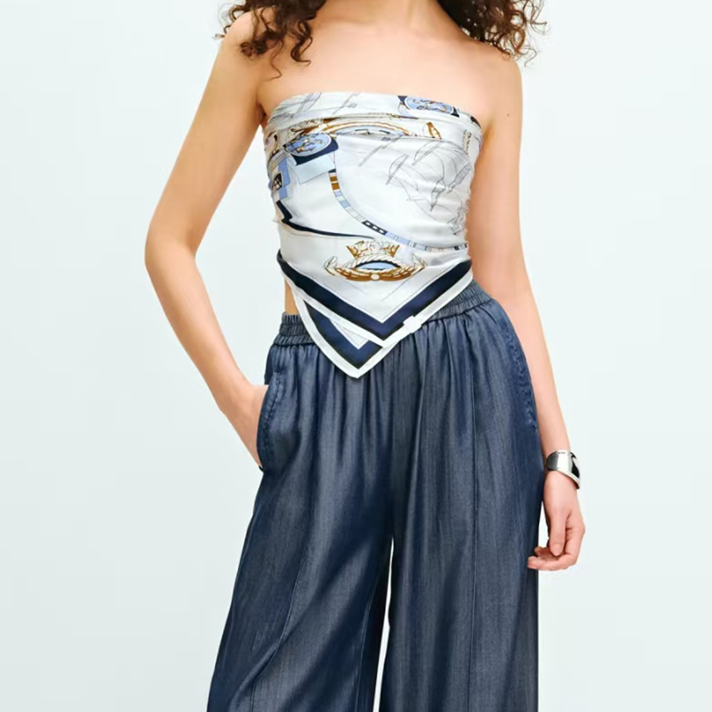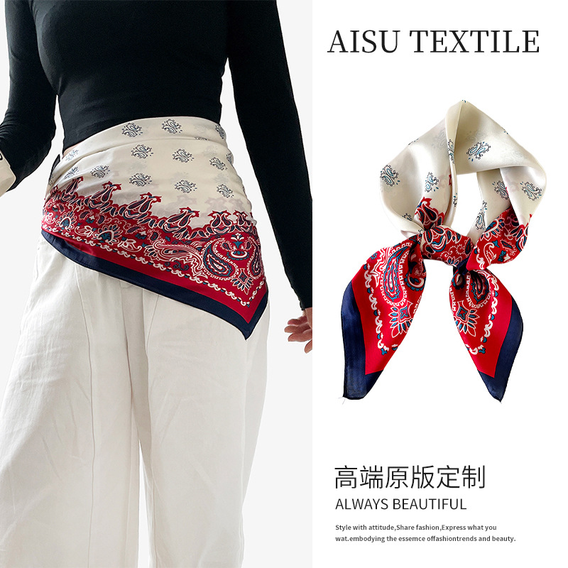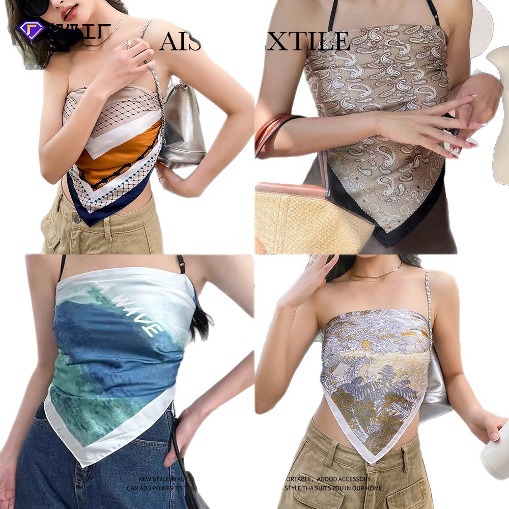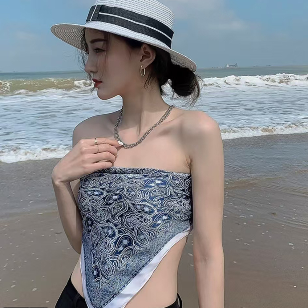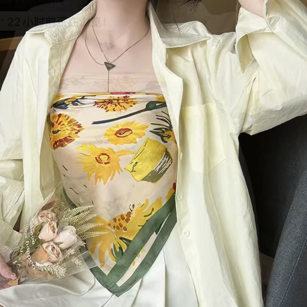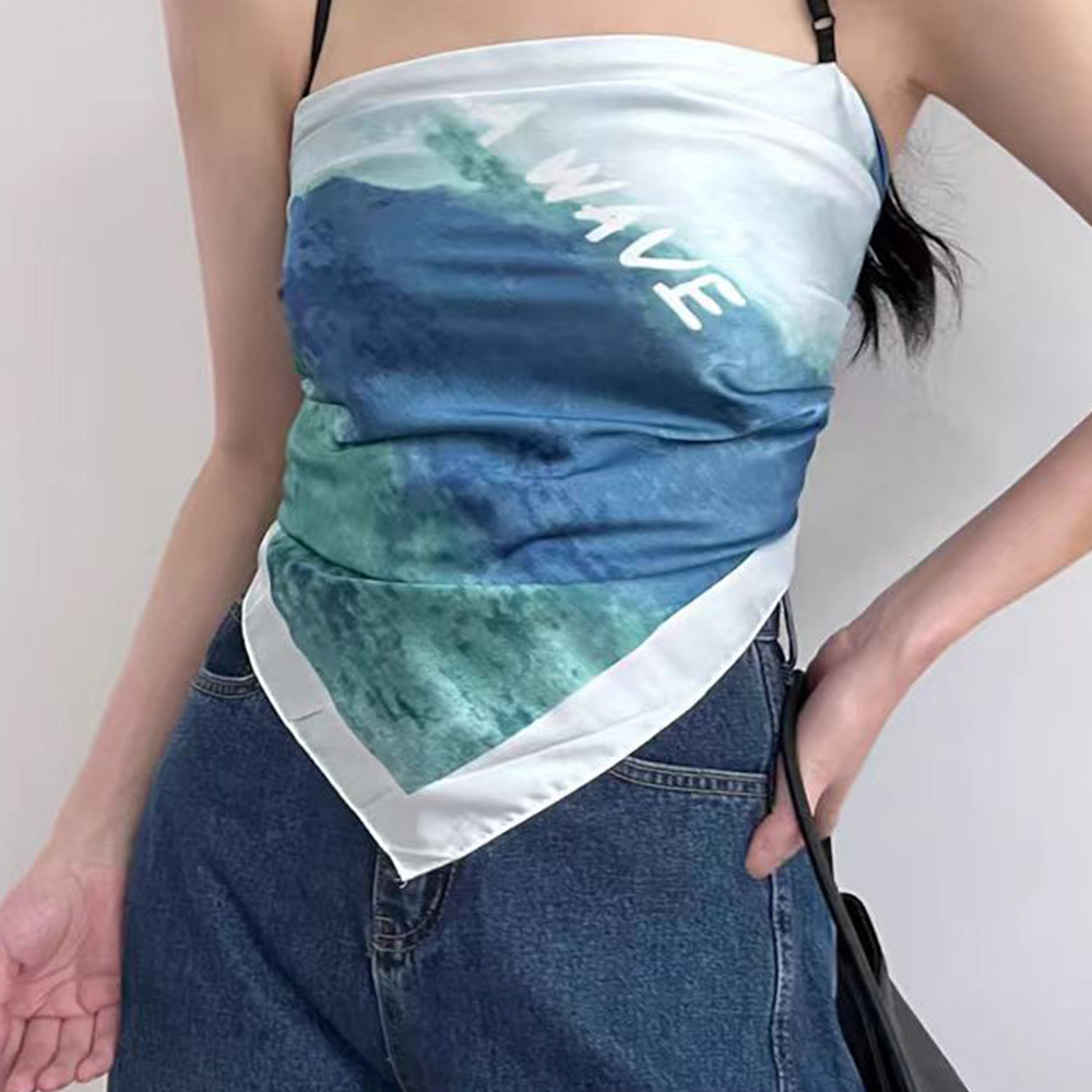 70cm新款抹胸丝巾女高级感复古夏季印花度假风海边辣妹小方巾批发