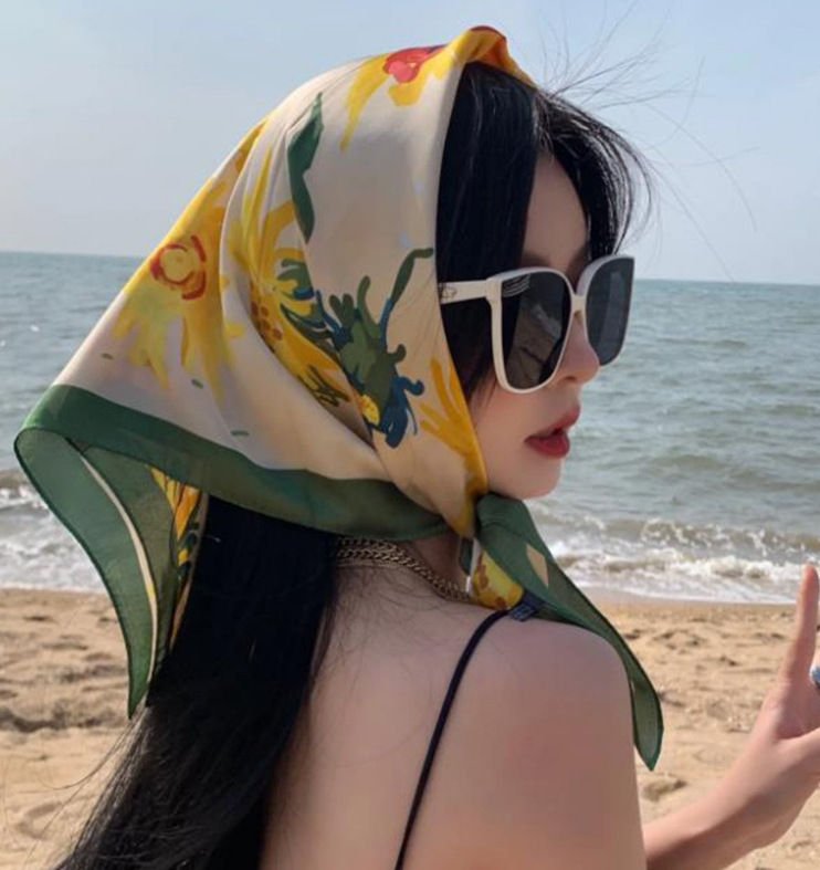春夏丝巾女70方巾向日葵印花丝巾系脖包头绑发带海边度假丝巾围巾