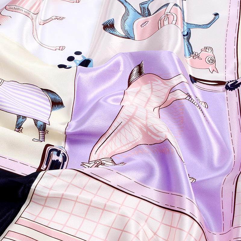 大方巾丝巾女士头巾仿真丝礼品丝巾新款缎面色丁围巾印花披肩批发