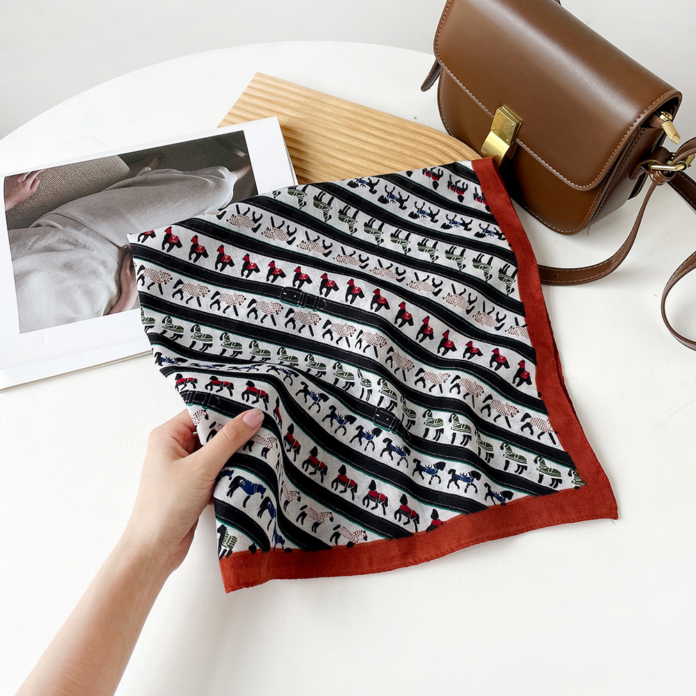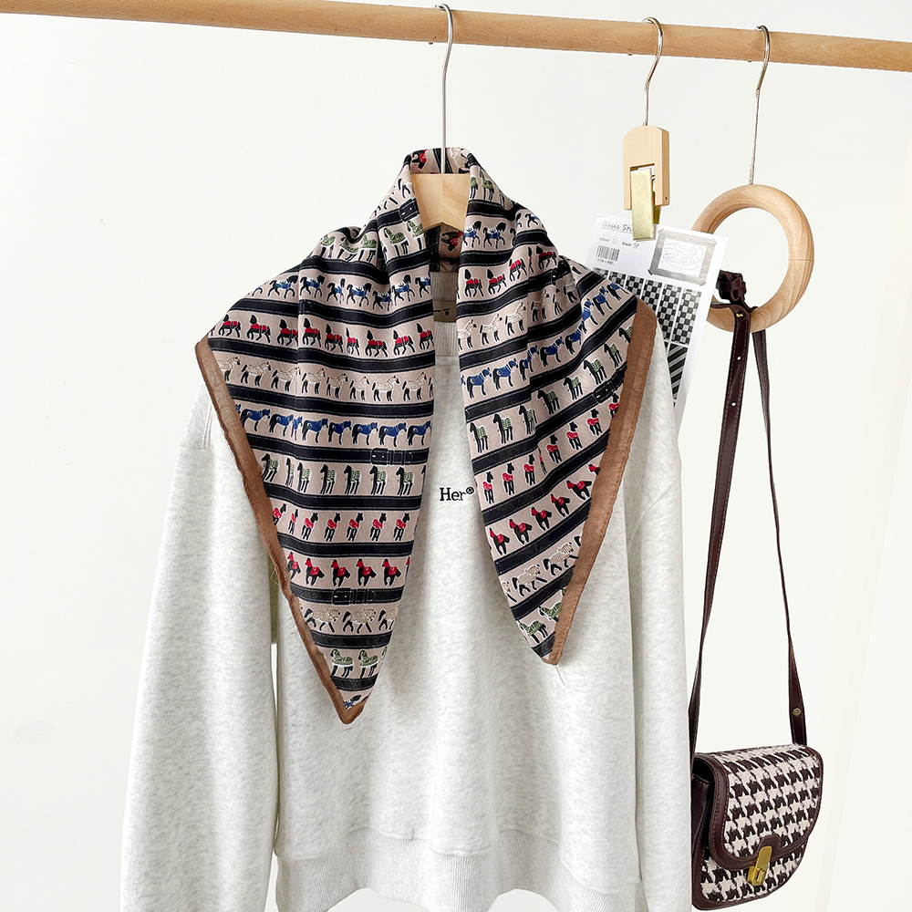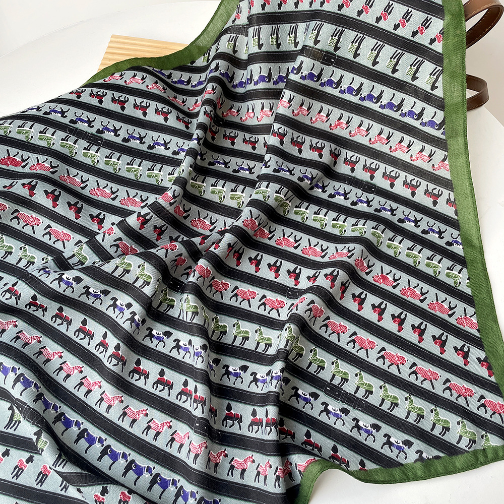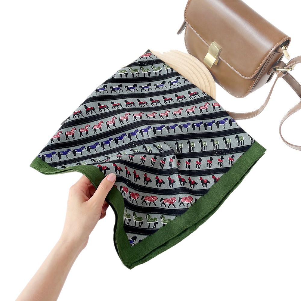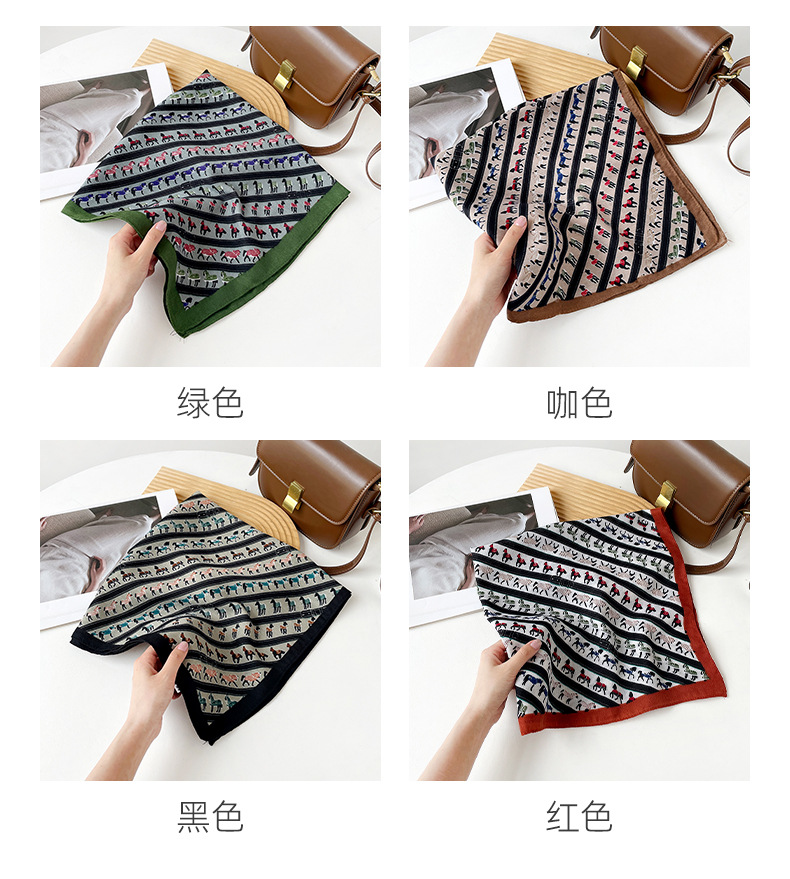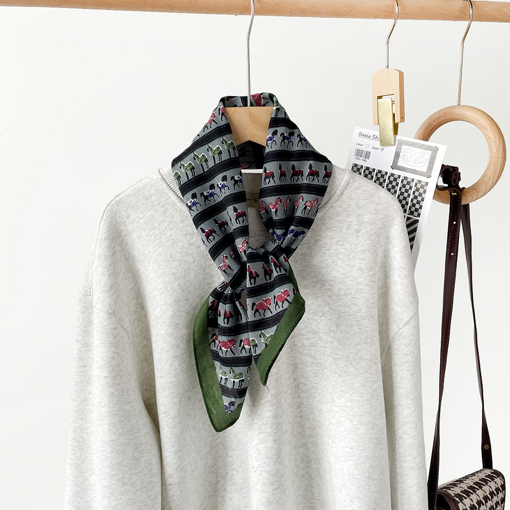 绿色小马丝巾2025年新款方巾个性优雅气质人字纹丝巾装饰领巾批发