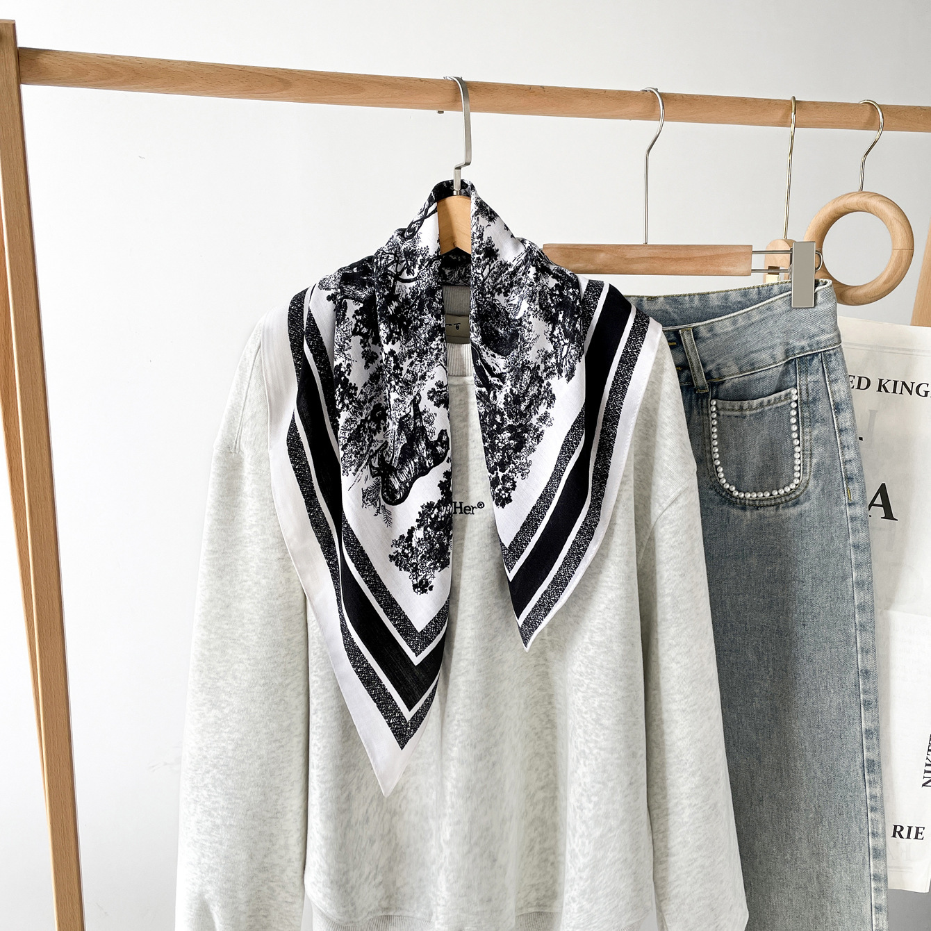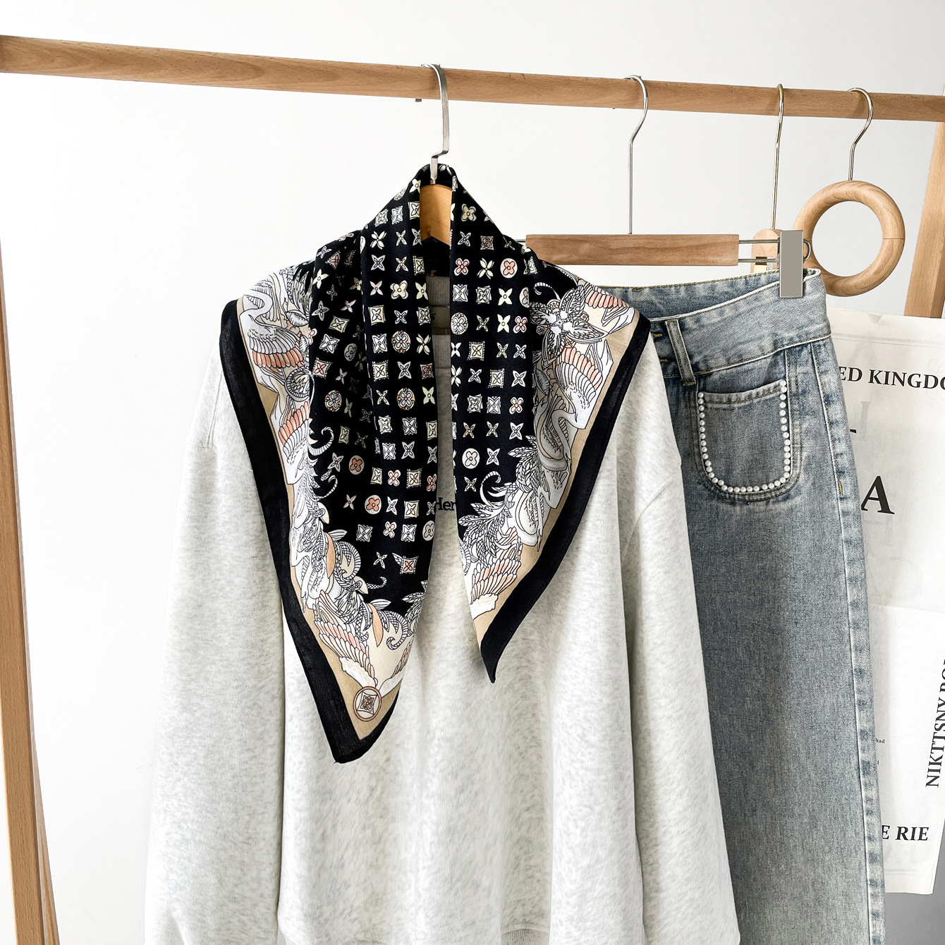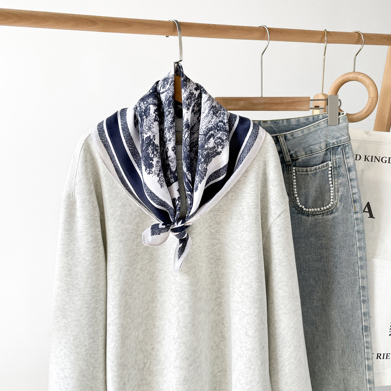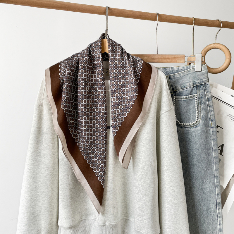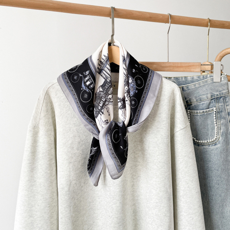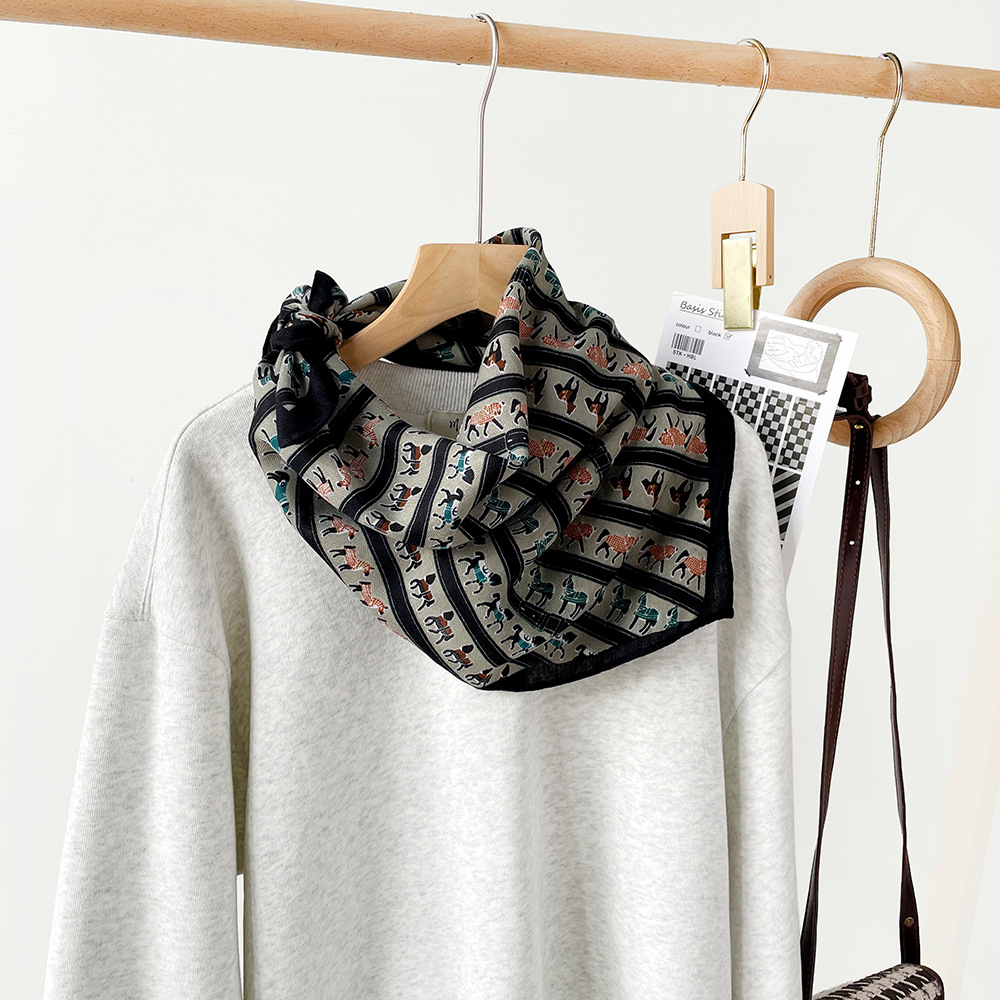 绿色小马丝巾2025年新款方巾个性优雅气质人字纹丝巾装饰领巾批发