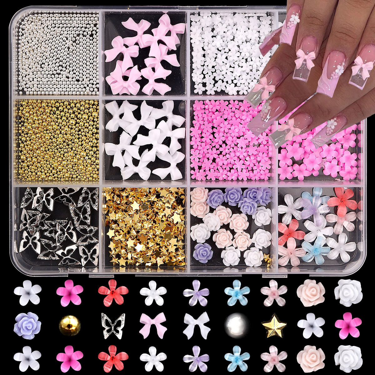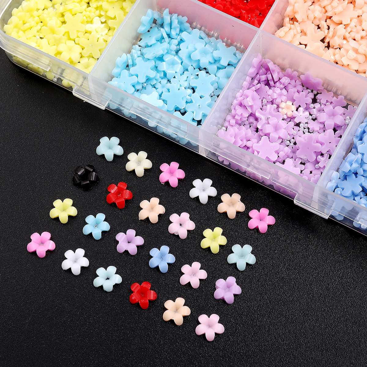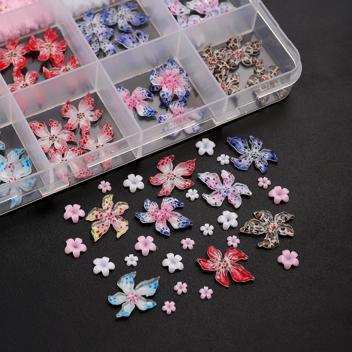 跨境12格彩色五瓣花美甲饰品 平底钻套盒钢珠树脂diy指甲配饰批发