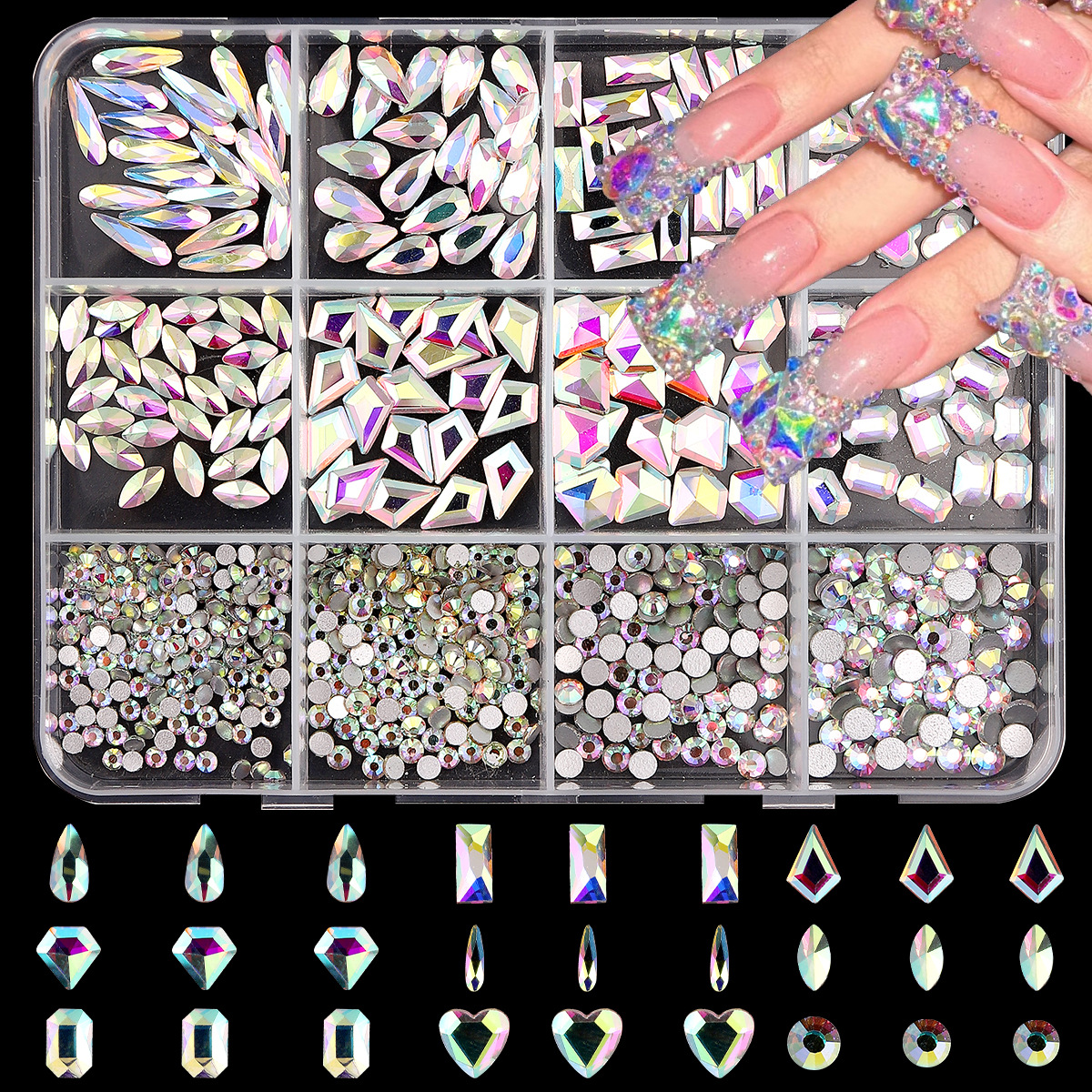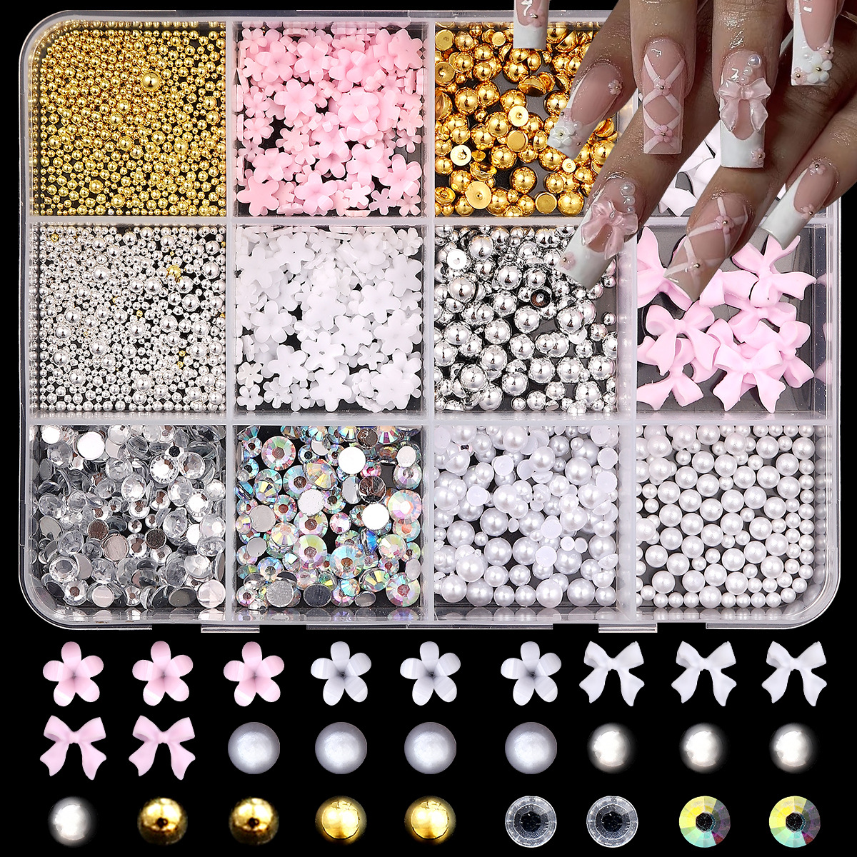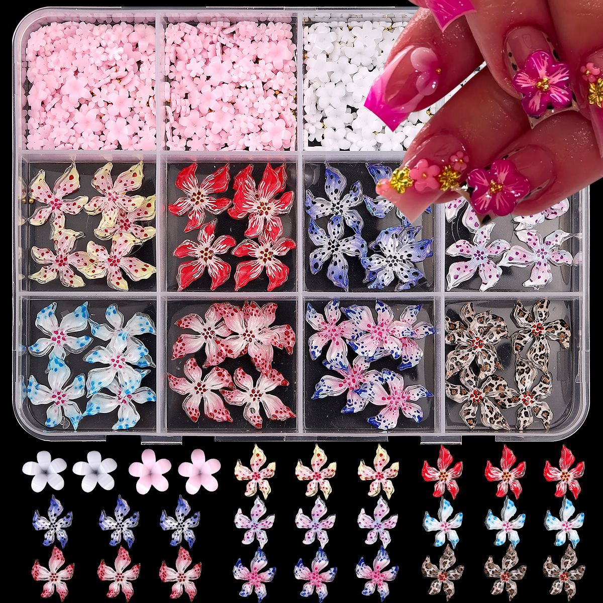 跨境12格彩色五瓣花美甲饰品 平底钻套盒钢珠树脂diy指甲配饰批发