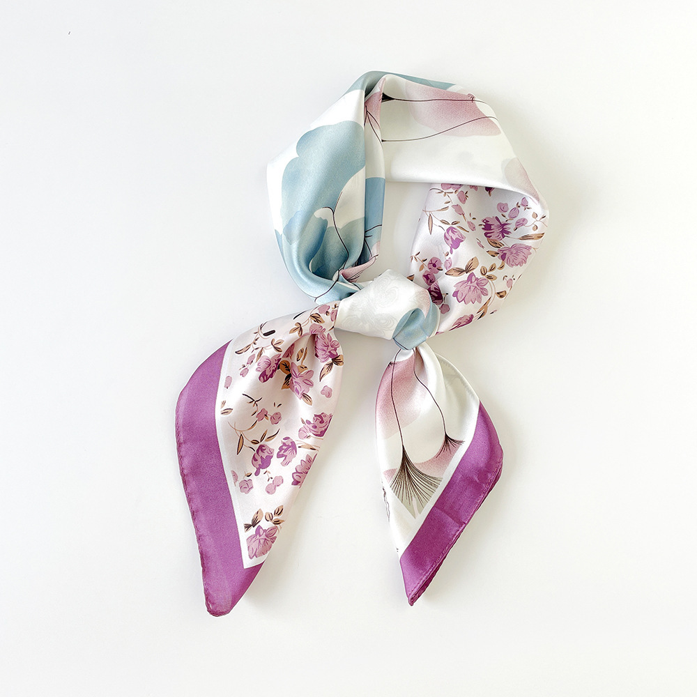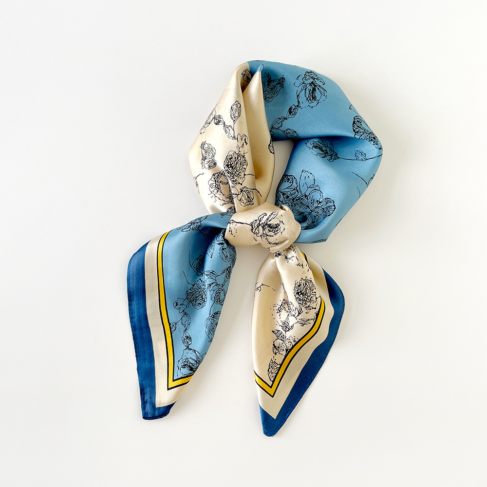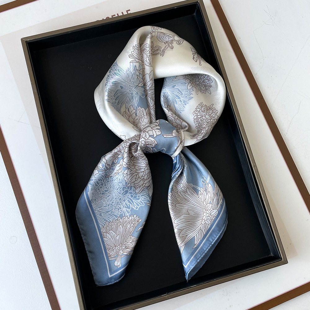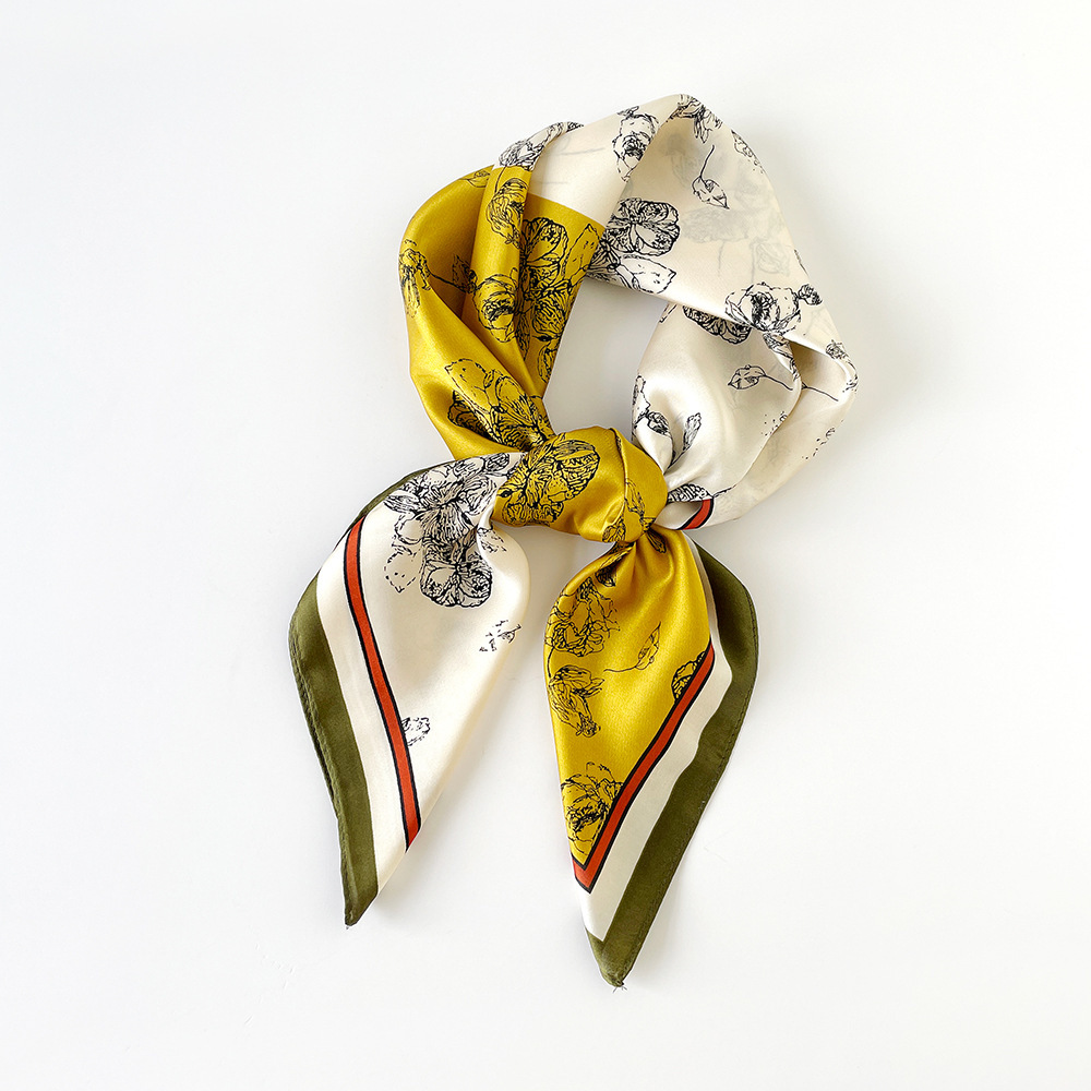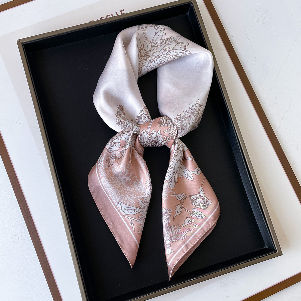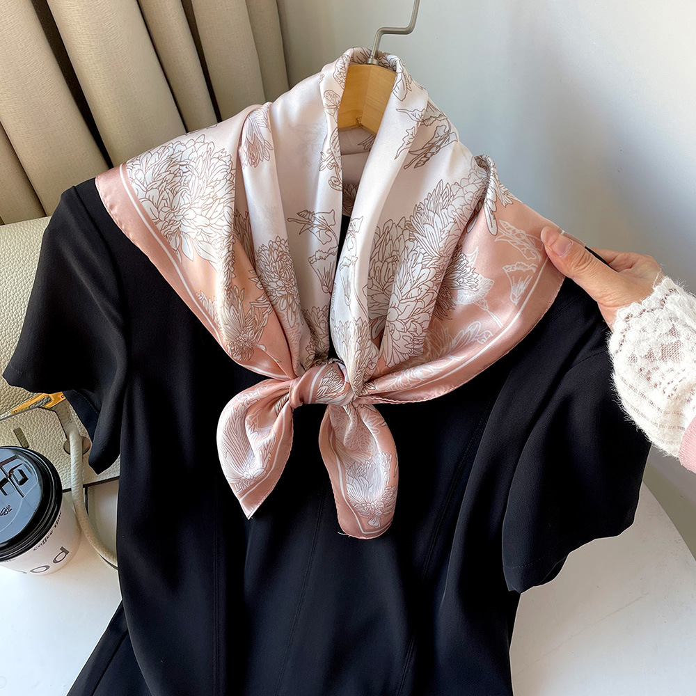 韩系时尚花纹缎面丝巾夏季丝巾方巾高级感女职业领巾围巾薄款批发