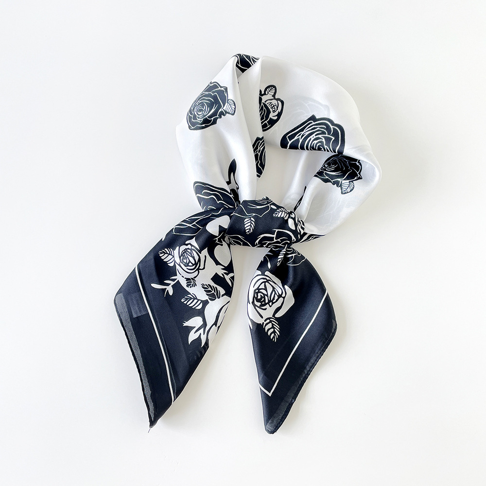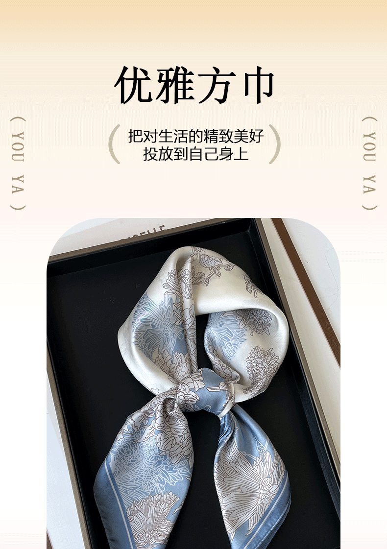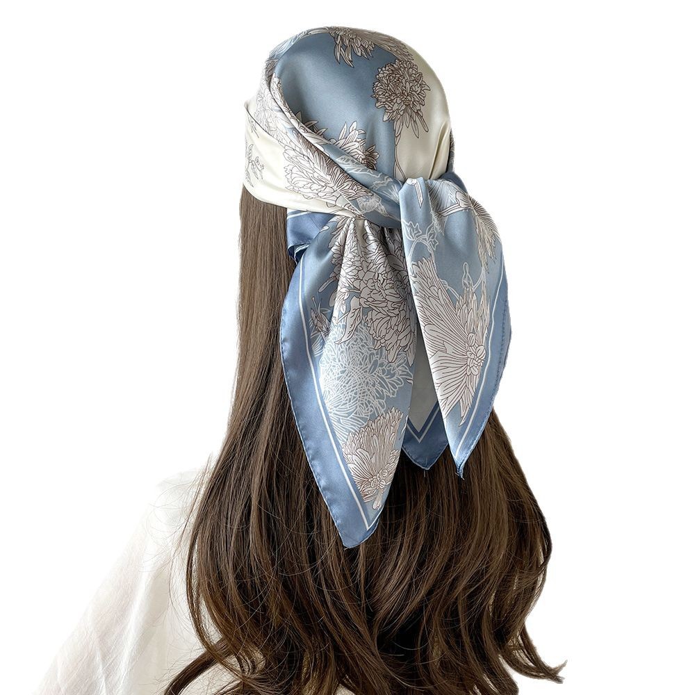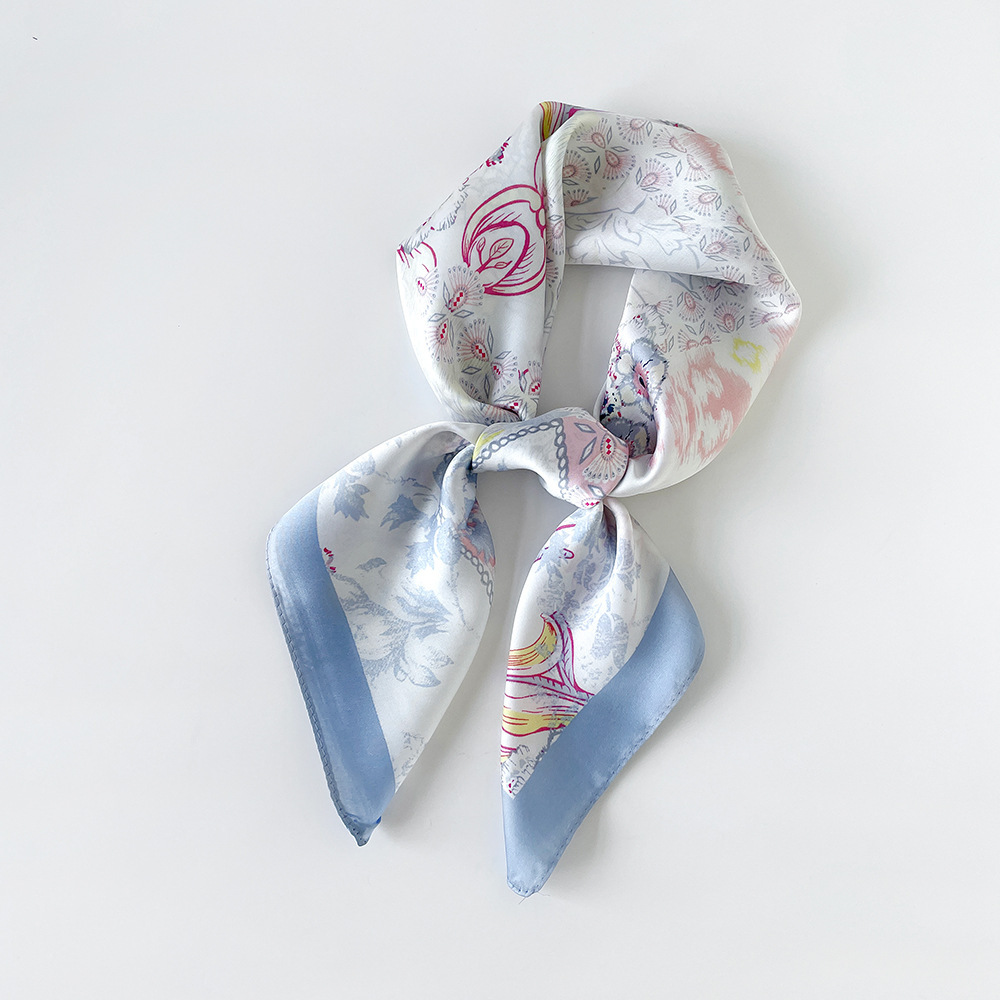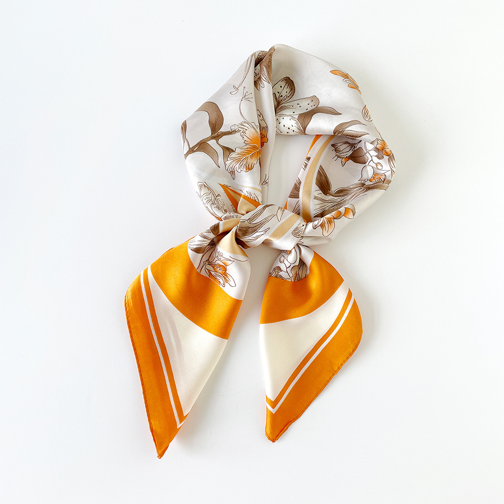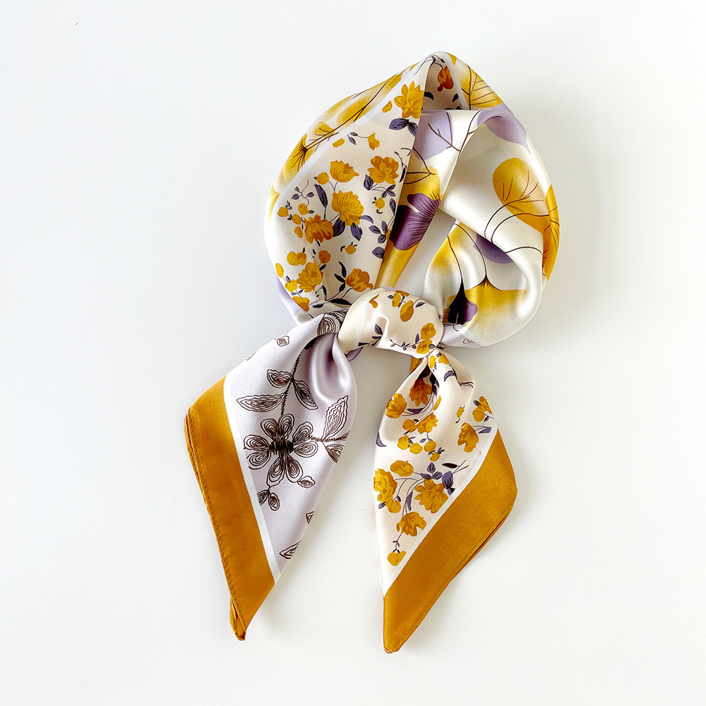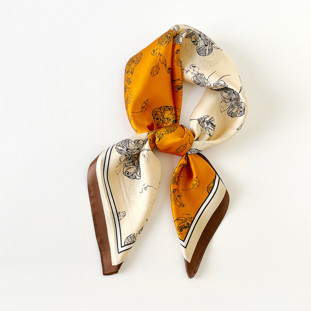 韩系时尚花纹缎面丝巾夏季丝巾方巾高级感女职业领巾围巾薄款批发