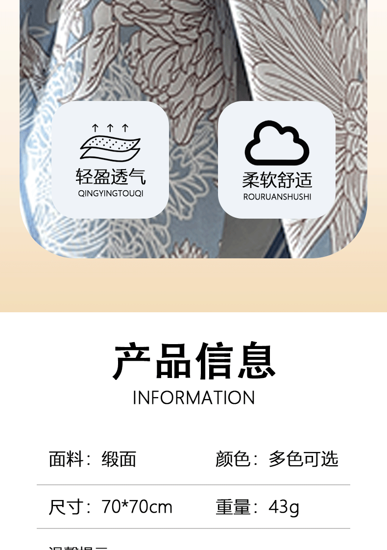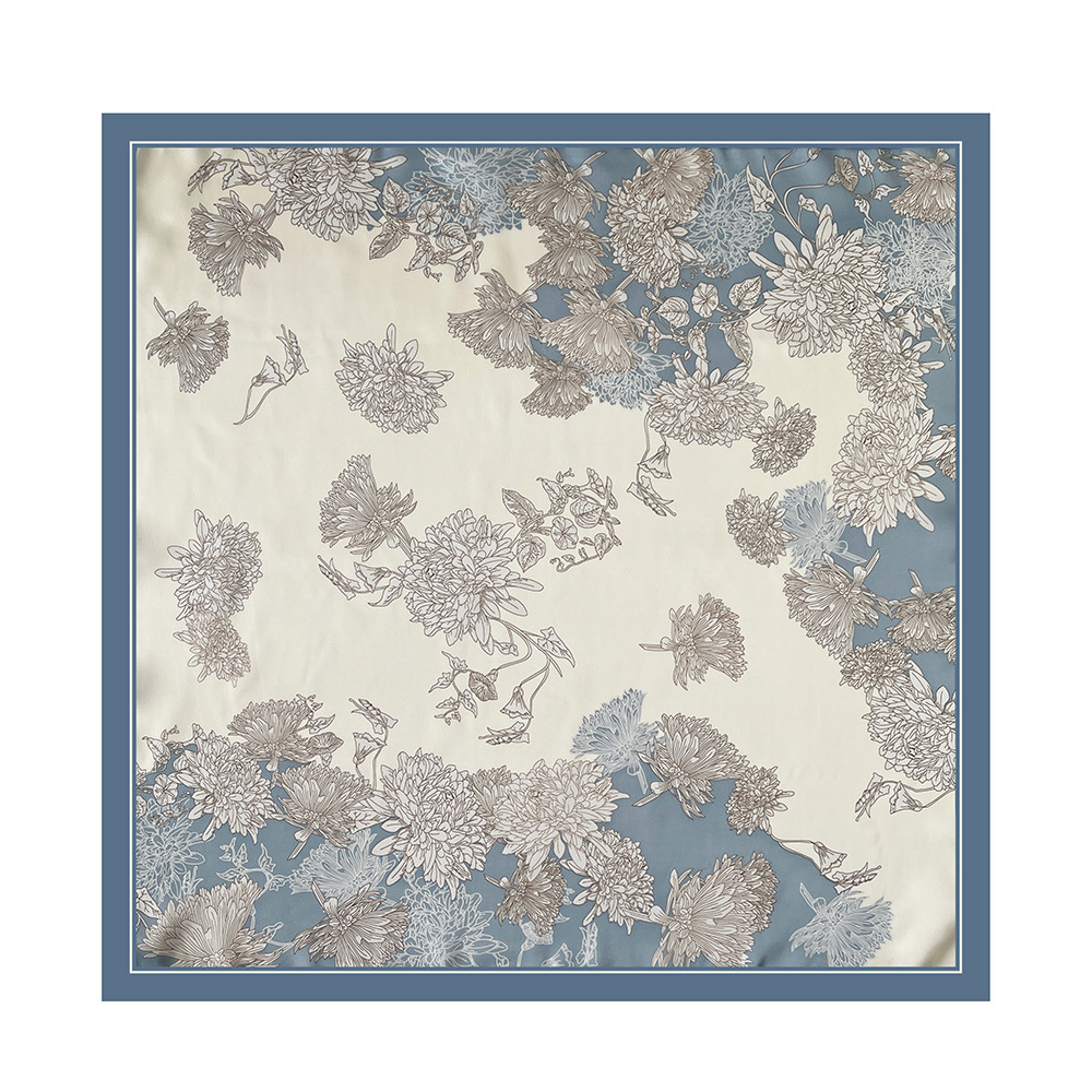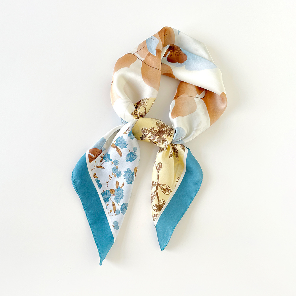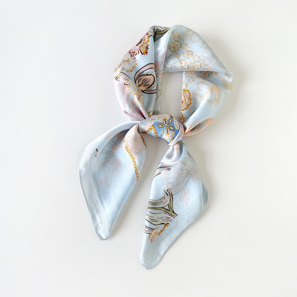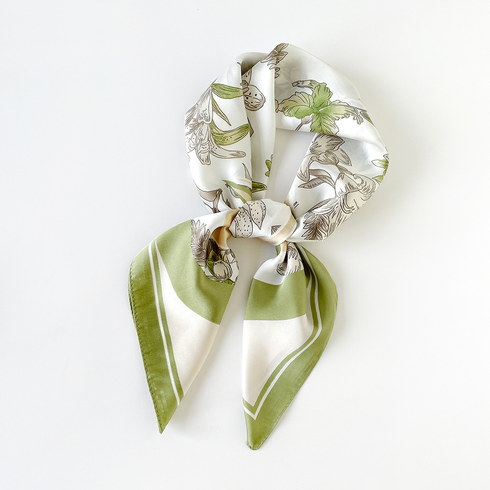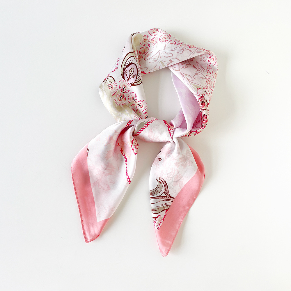 韩系时尚花纹缎面丝巾夏季丝巾方巾高级感女职业领巾围巾薄款批发