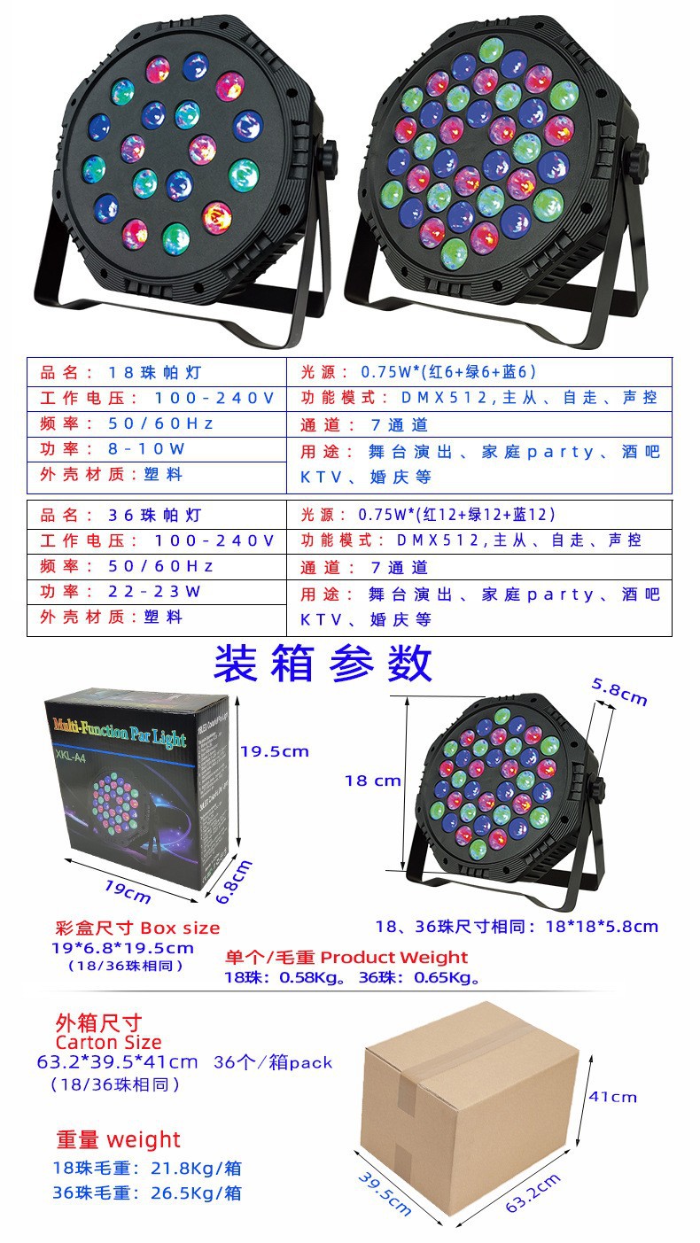 新款36颗魔球帕灯Pat Light镭射舞台灯闪光大面积投影KTV酒吧彩灯