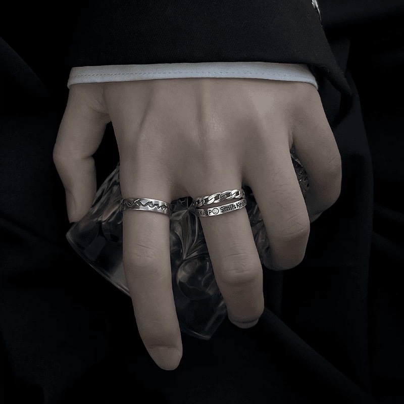 可重叠戒指男高级感开口可调节冷淡风小众男生食指个性男士单身戒