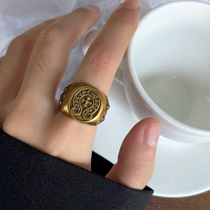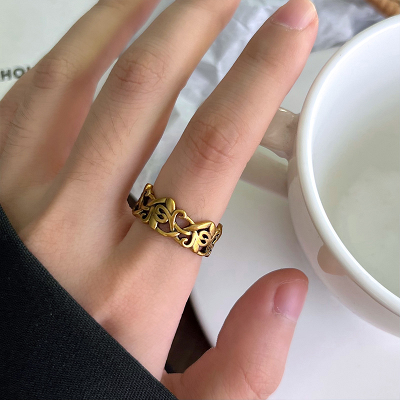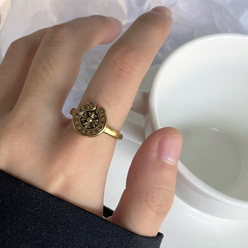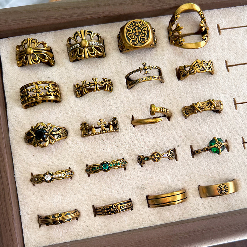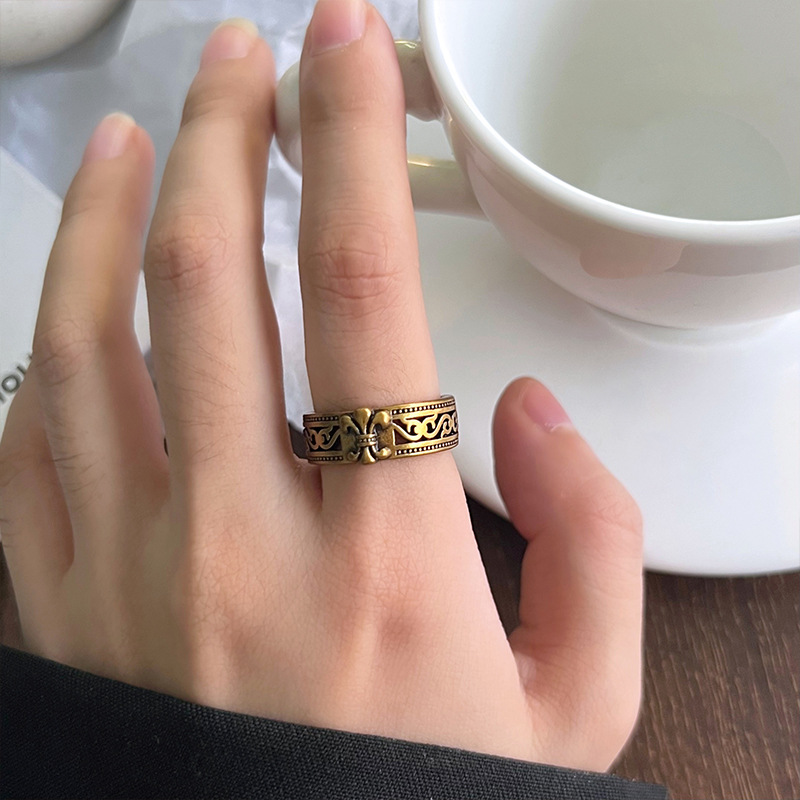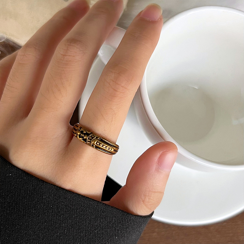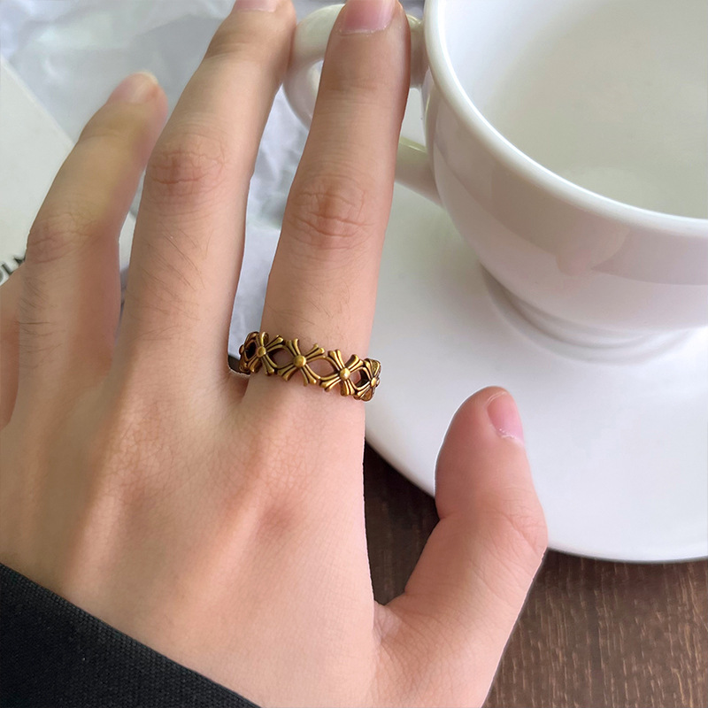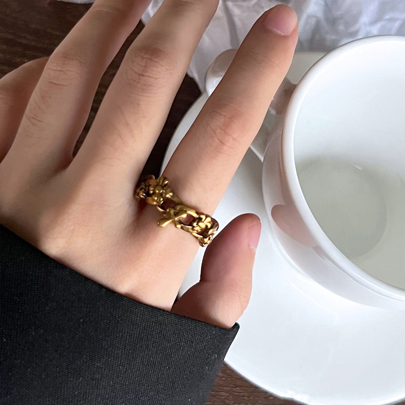 岚芷十字架复古做旧高级感古金戒指女开口指环轻奢小众港风饰品男
