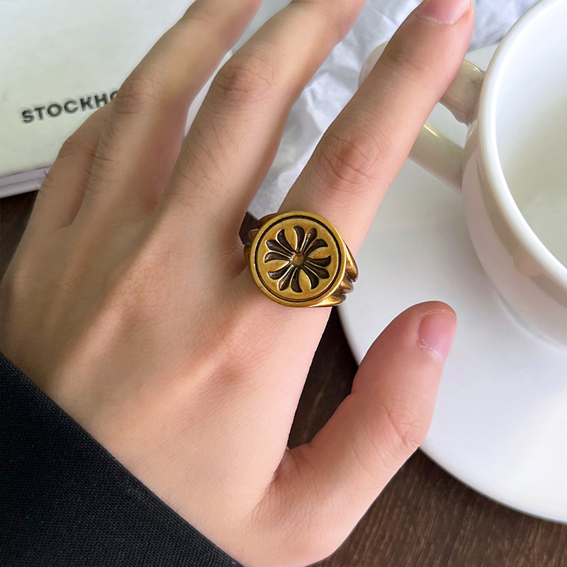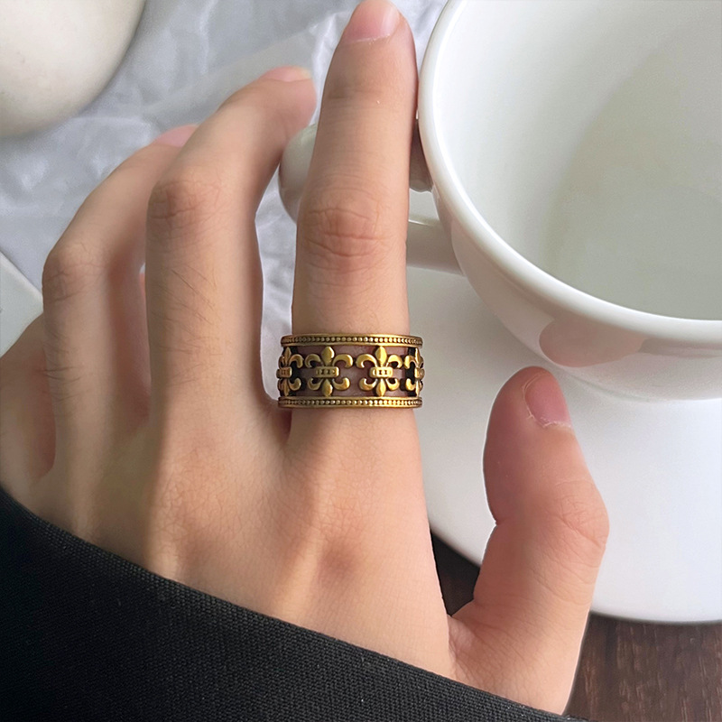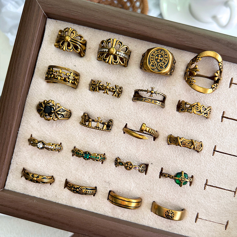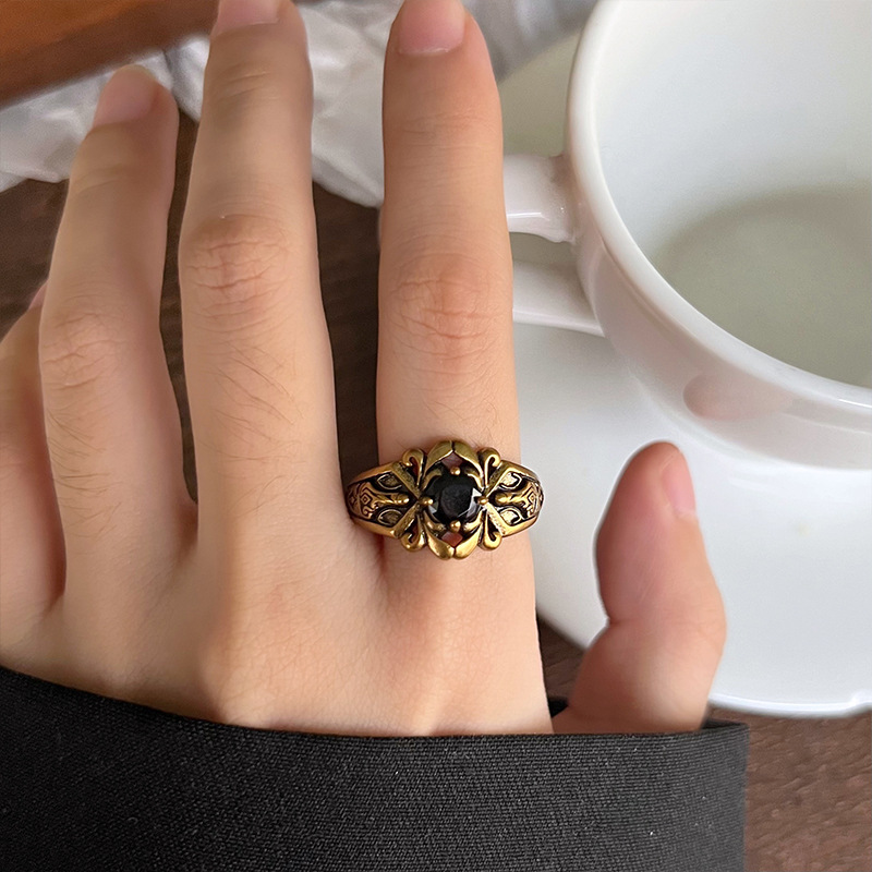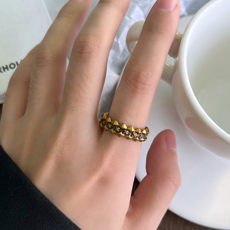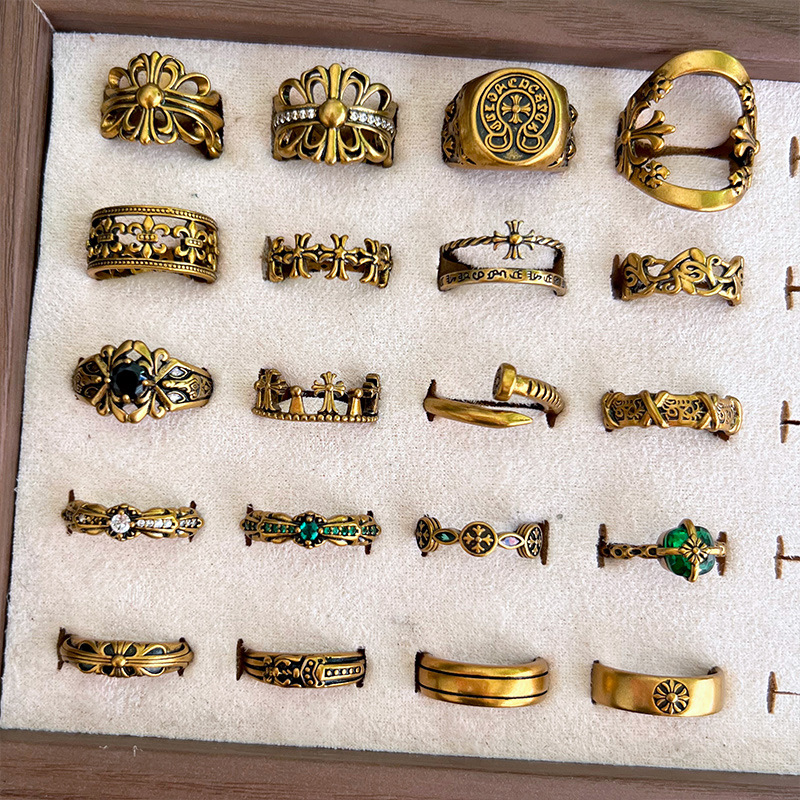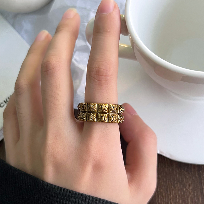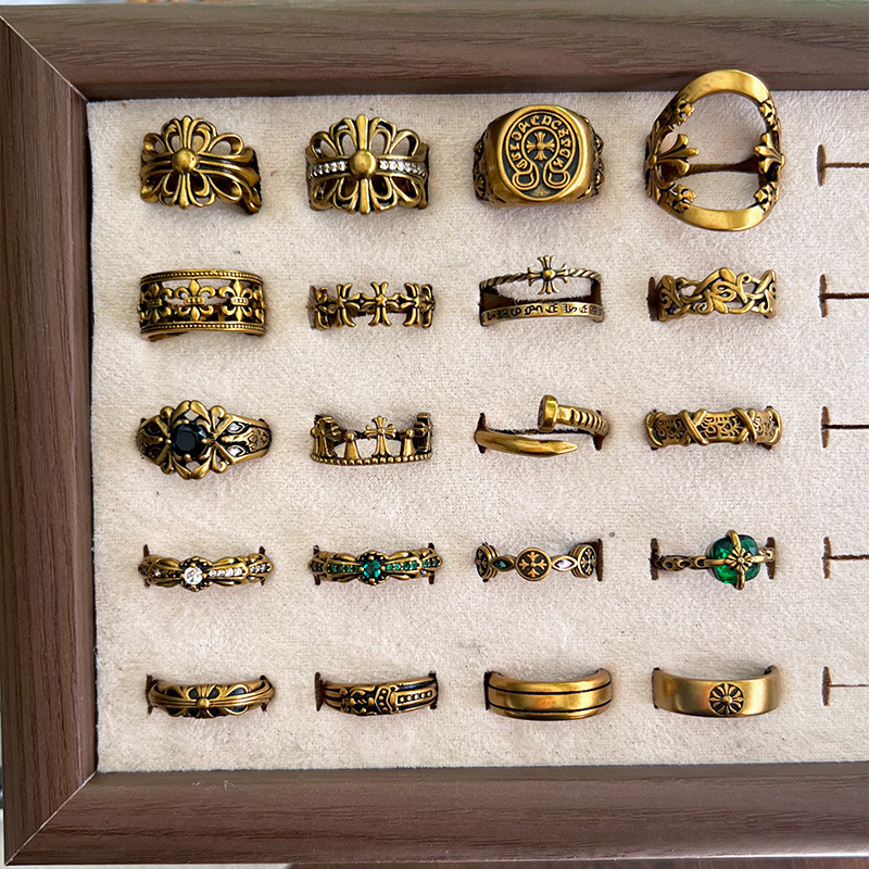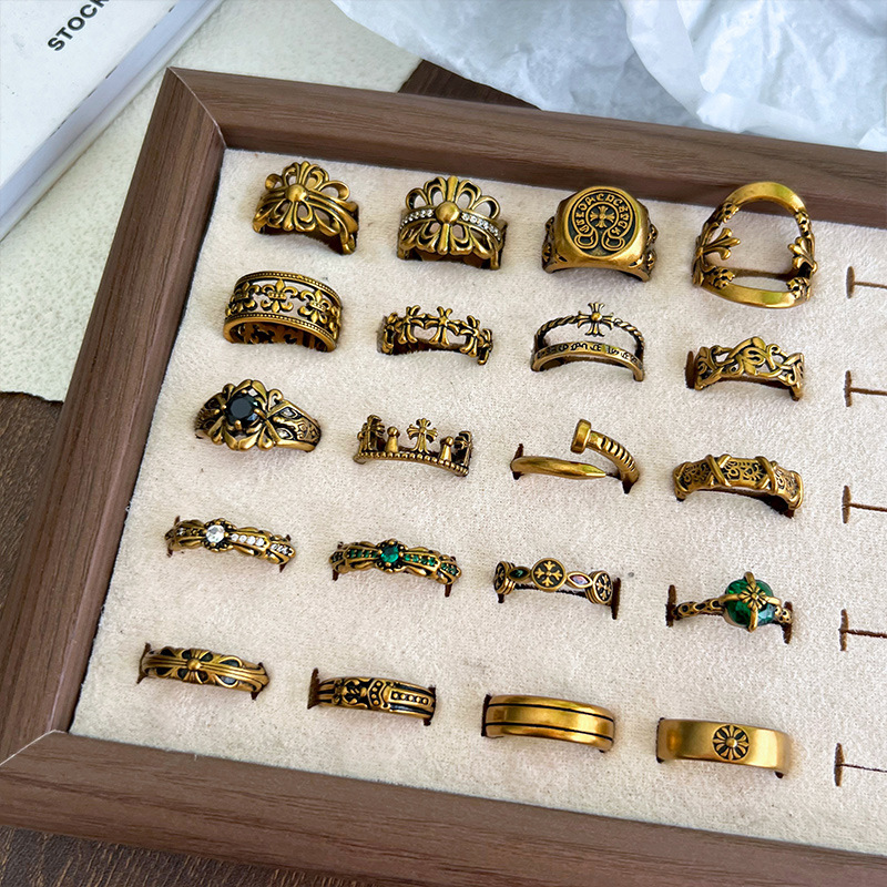 岚芷十字架复古做旧高级感古金戒指女开口指环轻奢小众港风饰品男
