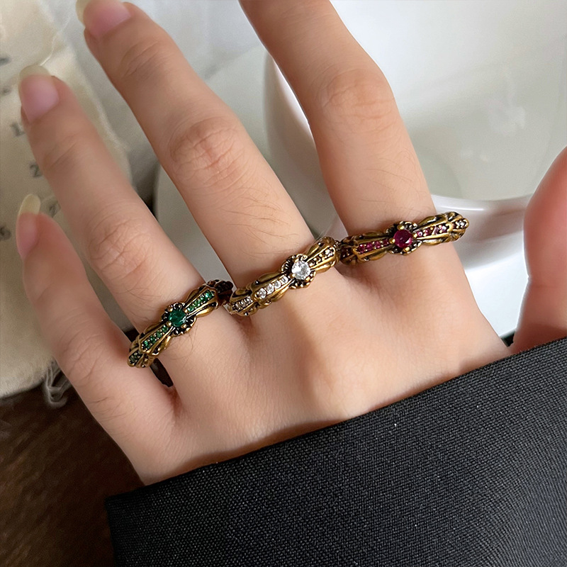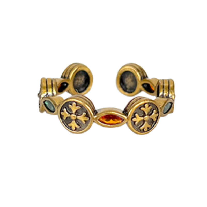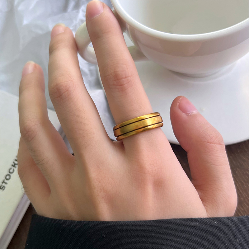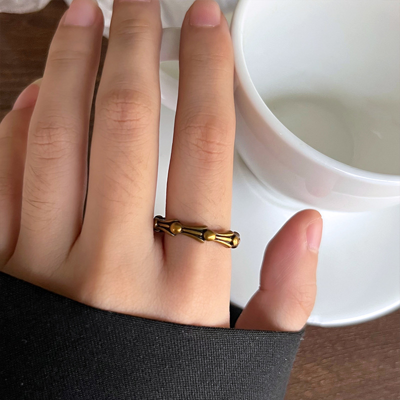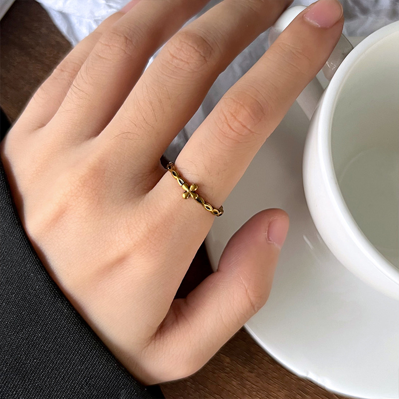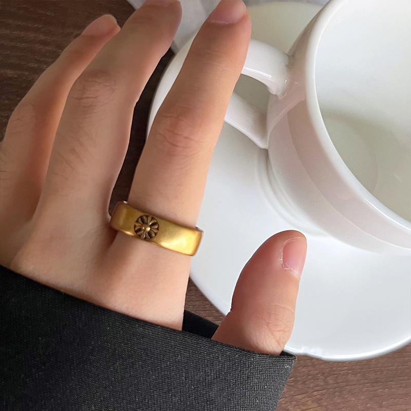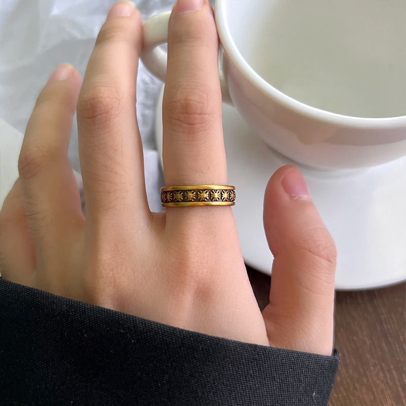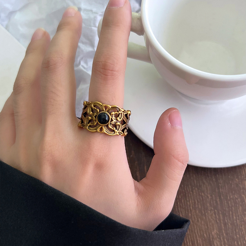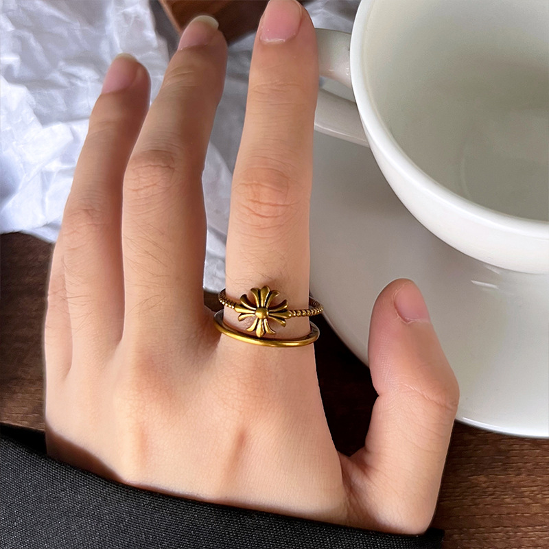 岚芷十字架复古做旧高级感古金戒指女开口指环轻奢小众港风饰品男
