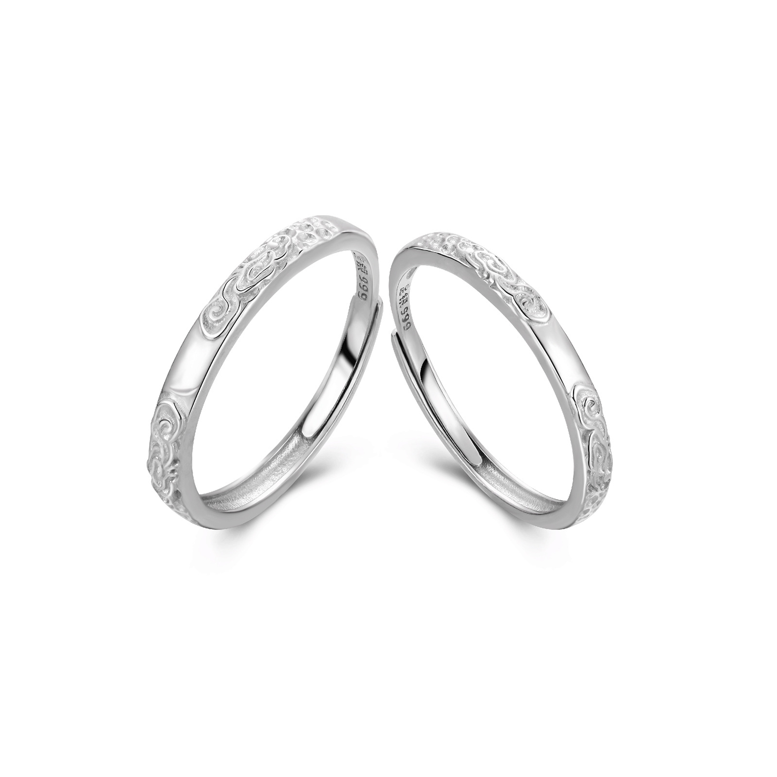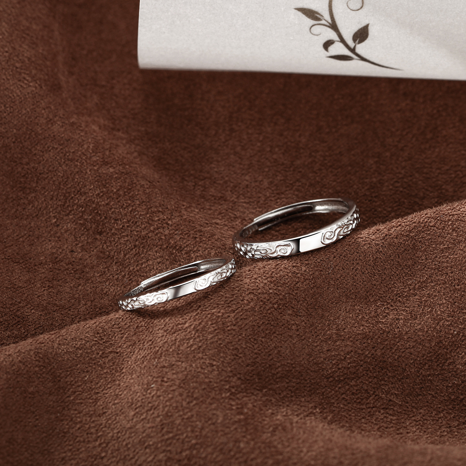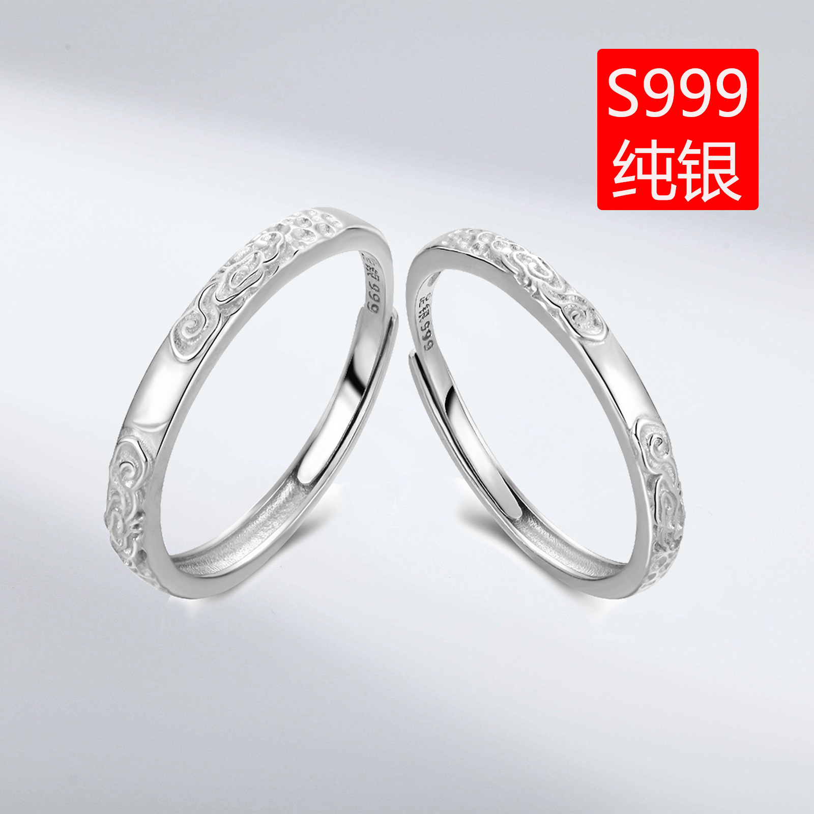 S999纯银足银情侣戒指女男轻奢祥云指环节日高级感情侣对戒礼物